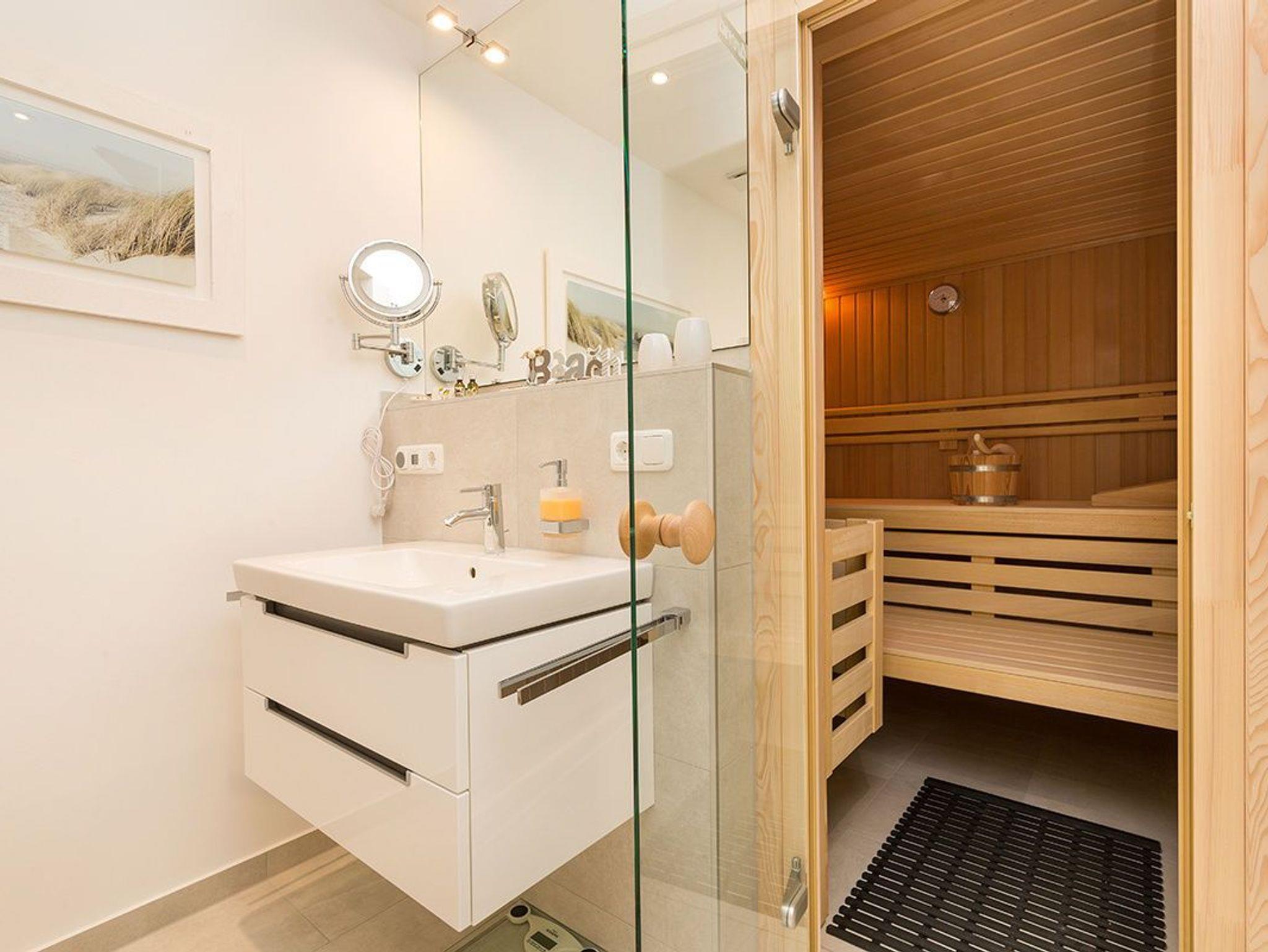 • Badezimmer: Zwei moderne Bäder ? eines mit Dusche, das andere mit ebenerdiger Regendusche und großzügiger Sauna