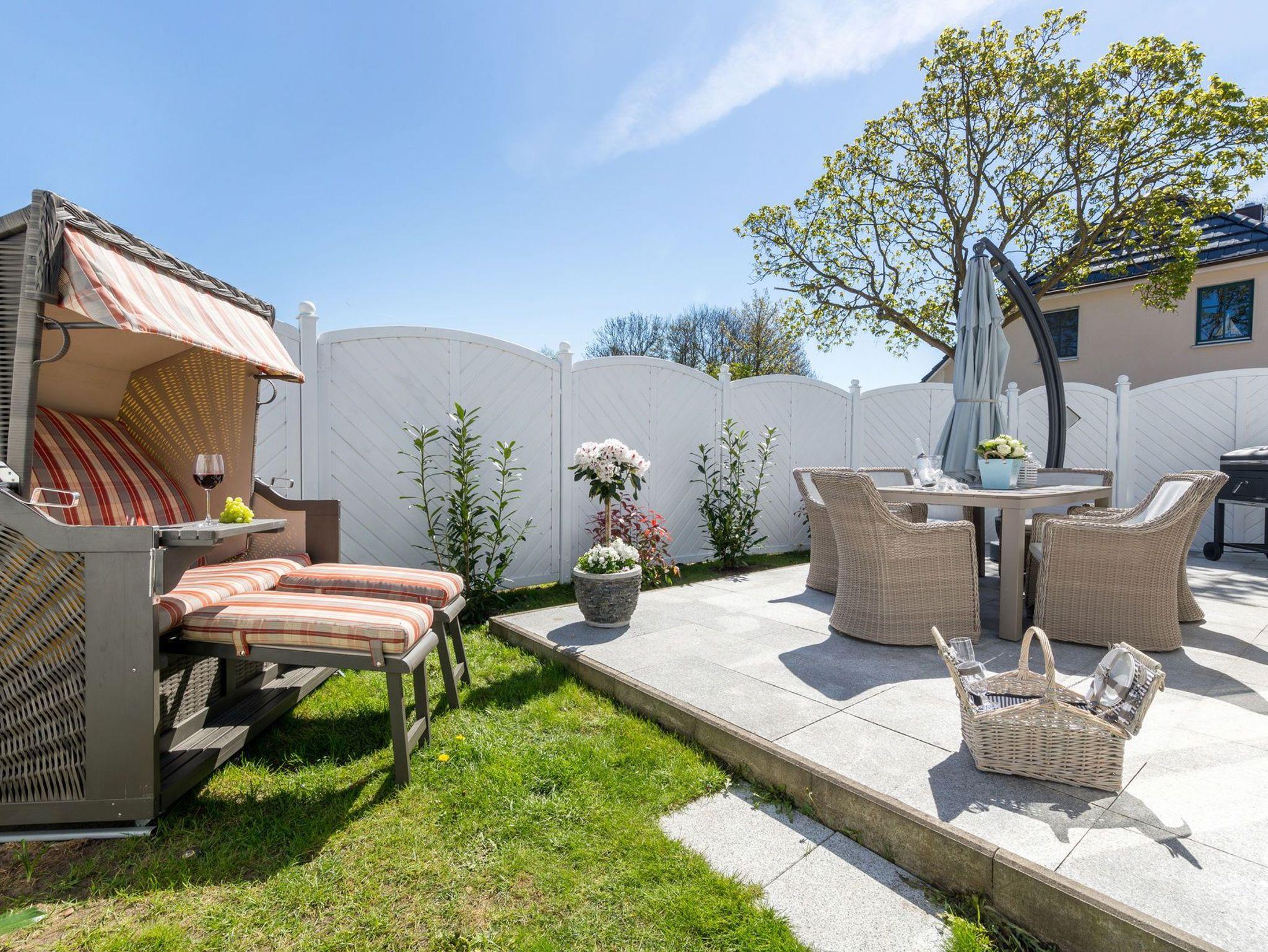 Der eingezäunte Garten ist ein kleines Paradies für Familien. Die jüngsten Gäste dürfen sich auf ein Smoby-Kinderspielhaus und eine Spielküche freuen. Selbstverständlich stellen wir Ihnen Kinderbett und Hochstuhl kostenlos zur Verfügung. Während die Kleinen spielen, können die Großen auf der Terrasse entspannen und den Tag in aller Ruhe ausklingen lassen.