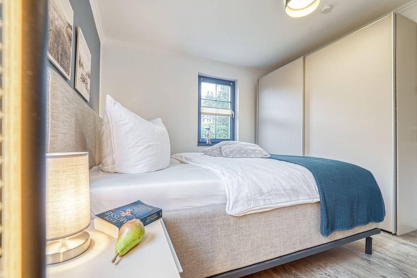 Zwei Schlafzimmer mit je einem Doppelbett (160x200 cm und 140x200 cm) für bis zu vier Übernachtungsgäste stehen bereit.