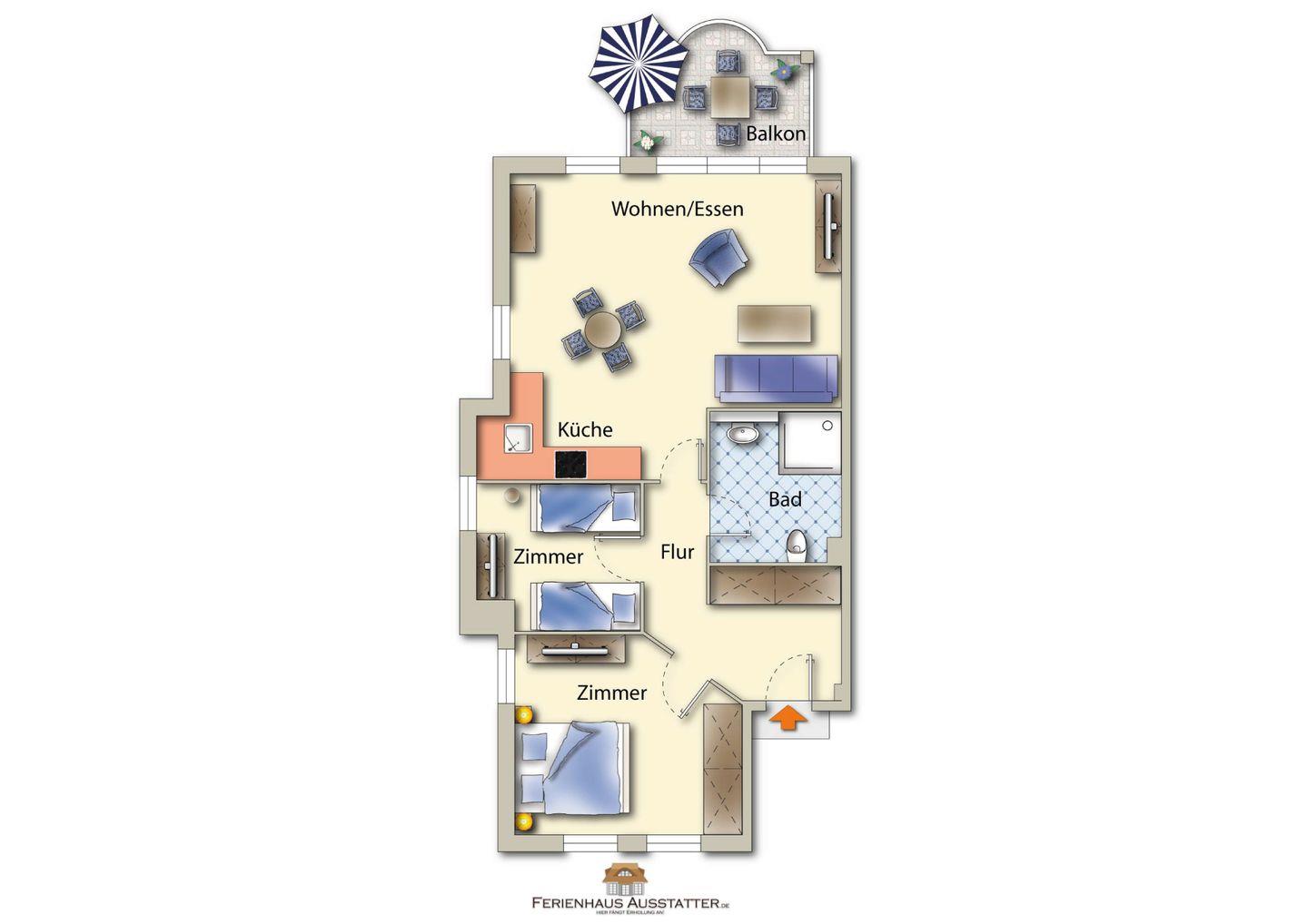 Komfortable Ferienwohnung mit Balkon, zentral in Zingst und strandnah gelegen
