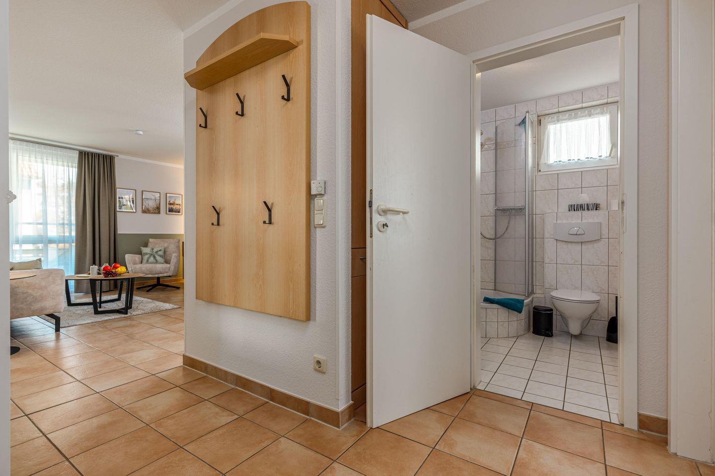 Ein Wohnzimmer, zwei separate Schlafzimmer, ein Badezimmer mit Dusche, ein Balkon Richtung Westen, Sat-TV, Radio sowie einen Außenstellplatz für Ihren Pkw und vieles mehr tragen zum Wohlfühlcharakter der Ferienwohnung bei.