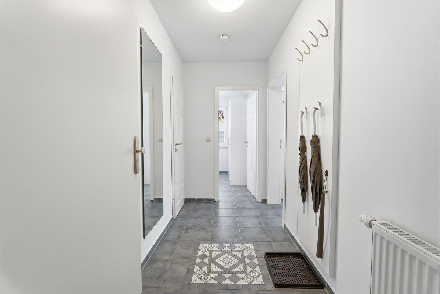Ein besonderes Highlight ist der überdachte Terrassenbereich, ausgestattet mit Gartenmöbeln, Sonnenliegen und Sonnenschirm, der Ihnen Raum für erholsame Stunden im Freien bietet. Ein kostenloser Privatparkplatz sowie ein Fahrradschuppen gehören ebenso zur Ausstattung wie ein Staubsauger, ein Wäscheständer und ein Rauchmelder für Ihre Sicherheit.