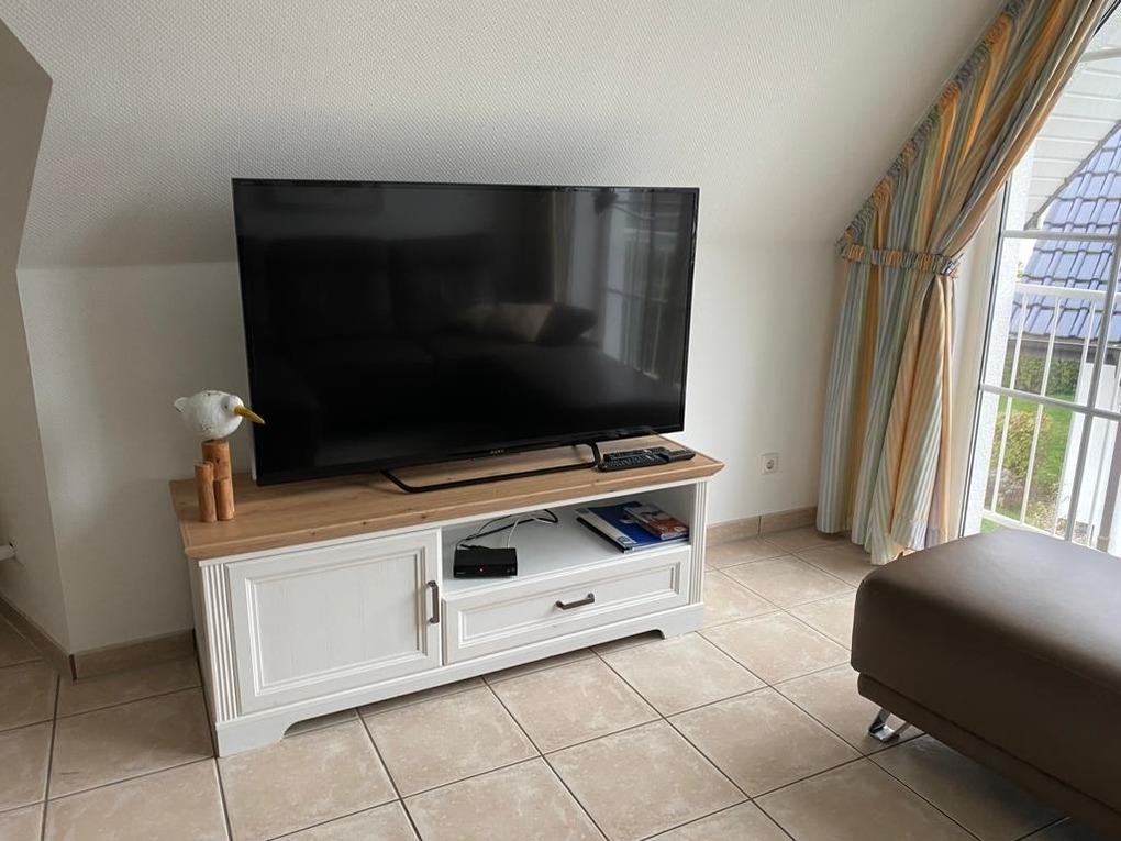 Die Ferienwohnung verfügt über einen großzügigen und sehr hochwertig eingerichteten Wohn/Essbereich mit Smart TV, einem großen lichtdurchfluteten Schlafraum mit Doppelbett, Lesesessel und Flachbildschirm,