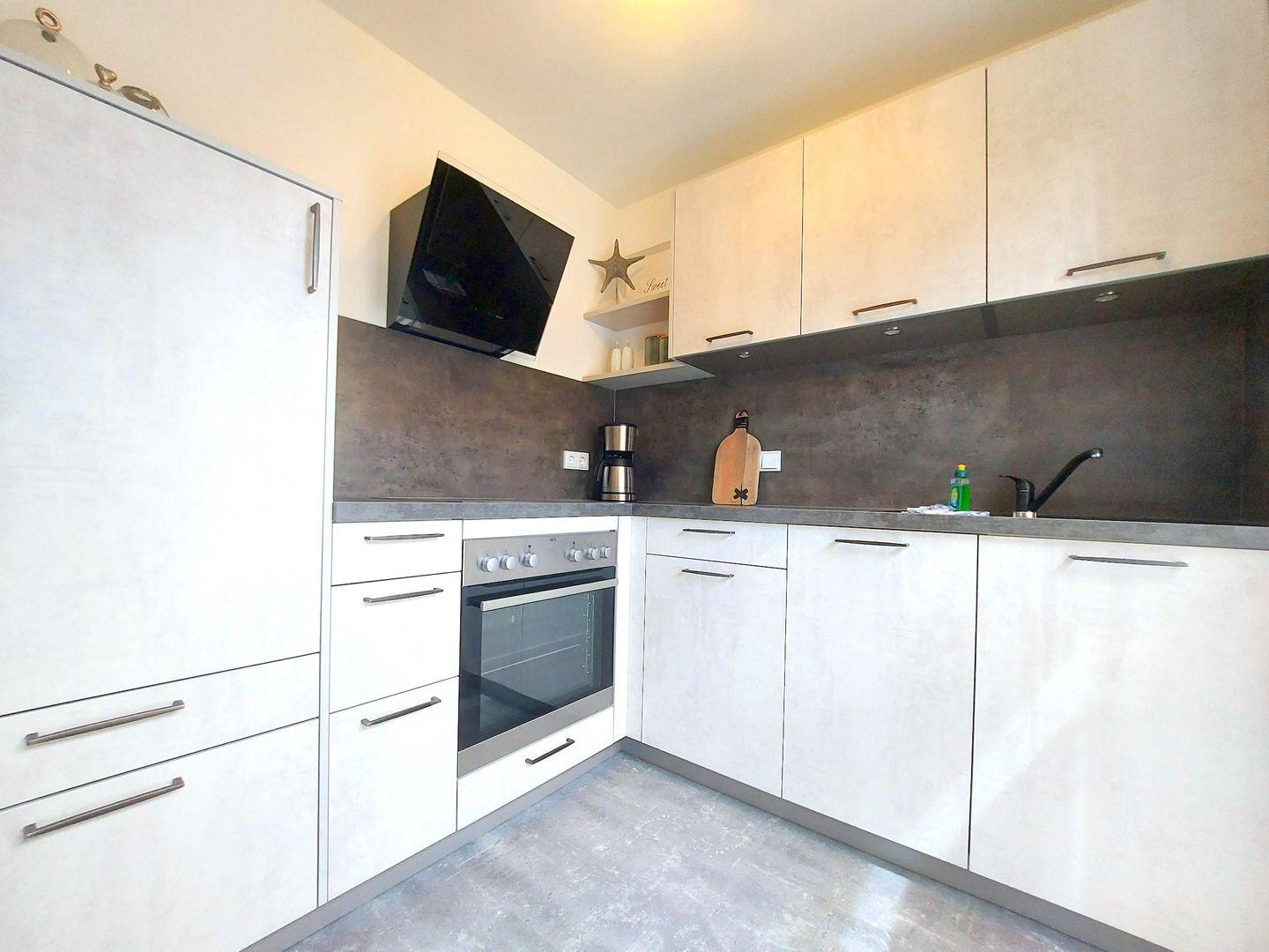 Eine moderne Küche bietet alles um Ihr Lieblingsgericht zu kochen, es werden keine Wünsche offen bleiben. Von der Küche aus gelangen Sie auch auf die sonnige Terrasse, die den Start in den Tag sowie den Ausklang am Abend perfekt abrunden.