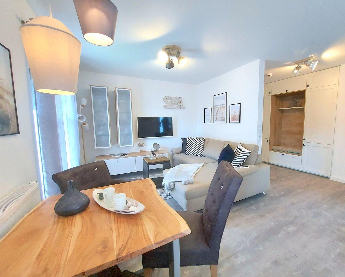 Betreten Sie die Wohnung "Ostseeherz" und fühlen Sie sich von den ersten Sekunden an verzaubert. Ein stilvolles Einrichtungsflair lädt zum Verweilen und Entspannen ein.