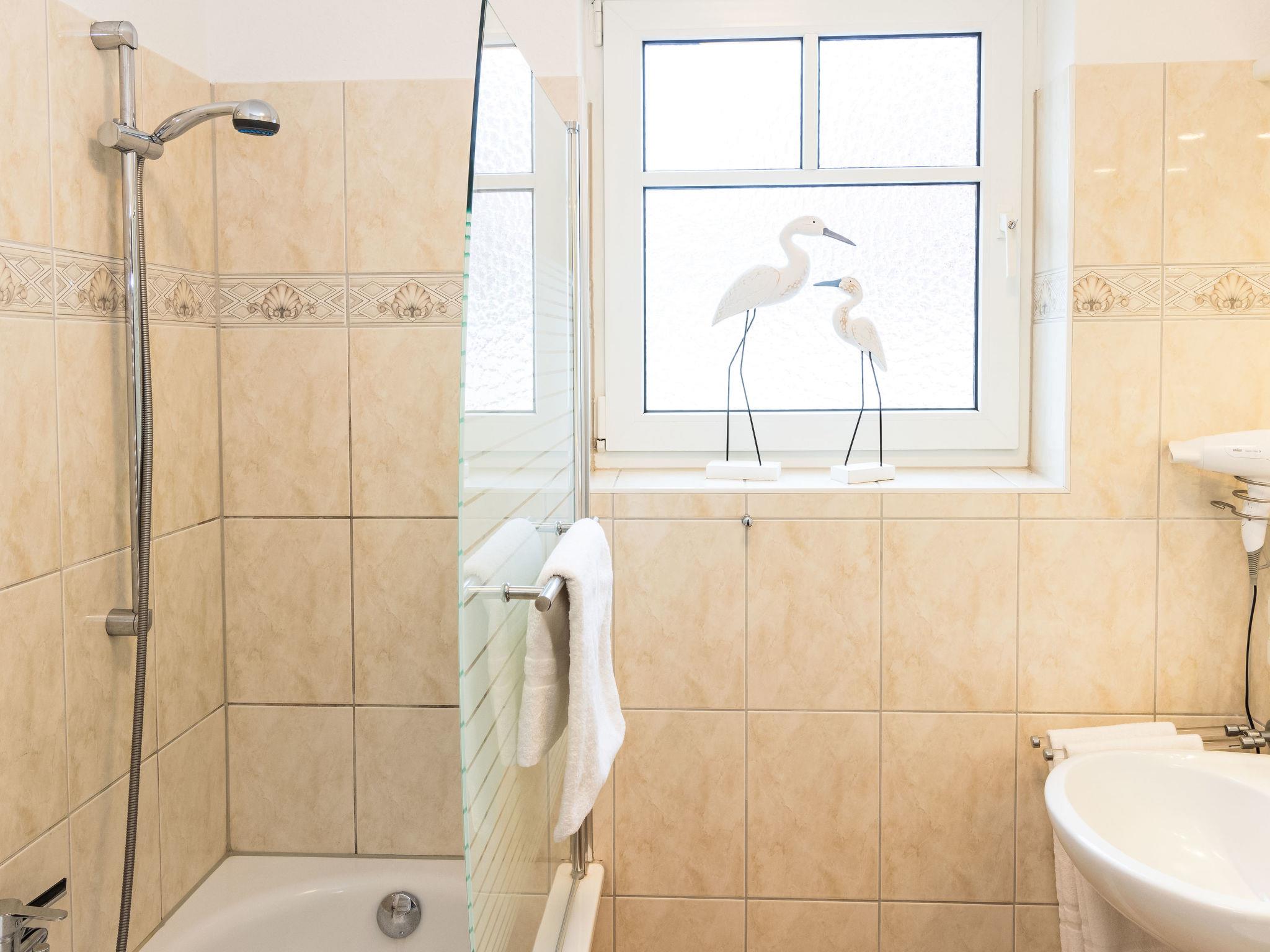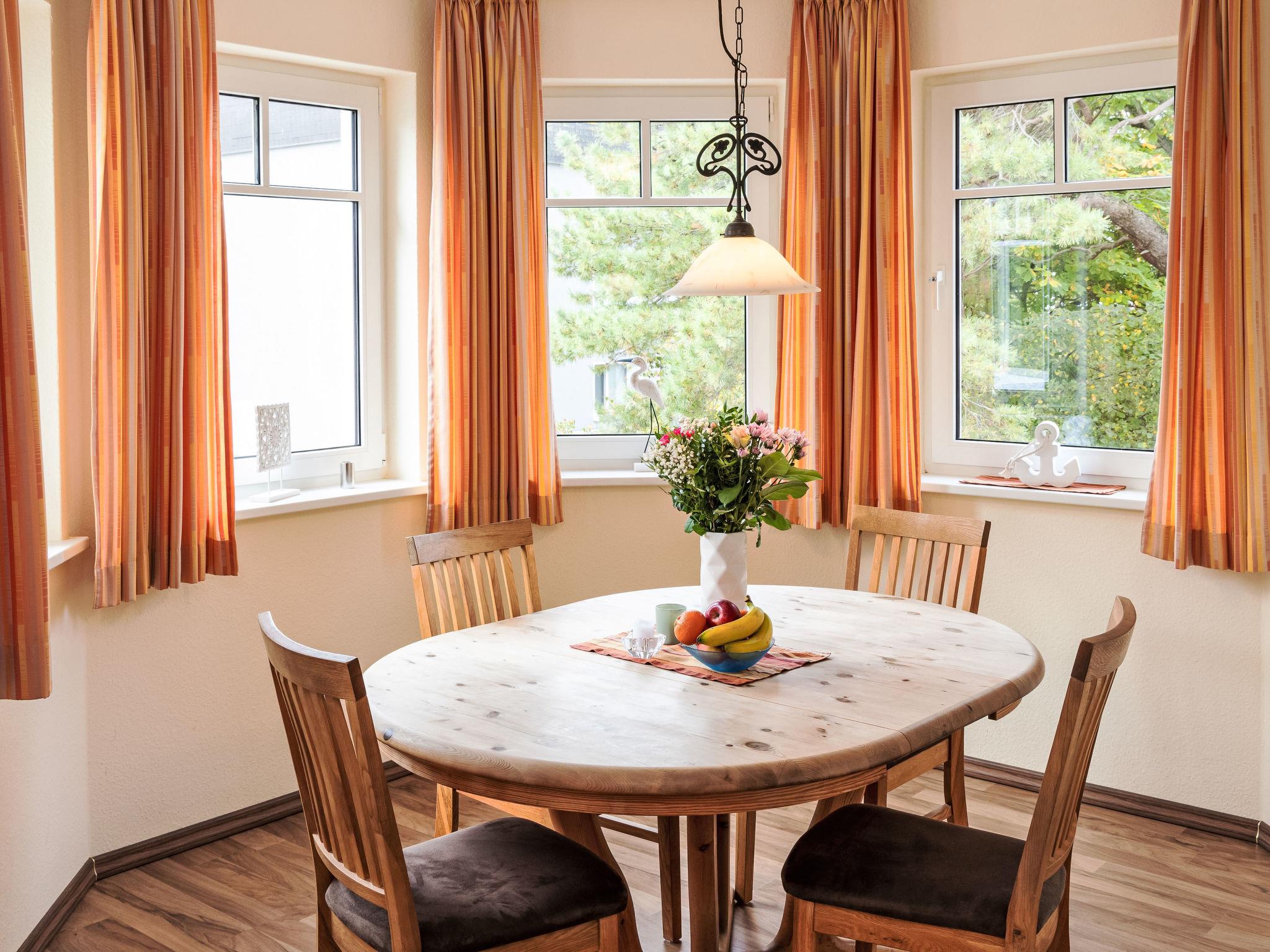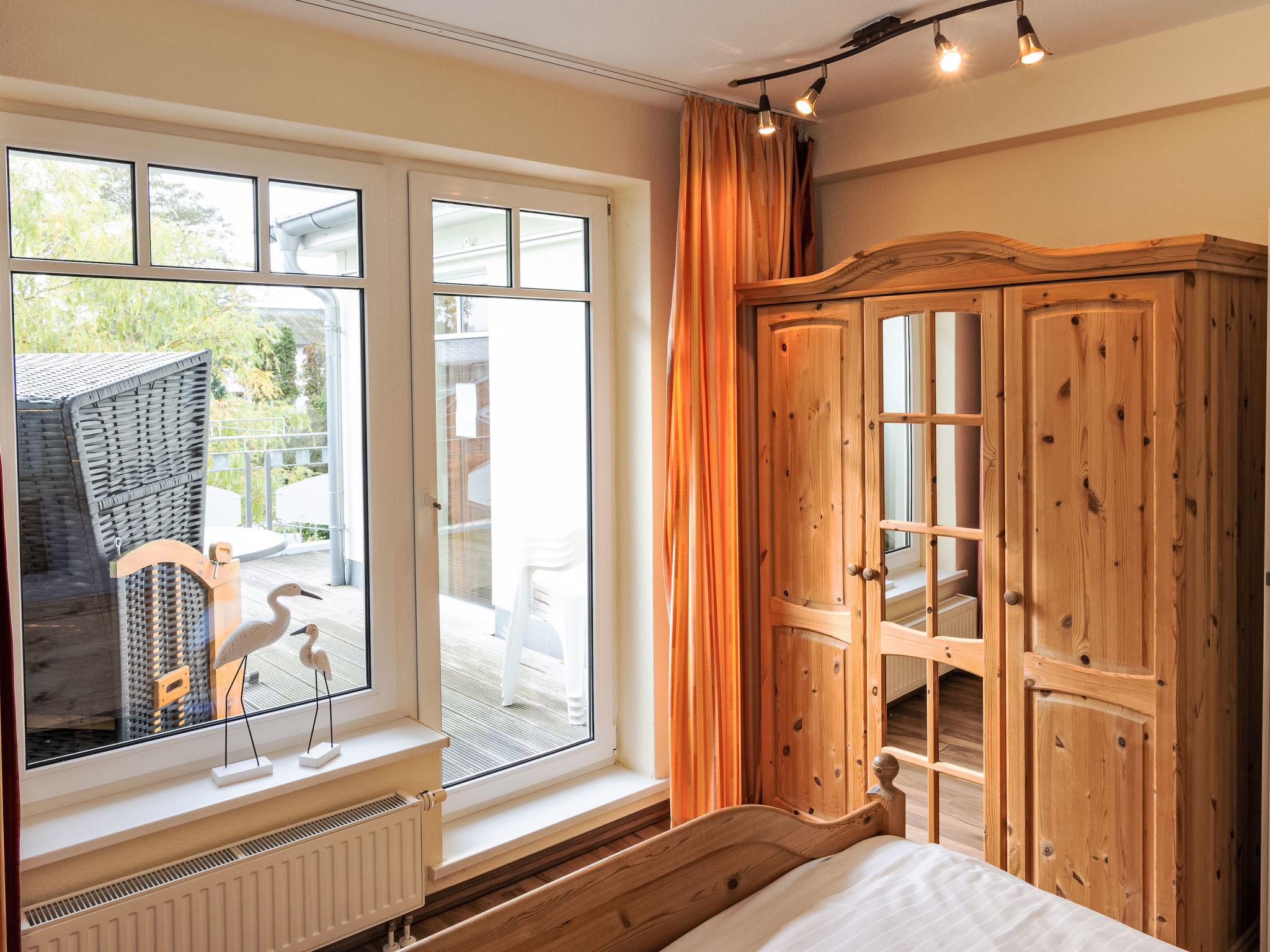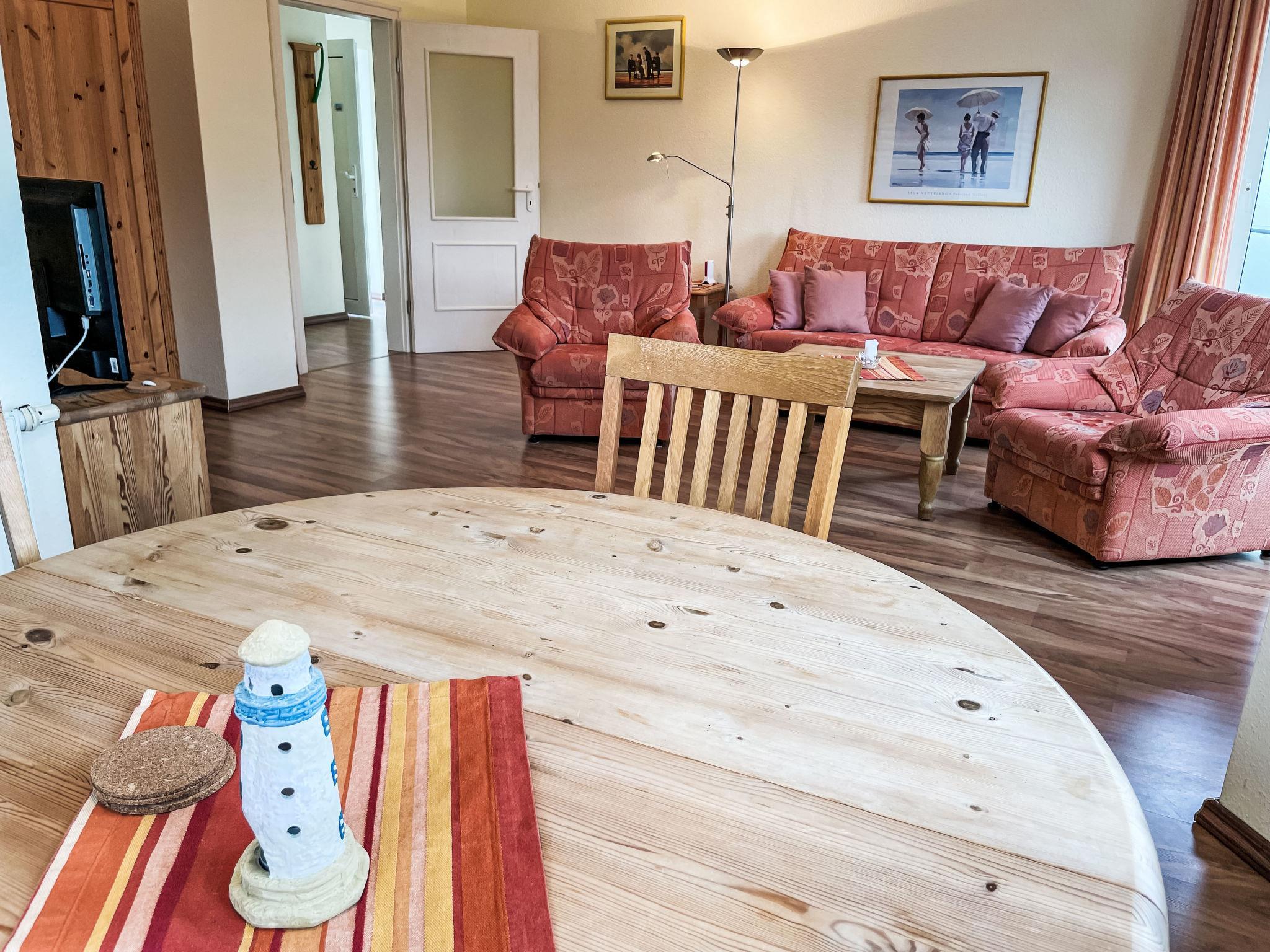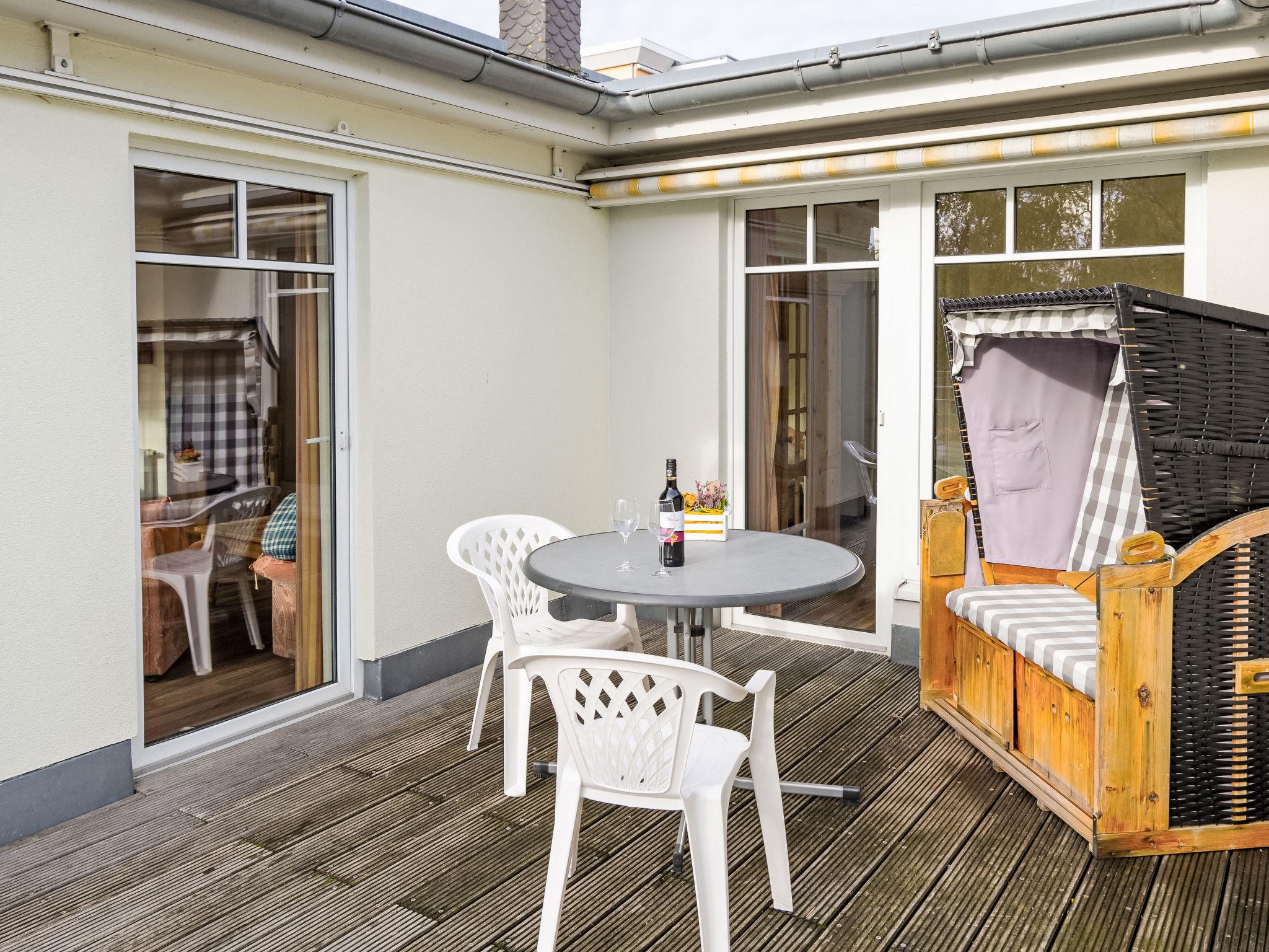 "Luise von Preußen (App.201)", 2-room apartment 69 m2 on 2nd floor. Cosy furnishings: living/dining room with 1 double sofabed and cable TV (flat screen). Exit to the terrace. 1 room with 1 double bed. Small kitchen (oven, dishwasher, 4 ceramic glass hob hotplates, toaster, kettle, electric coffee machine). Bath/WC. Terrace. Terrace furniture. Facilities: children's high chair, baby cot. Internet (WiFi). Parking (1 car) at the house. Please note: non-smokers only. Smoke alarm.