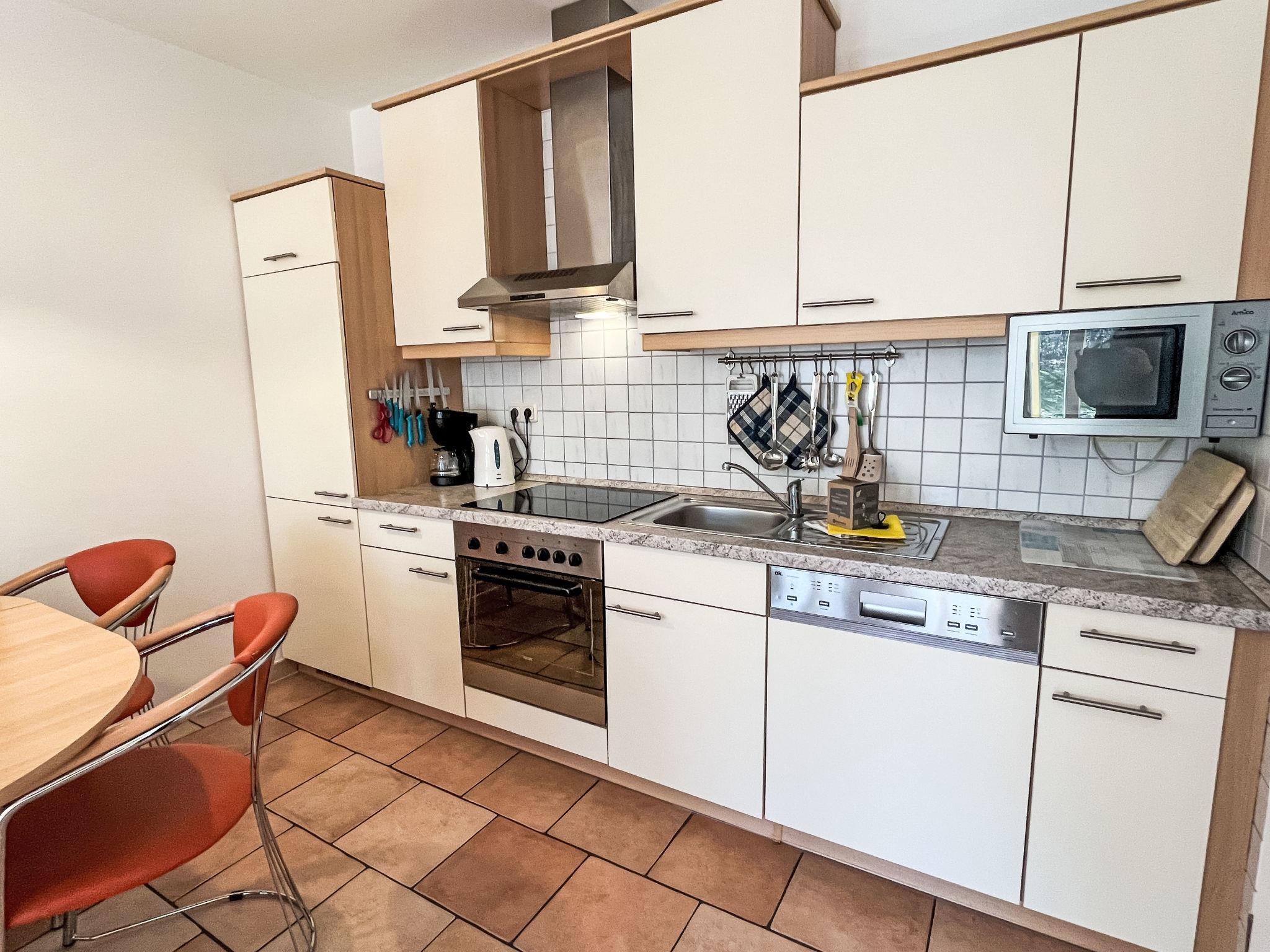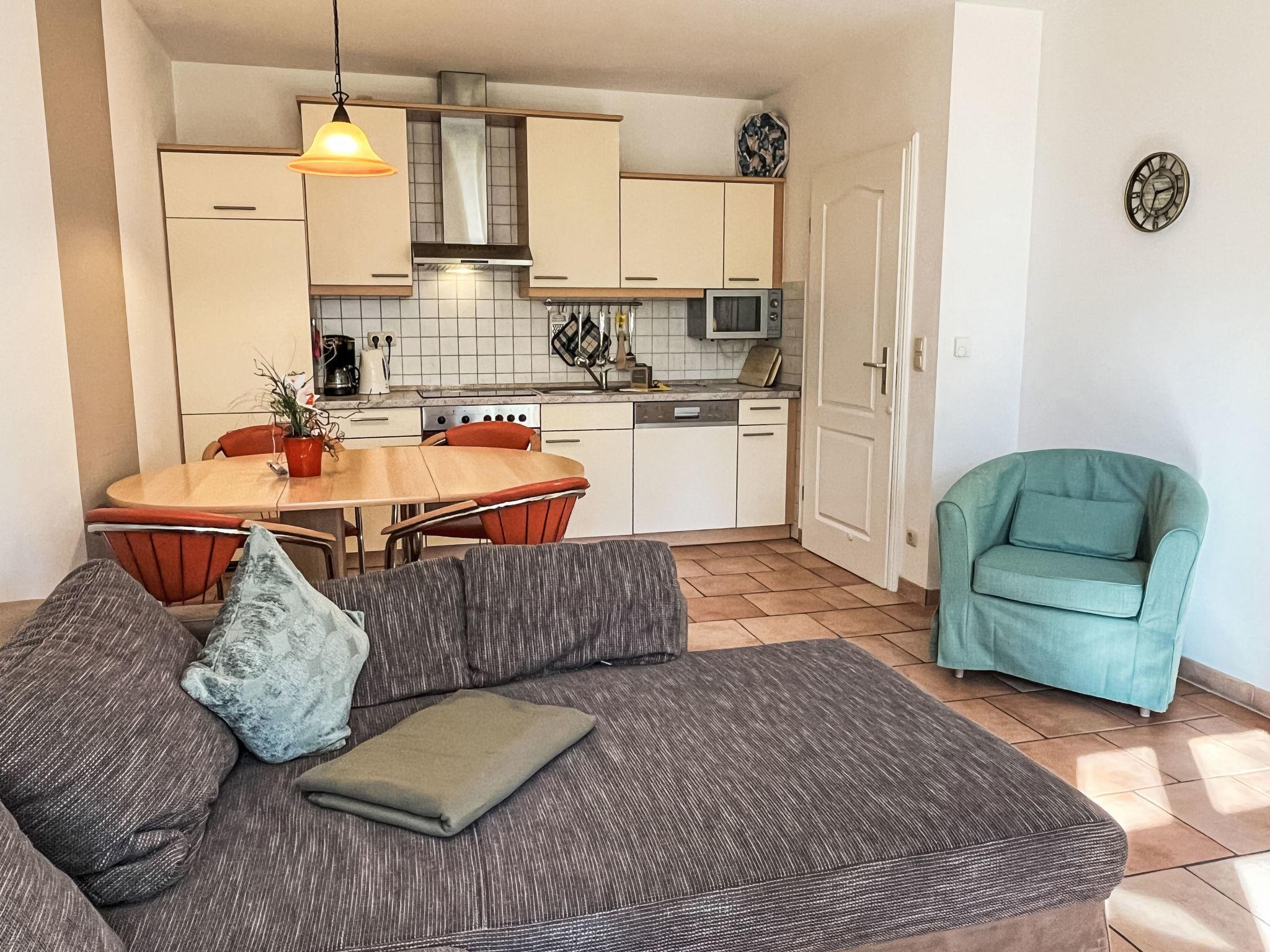 "Lerche", 2-room apartment 50 m2, on the ground floor. Practical furnishings: living/dining room with 1 double sofabed and cable TV (flat screen), radio. Exit to the terrace. 1 room with 1 double bed. Kitchenette (oven, dishwasher, toaster, kettle, microwave, electric coffee machine). Shower/WC. Terrace. Terrace furniture. Facilities: children's high chair, baby cot. Parking (1 car) at the house. Please note: non-smokers only. Maximum 1 pet/ dog allowed. Smoke alarm.