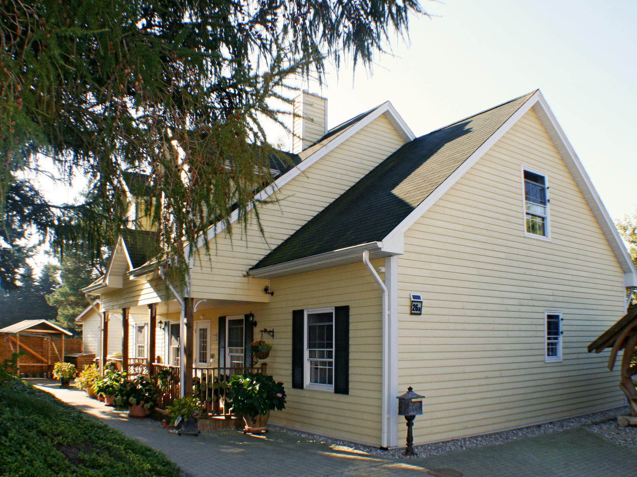 Apartment block "Seepferdchen", 2 storeys. 4 apartments in the residence. 800 m from the centre of Zinnowitz, on the outskirts, 10 km from the centre of Wolgast, 38 km from the centre of Greifswald, 1 km from the sea, in a cul-de-sac. For shared use: property 700 m2, well-kept garden (not fenced) with lawn. Barbecue. In the house: bicycles available (extra). Supermarket, bakery 200 m, bus stop "Zinnowitz, Alte Strandstrasse" 700 m, sandy beach 1 km.
