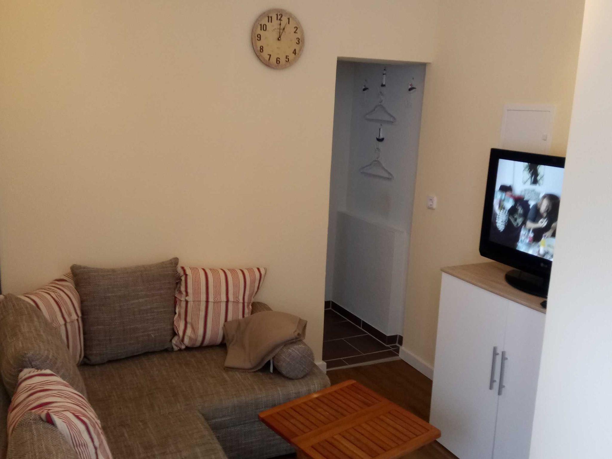 Die Ferienwohnung (40 qm) in der Zinnowitzer Kirchstraße ist über 2 Ebenen verteilt und befindet sich als separater Anbau am Mehrfamilien-Vermieterwohnhaus. Sie besteht aus 2 Schlafzimmern mit Doppel- bzw. Etagenbett (Bettwäsche wird gestellt, Handtücher bitte mitbringen) in der oberen Etage (durch eine etwas steile Treppe zu erreichen) und dem Wohnraum mit einer kleinen Küchenzeile, Kaffeemaschine, Wasserkocher und Toaster sowie Bad mit Dusche/WC im unteren Bereich. TV, Radio, eine Sitzgelegenheit mit Grillmöglichkeit und ein PKW-Stellplatz auf dem Grundstück sind vorhanden. Durch die zentrale Lage bedingt sind Einkaufsmöglichkeiten sowie touristische, kulturelle und gastronomische Einrichtungen in unmittelbarer Nähe. Kostenloser WLAN-Zugang.