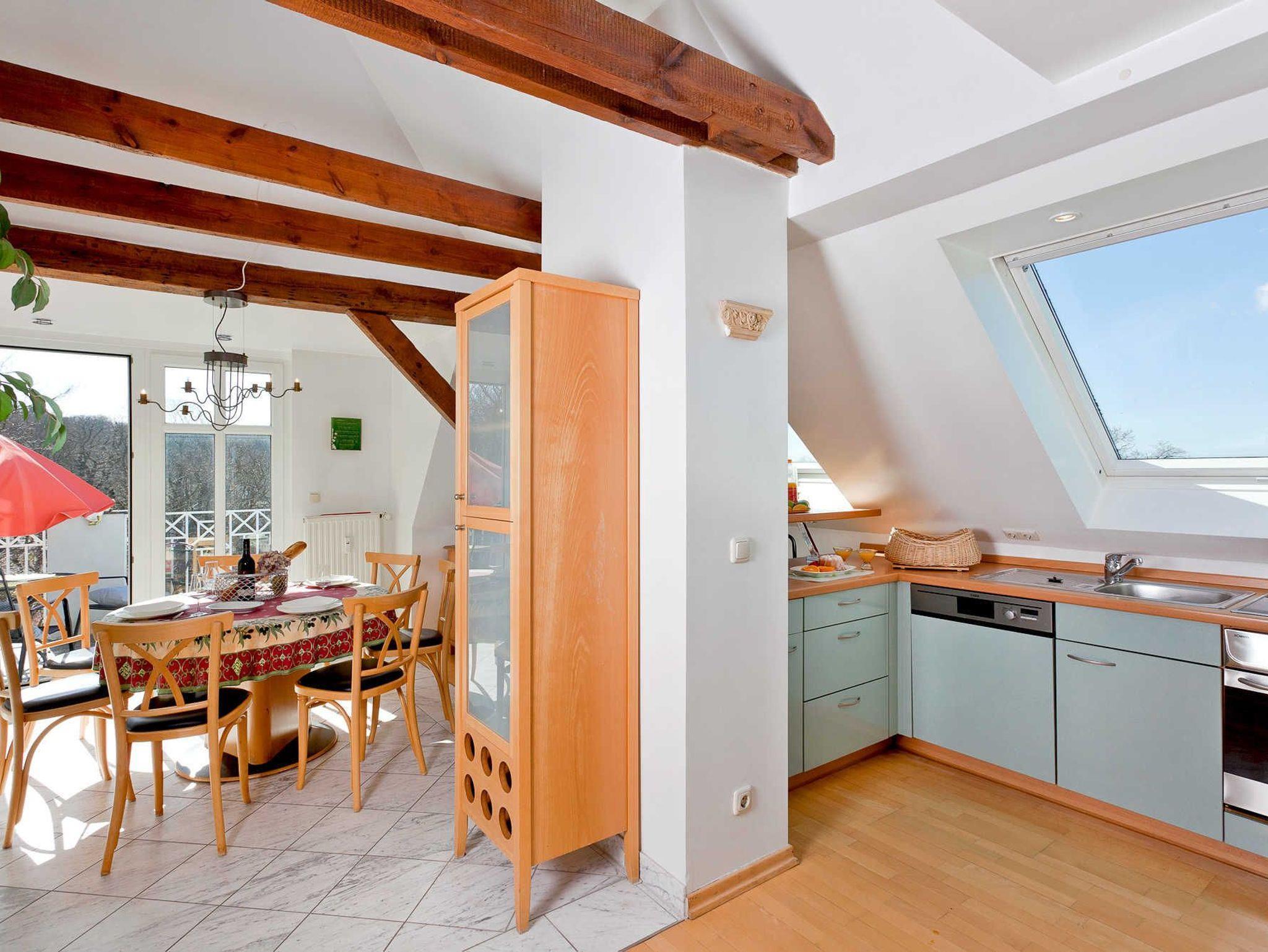 Die Jugendstilvilla liegt auf einer kleinen Anhöhe mitten in Zinnowitz auf der Insel Usedom. Mit durchschnittlich über 1906 Sonnenstunden im Jahr zählt Usedom zu den sonnenreichsten Gegenden in Deutschland und an der Ostsee. Das 700 Jahre alte Zinnowitz zählt zu den schönsten Seebädern auf eben jener Insel. Nicht nur angesehene Maler und Filmemacher zog es schon auf die Insel, auch berühmte Autoren wie Kurt Tucholsky und Theodor Fontane waren fasziniert von ihr. Letzterer beschreibt seine Gefühle 1863 in einem Brief an seine Frau mit den Worten ?? man hat Ruhe und frische Luft und diese beiden Dinge erfüllen Nerven, Herz und Lungen mit einer stillen Wonne?. Zinnowitz und seine Umgebung bieten verschiedenste Aktivitäten für jedermann. Sowohl Wald als auch Strand ermöglichen einen großen Raum zum bewandern und entdecken. Direkt neben dem Gebäude befindet sich das gelbe Theater die Blechbüchse. Auch eine Bernsteintherme und ein Club-Kino bietet die Ortschaft. Signifikant für Usedom sind die zahlreichen Orte die durch einen weitläufigen Sandstrand miteinander verbunden sind. In Zinnowitz findet man direkt am Strand eine Seebrücke mit einer Tauchgondel. Des Weiteren gibt es viele interessante Freizeitaktivitäten in der Nähe, wie Karls Erlebnis-Dorf in Koserow oder das Historisch-Technische Museum in Peenemünde.