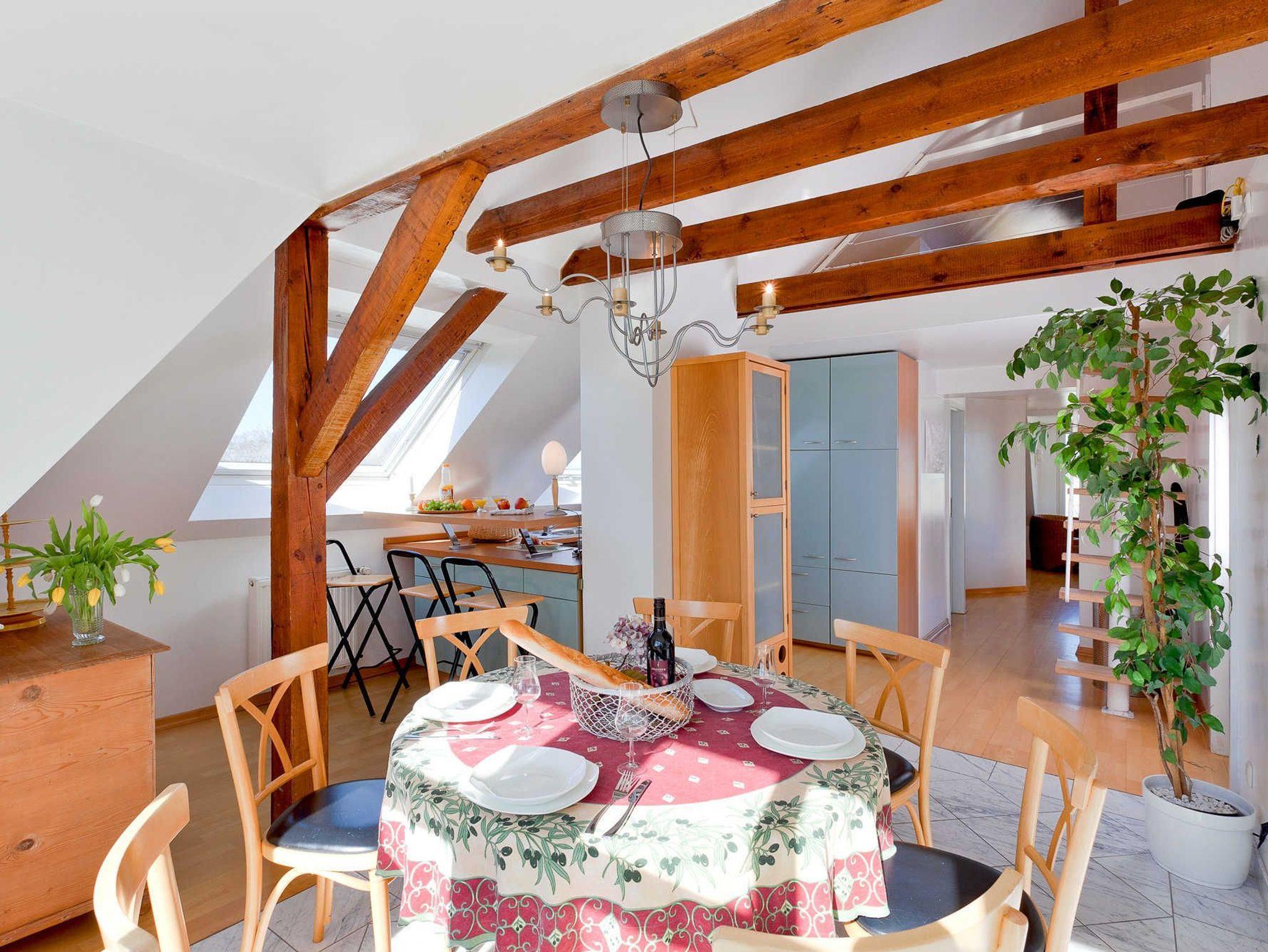 Im mediterranen Stil eingerichtete Ferienwohnung, im Dachgeschoss mit Seeblick. Ausstattung der Wohnung: