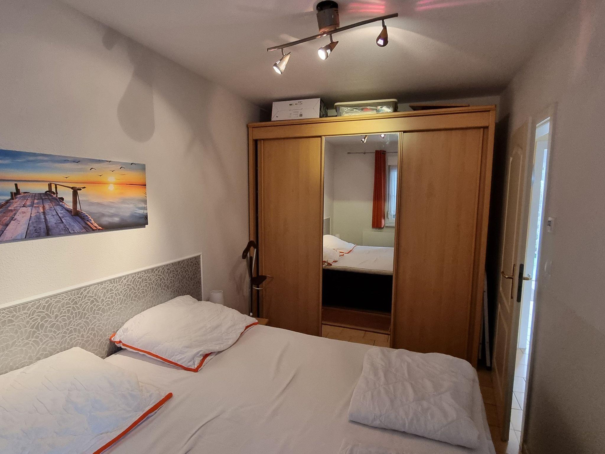 1 Schlafzimmer mit Schrank & Doppelbett 1.80*2.00m (durchgehende Matratze)