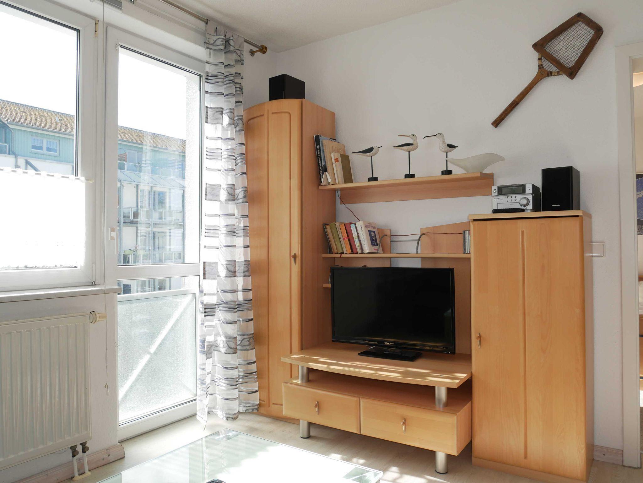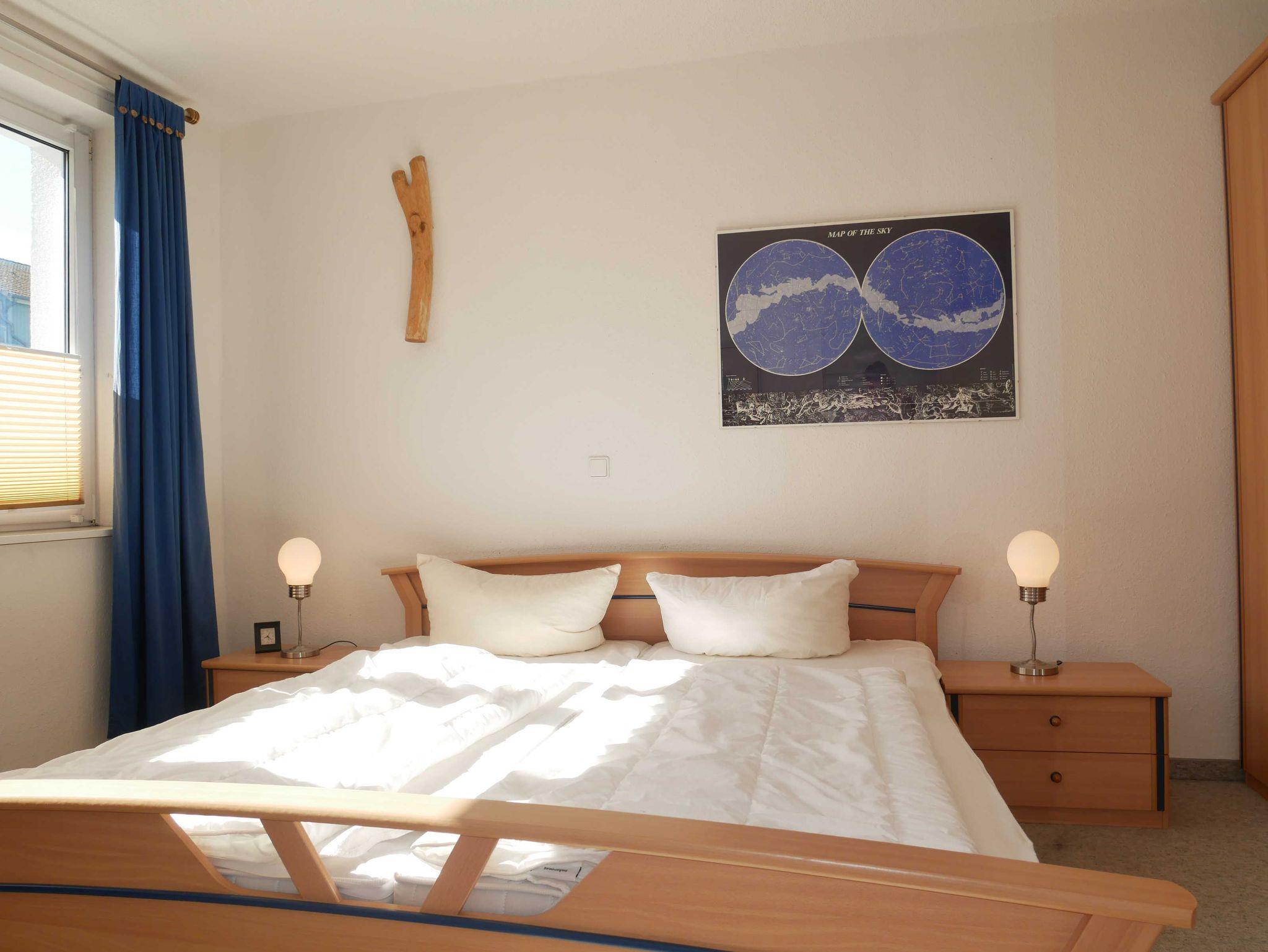 Die 70 qm große 3-Raum-Ferienwohnung ist modern und komfortabel eingerichtet. Sie verfügt über zwei Schlafzimmer (1 Doppelbett und zwei Einzelbetten), eine großzügige Wohnküche mit Wohnbereich, Essplatz und einer komplett ausgestatteten Küchenzeile mit Spülmaschine, Backofen, Ceran-Herd, Kühlschrank mit sep. Gefrierfach, Mikrowelle und vielen weiteren Extras. Das Bad verfügt über Dusche und WC.