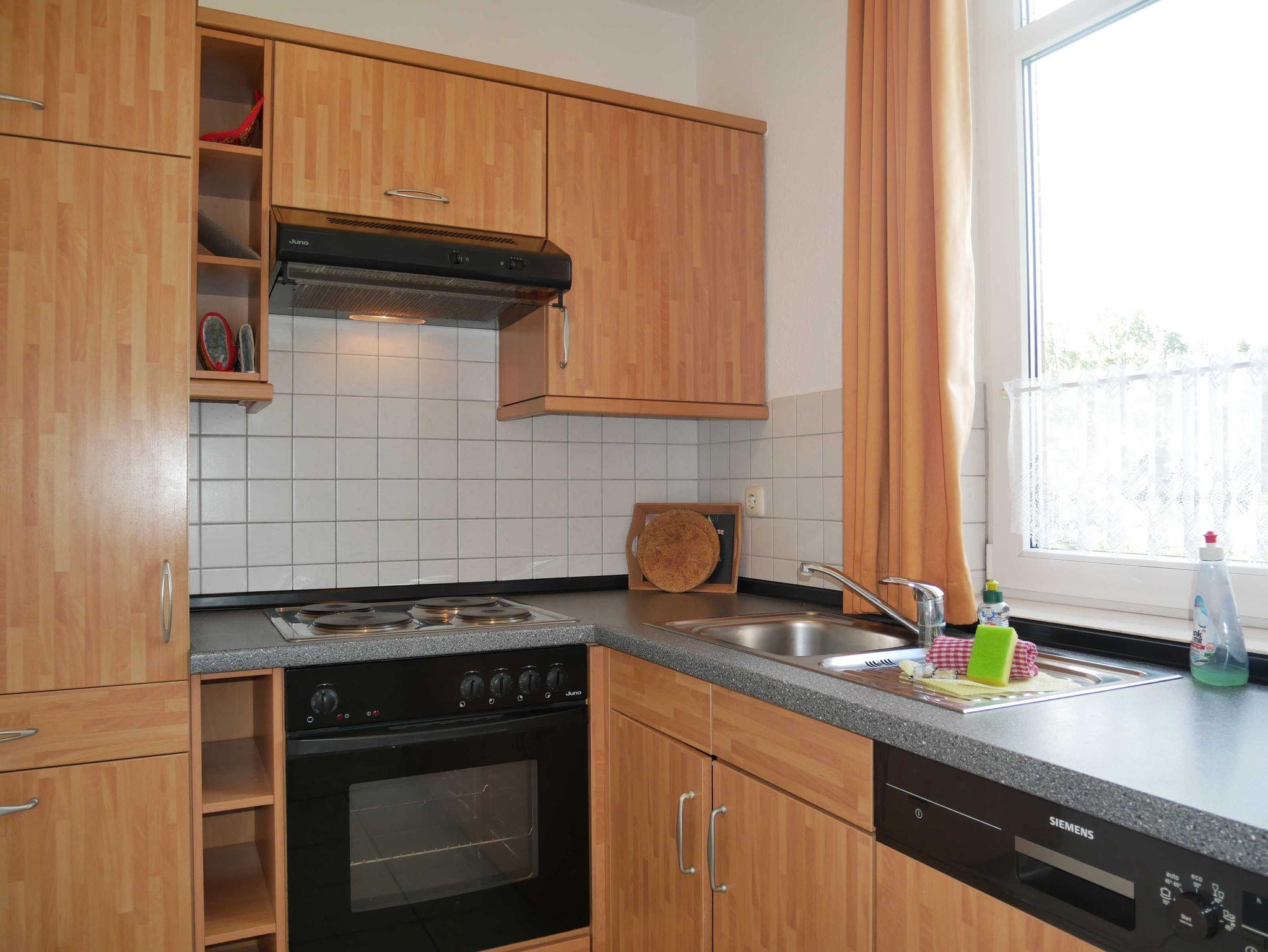 Zur Wohnung gehören ein Wohnzimmer, mit einer gemütlichen Essecke und Couchlandschaft mit TV, eine separate Küche, die über ein 4 Platten Kochfeld mit Backofen, Spülmaschine, Kühlschrank, Wasserkocher, Toaster und Kaffeemaschine verfügt.