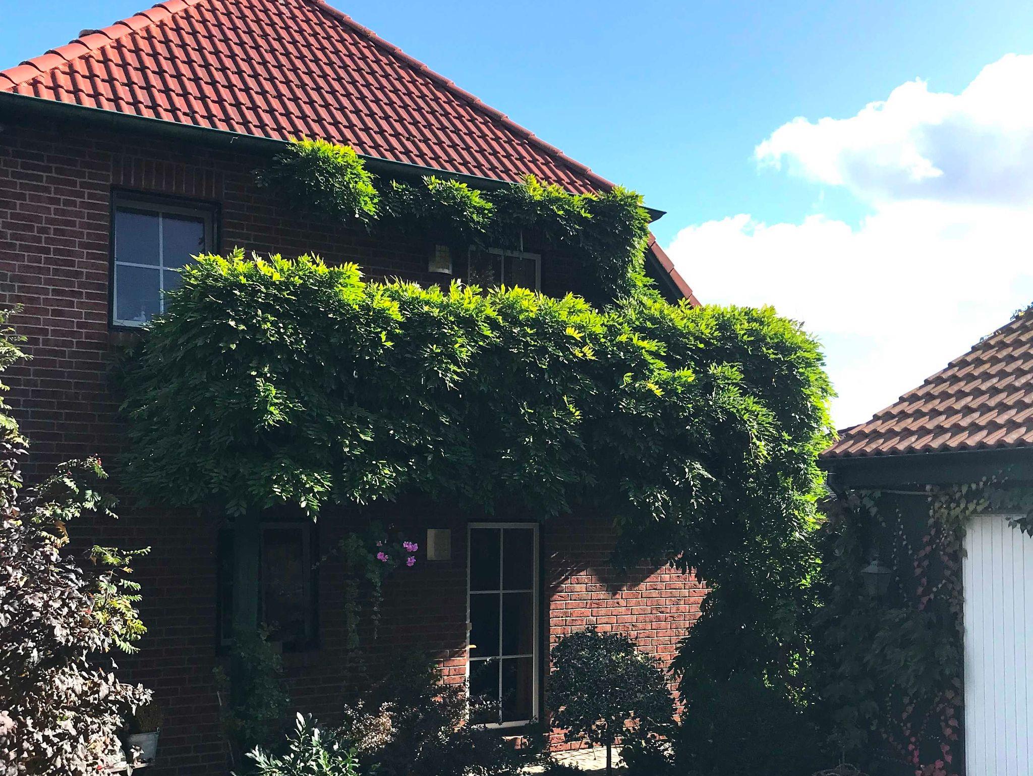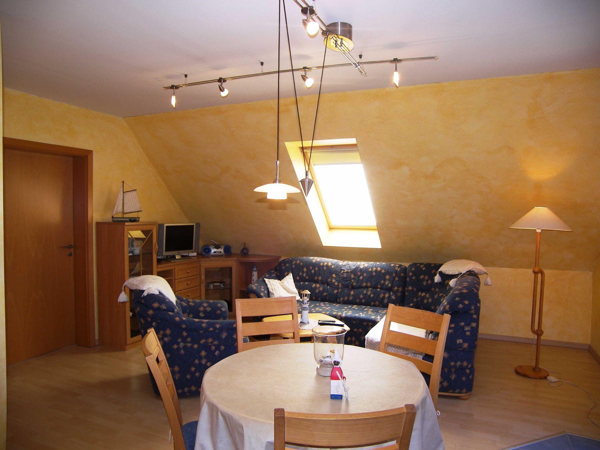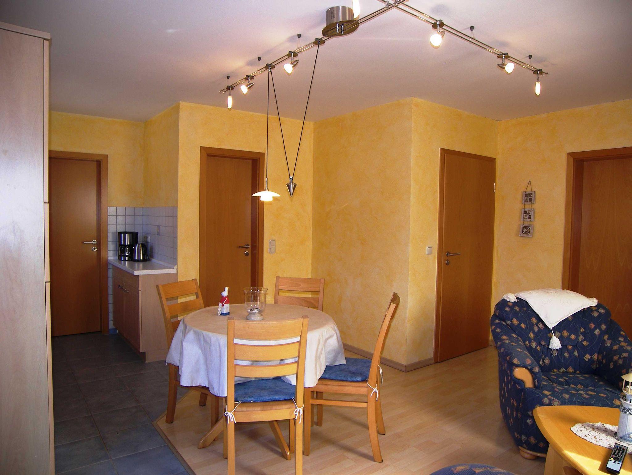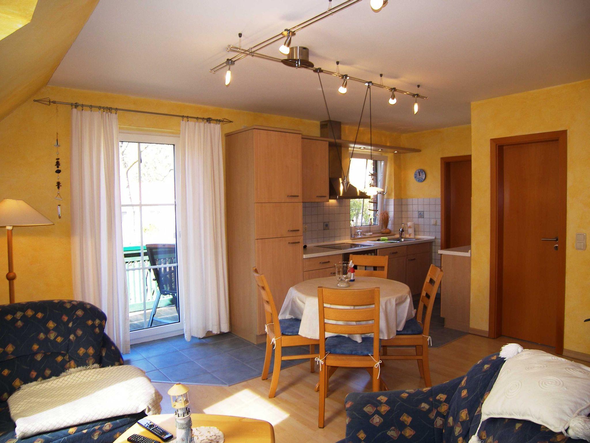 Die schöne 2-Raum-Ferienwohnung befindet sich im Obergeschoss des Hauses. Im Wohnzimmer finden Sie die vollausgestattete Küchenzeile mit Herd, Backofen, Geschirrspülmaschine, Toaster und Kaffeemaschine. Der Wohnbereich verfügt über eine schöne Eckcouch. Im Schlafzimmer befindet sich ein gemütliches Doppelbett und ein großer Kleiderschrank, der für genügend Stauraum sorgt. In dem schönen hellen Badezimmer befindet sich eine Dusche und ein WC. Weiterhin gehört zu der Ferienwohnung ein Abstellraum, den Sie gerne auch benutzen dürfen. Der schöne begrünte Balkon lädt zum Entspannen und Erholen ein. WLAN steht Ihnen kostenfrei zur Verfügung.