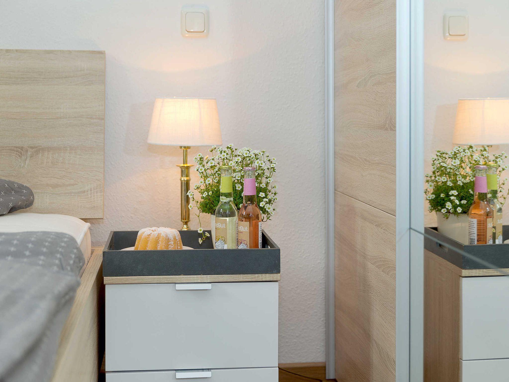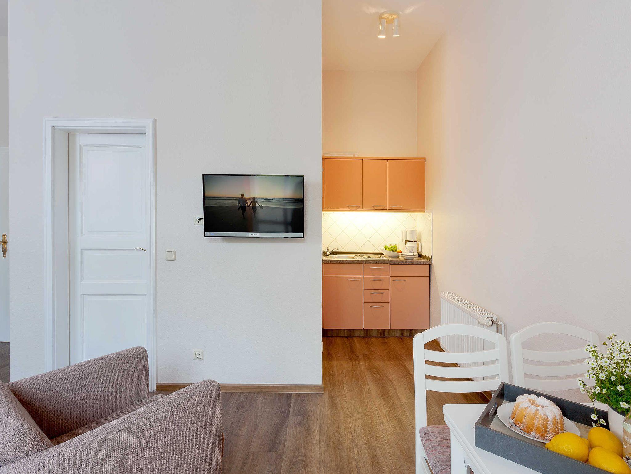 Die moderne 1-Zimmer-Ferienwohnung befindet sich im 2. Obergeschoss und ist für 2 Personen ausgelegt. Auf 37 m² befinden sich ein Schlaf- und Wohnraum mit einer Pantryküche, ein Bad mit Dusche und ein Balkon.