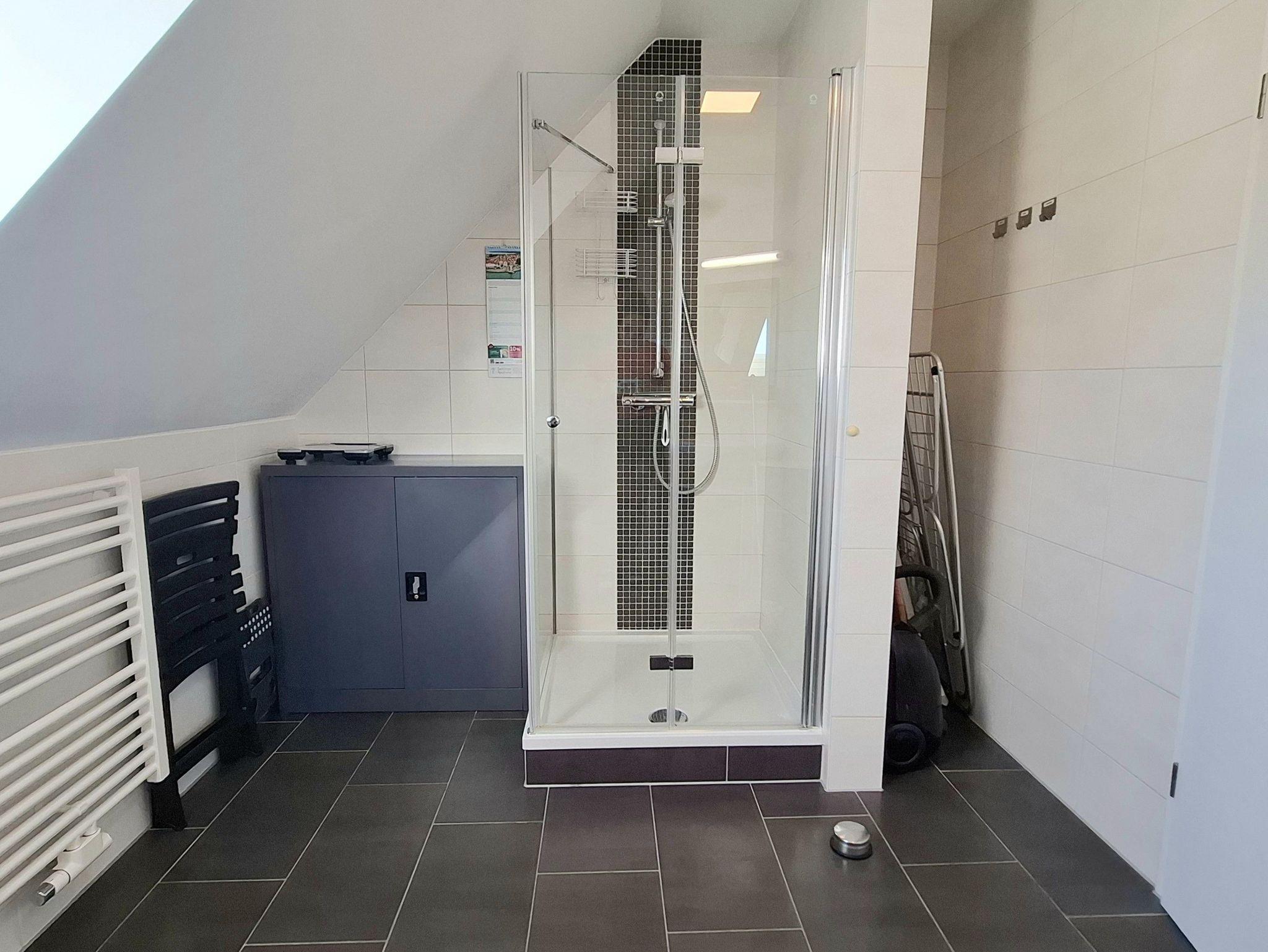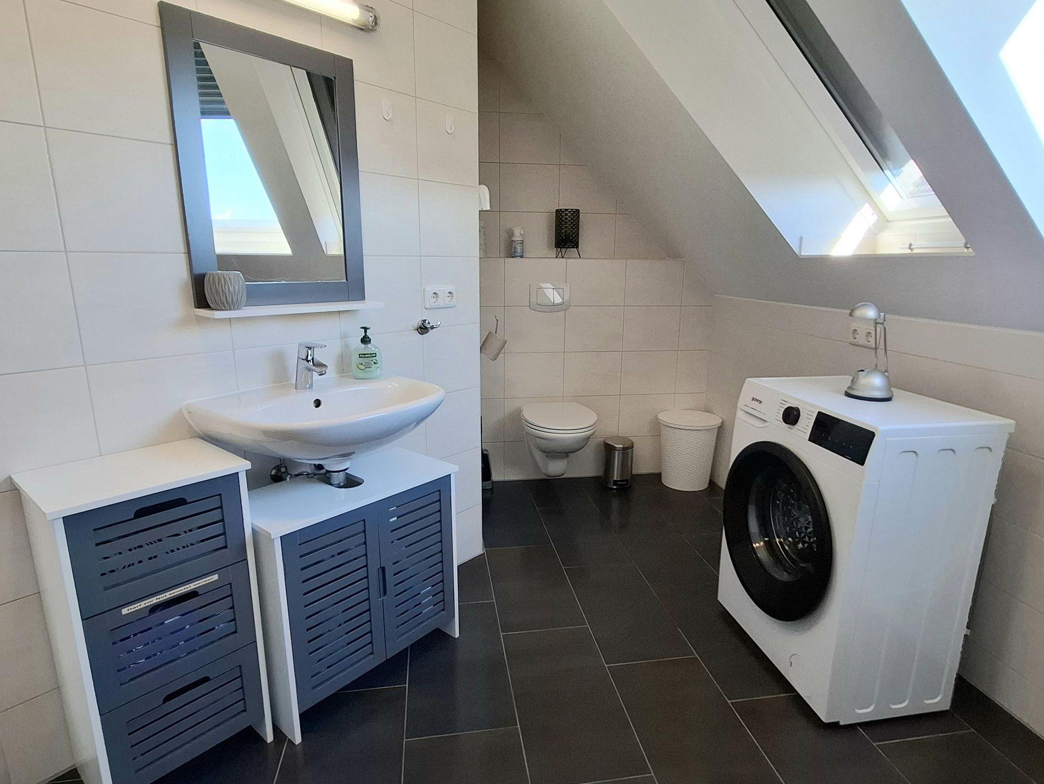 Das moderne Badezimmer ist mit Dusche/WC, Haartrockner und Waschmaschine ausgestattet. Wäscheständer sowie Bügeleisen stehen Ihnen ebenfalls zur Verfügung.