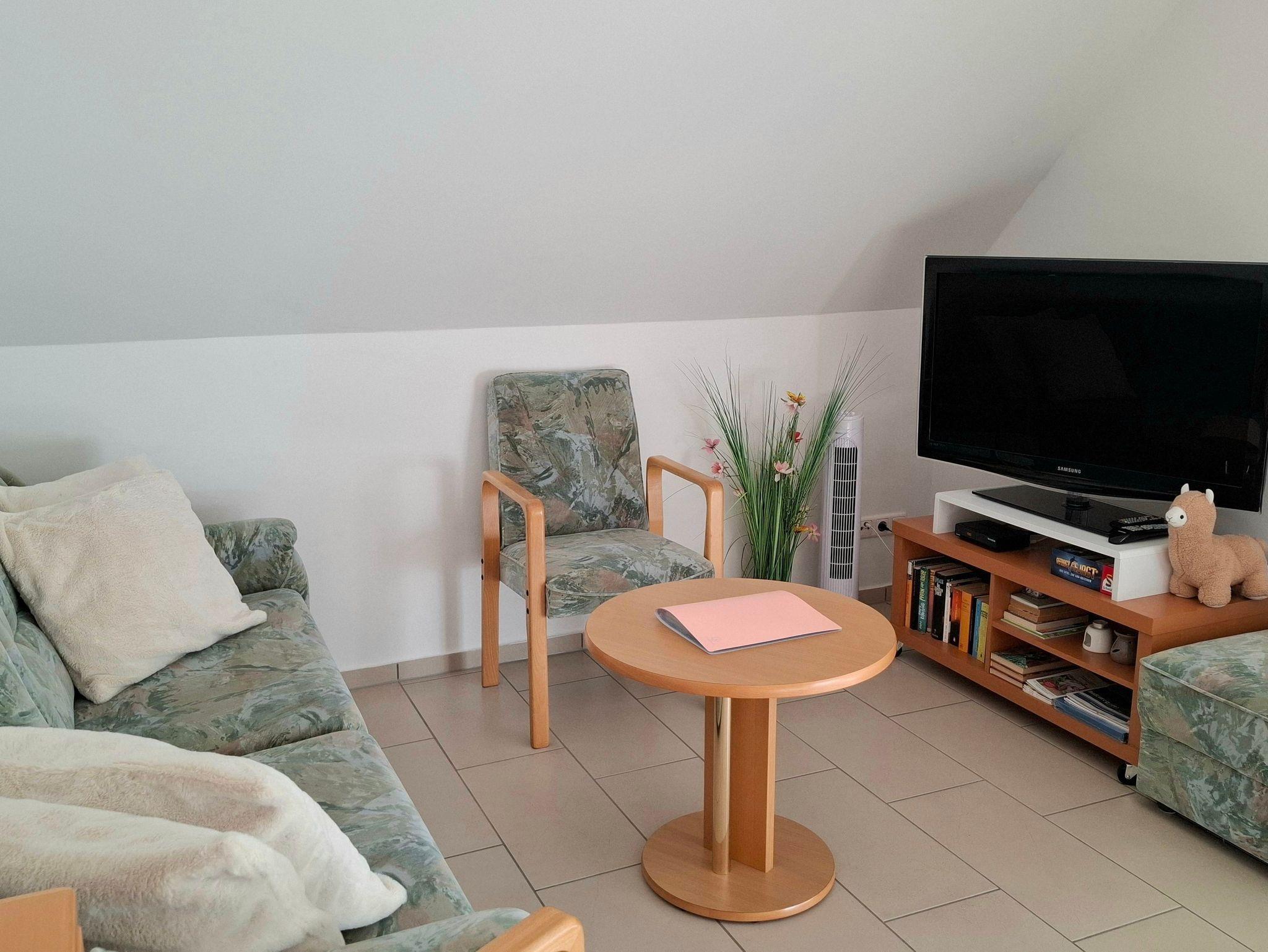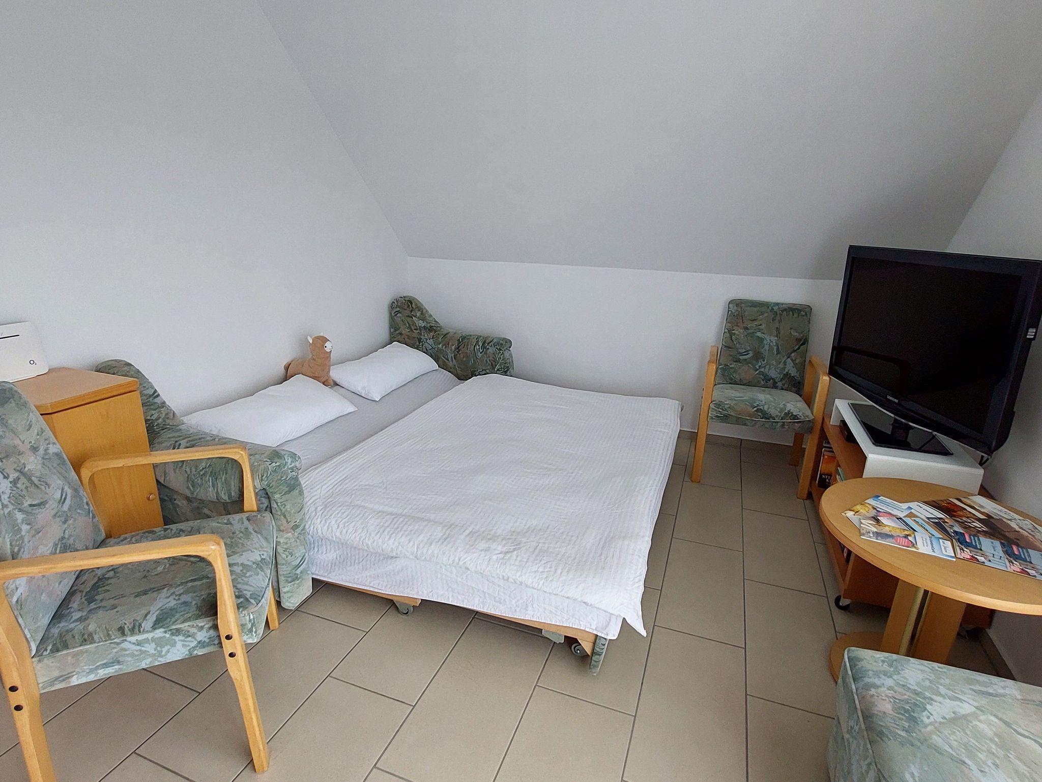 Zwei Ventilatoren sorgen an warmen Tagen für Abkühlung. Ein Keyboard sowie Videos und Bücher können während des Aufenthaltes gerne von Ihnen genutzt werden.