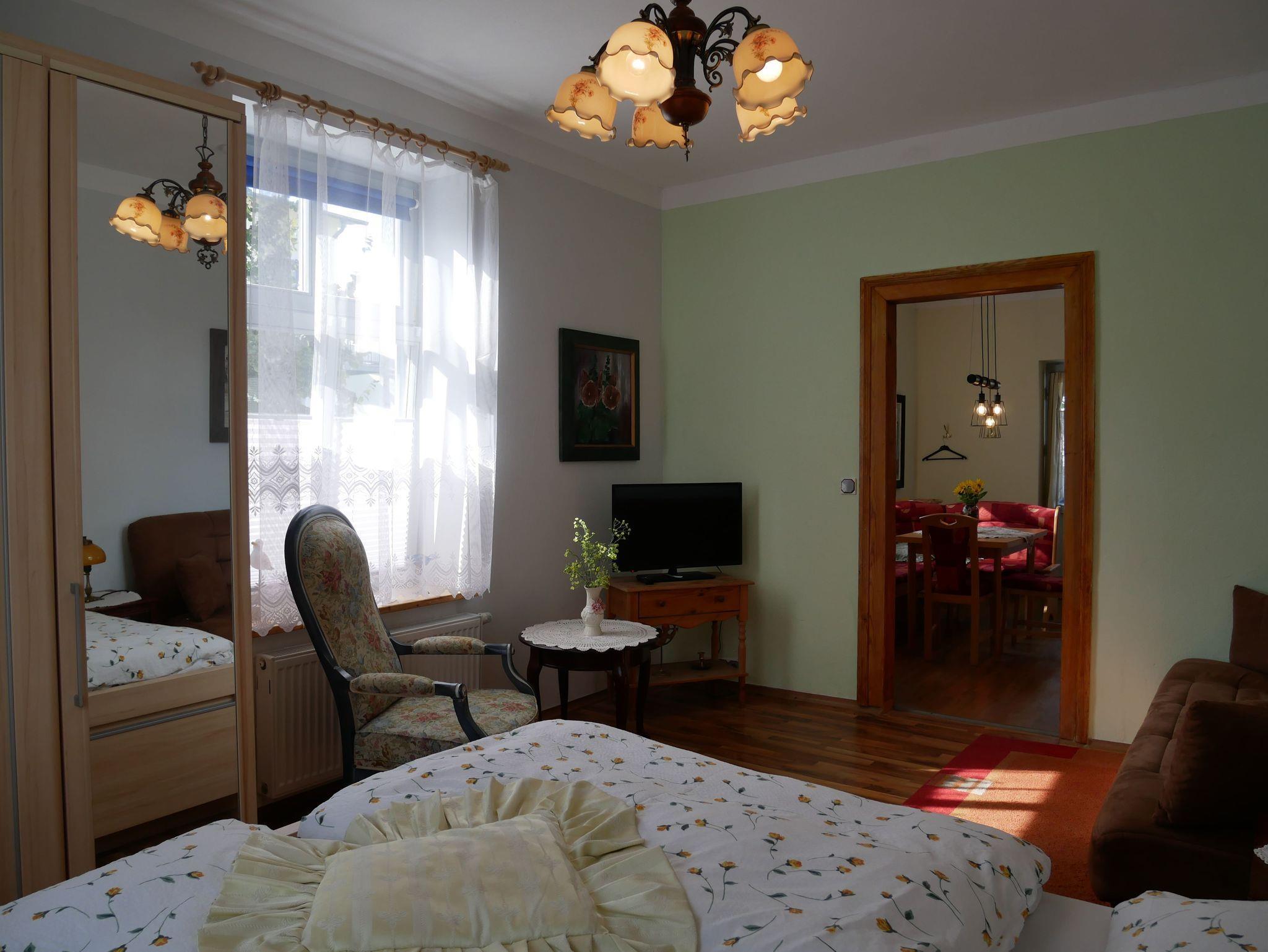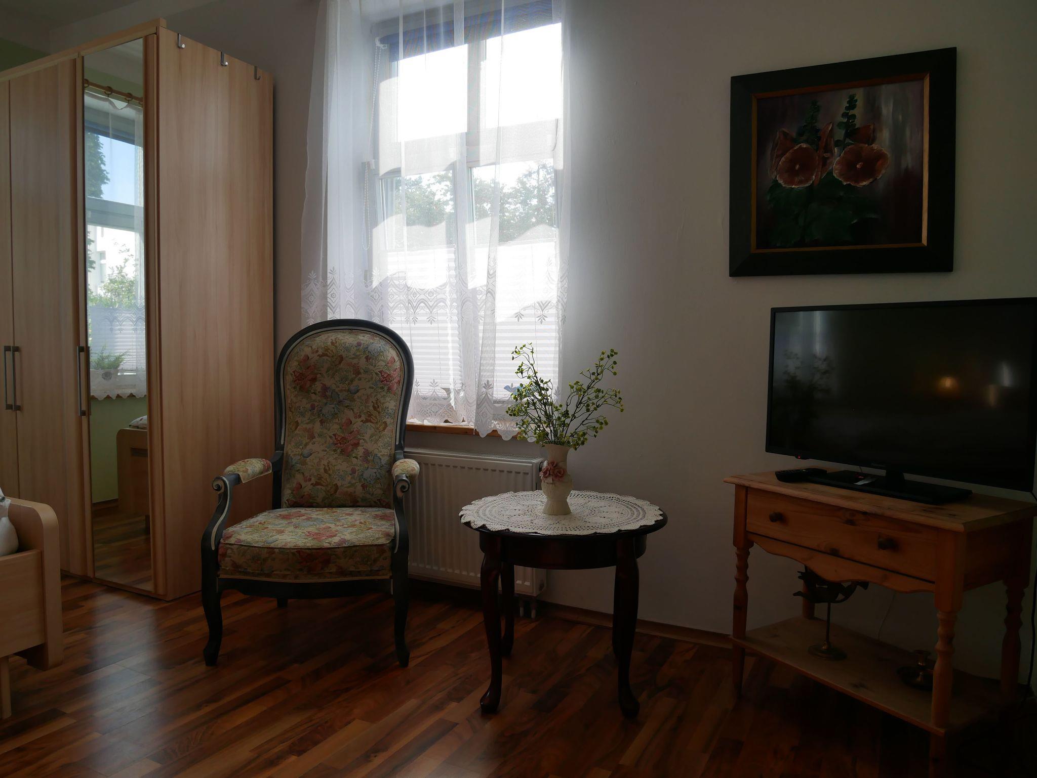 Die Ferienwohnung liegt in Hochparterre, ist ca. 36 qm groß und gut für 1 bis 2 Personen geeignet. Sie teilt sich auf in ein kombiniertes Wohn- und Schlafzimmer mit Doppelbett, Kleiderschrank, Couch und Fernseher, sowie in eine separate Küche.