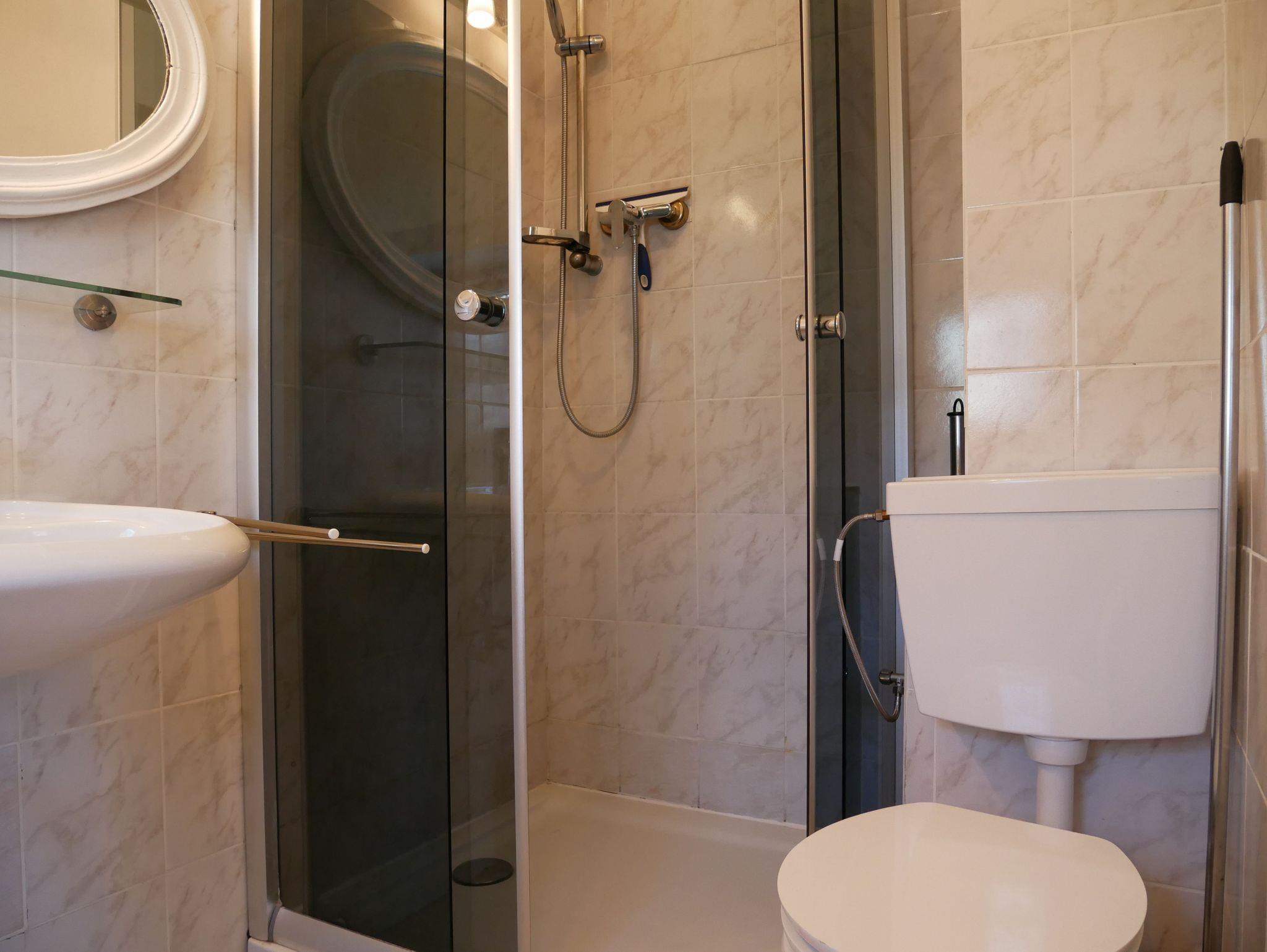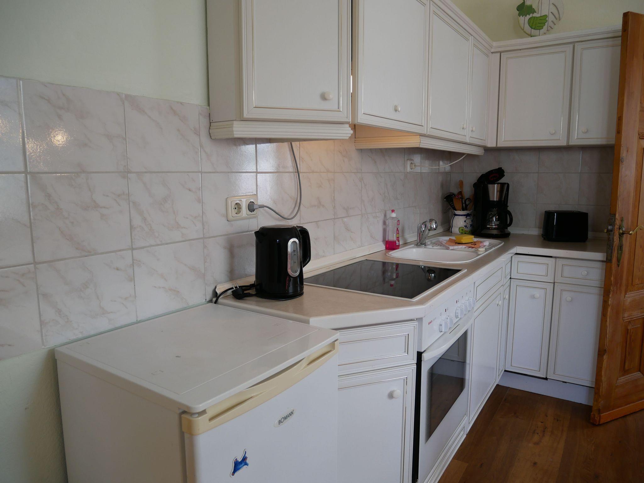 Die Küche ist mit einem Elektroherd mit Ceranfeld, Kaffeemaschine, Wasserkocher, Toaster und Kühlschrank ausgestattet. Das Badezimmer verfügt über eine Dusche und WC.