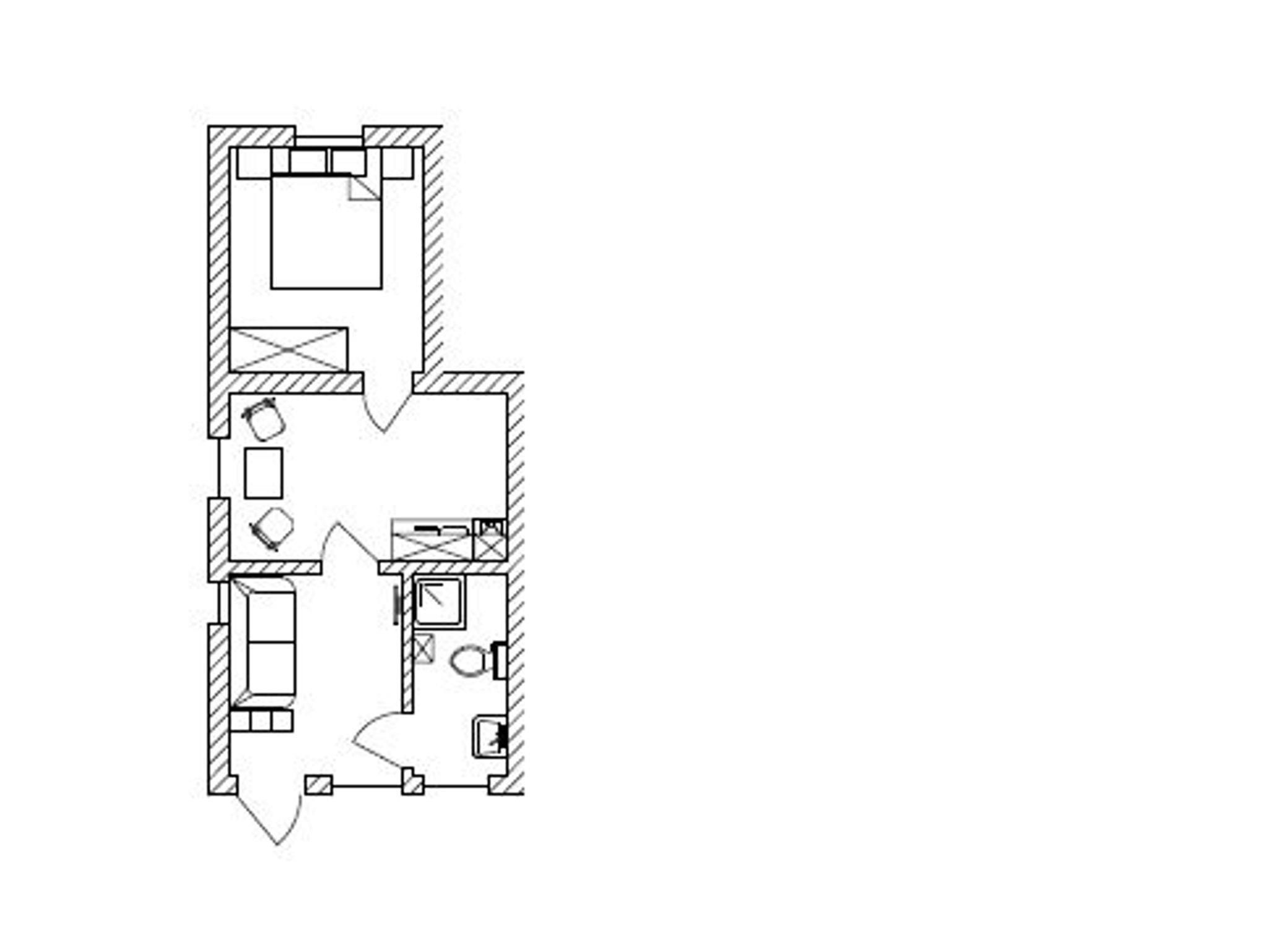 Diese 30 m² große, modern und komfortabel ausgestattete 2-Raum-Ferienwohnung liegt im Erdgeschoss. Sie ist für 2 Personen ausgelegt. Die Wohnung besitzt ein Schlafzimmer, ein kleines Wohnzimmer mit einer Pantryküche und ein Bad mit Dusche.