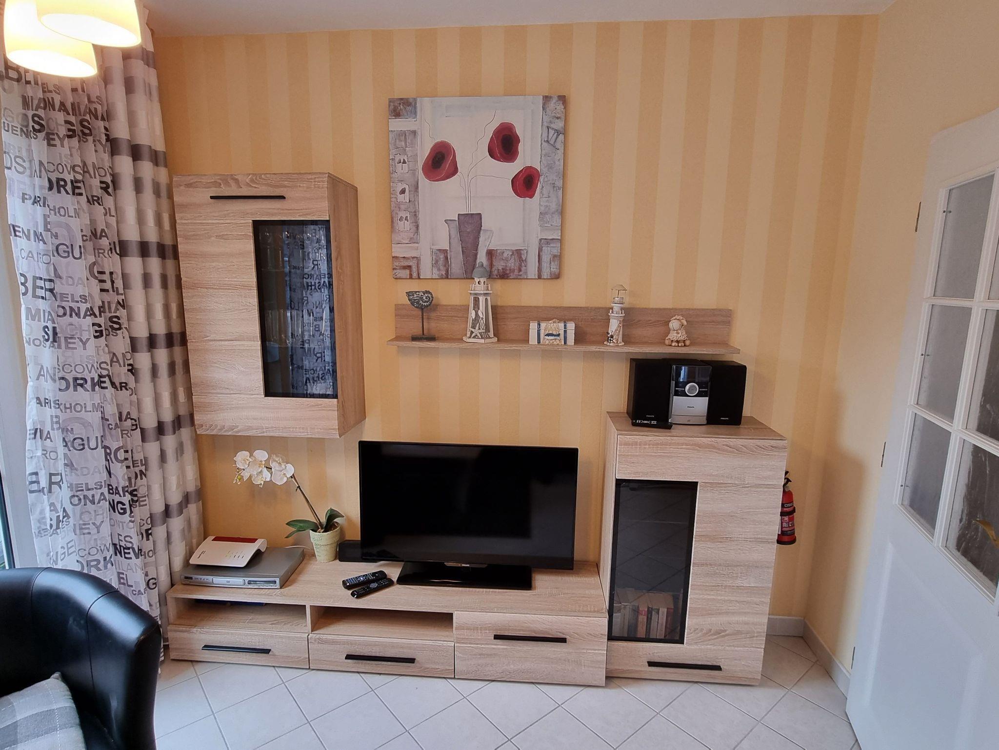 Die Wohnung liegt in einem Ferienpark mit kleinem Spielplatz,Tischtennisplatte und gemeinschaftlichen Waschrraum mit Trockner und Waschmaschine (gegen Gebühr).
