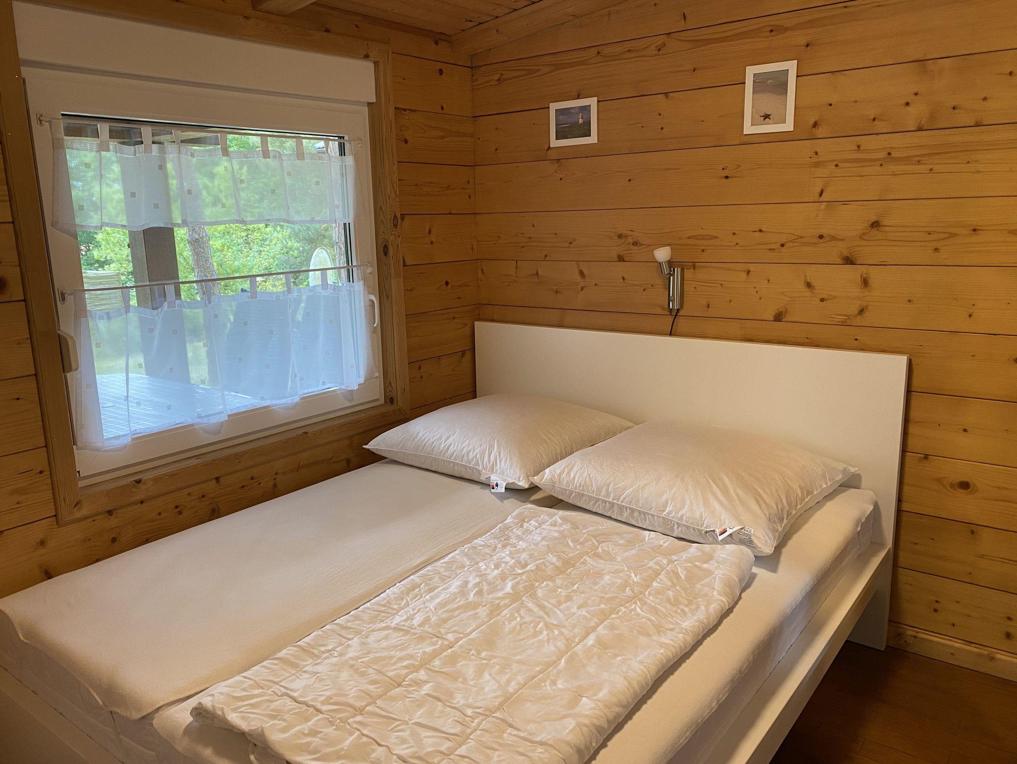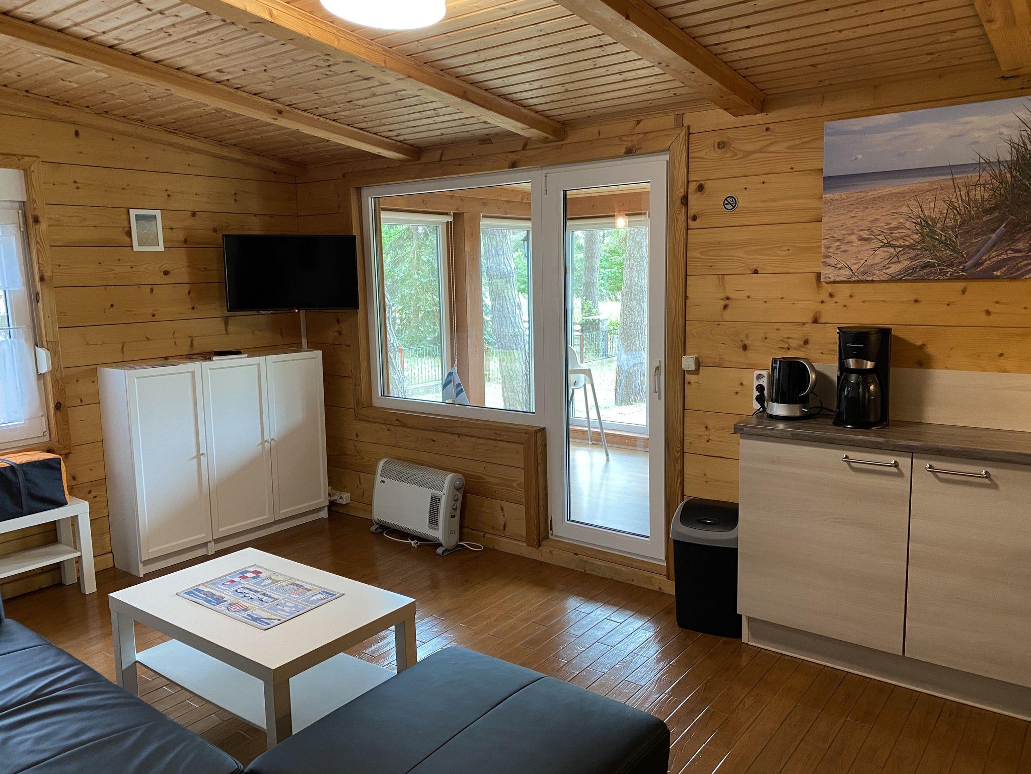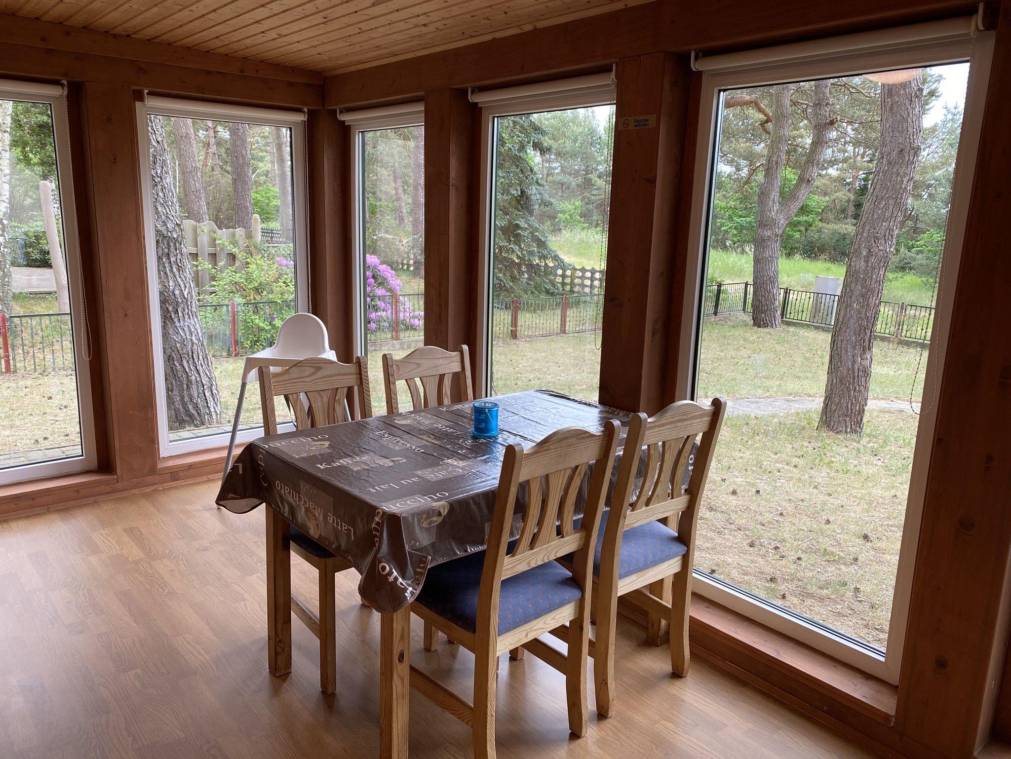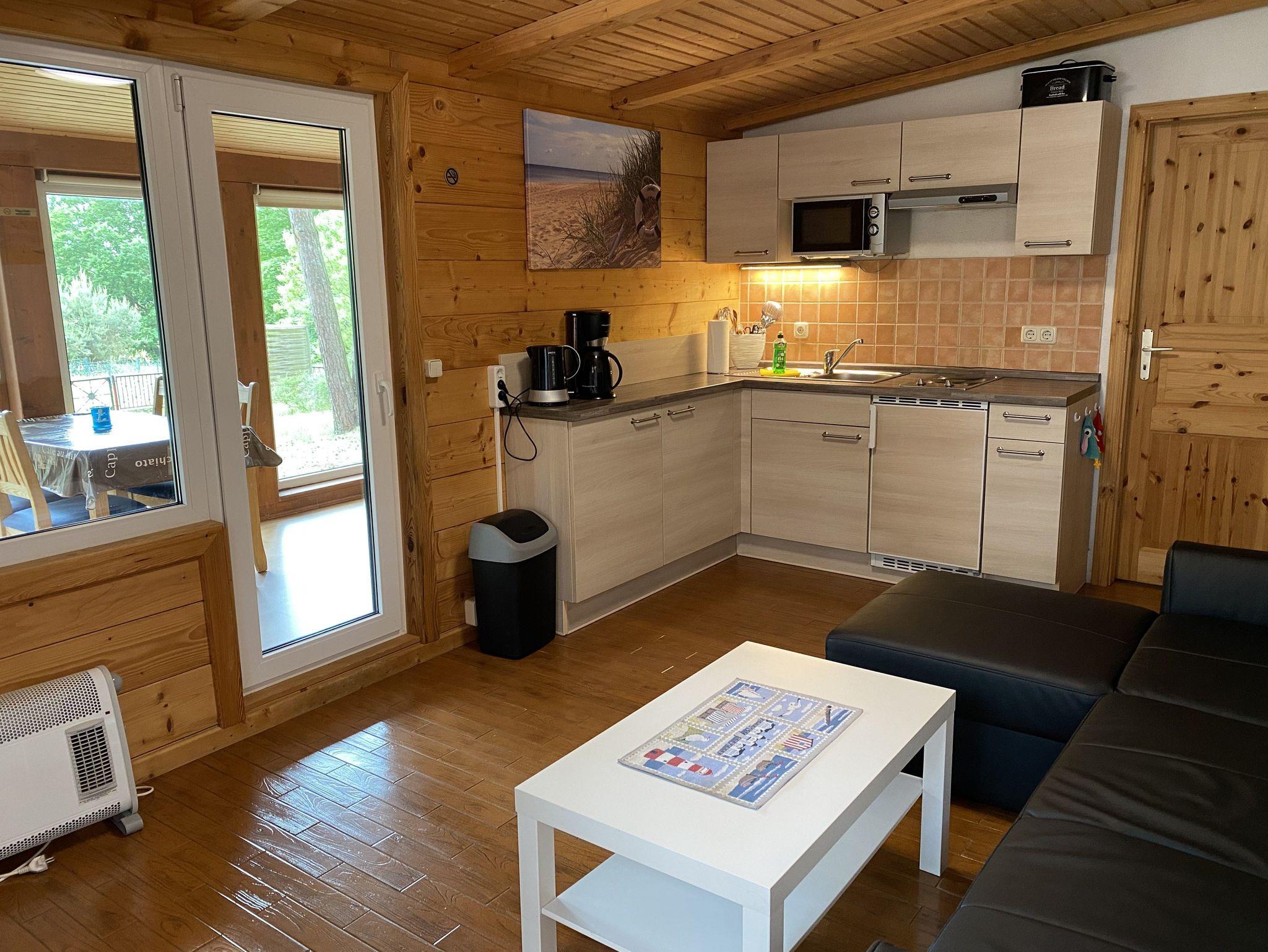 Das 50 qm große Ferienhaus ist modern eingerichtet. Es ist alles vorhanden, um Ihren individuellen Urlaub zu genießen. Das Haus verfügt über eine Wohnküche- mit Eckcouch, eine moderne Küchenzeile mit Mikrowelle, 2 Platten Kochfeld, Kühlschrank Wasserkocher, Toaster und Kaffeemaschine. Im Elternschlafzimmer befindet sich ein Doppelbett (1,60 x 2,00m) und im Kinderschlafzimmer ein Doppelstockbett (0,9 x 2 m). Das Badzimmer ist mit Dusche und WC ausgestattet. Zum Haus gehören ein Wintergarten und eine überdachte Terrasse. Von der Ferienwohnung Achterwasser haben Sie Blick auf das Achterwasser.