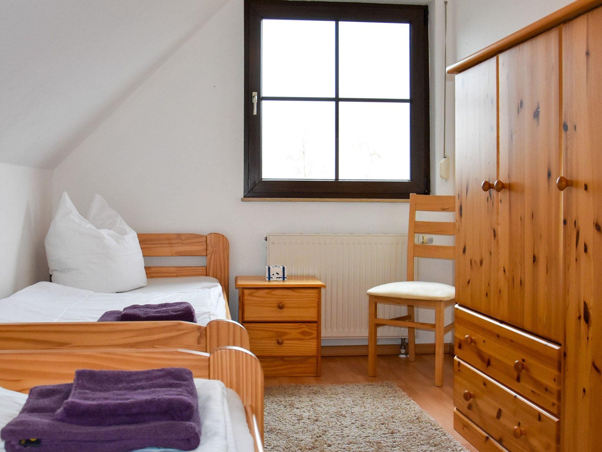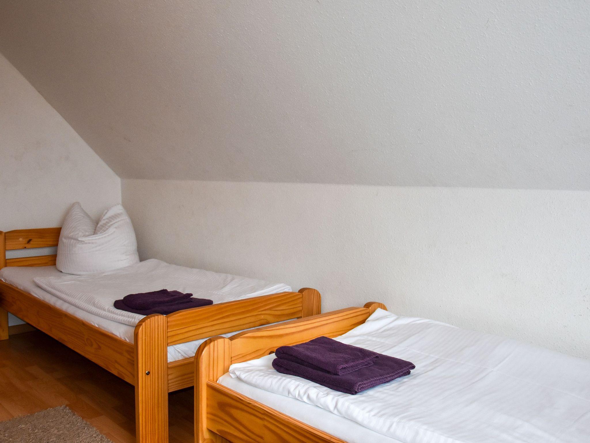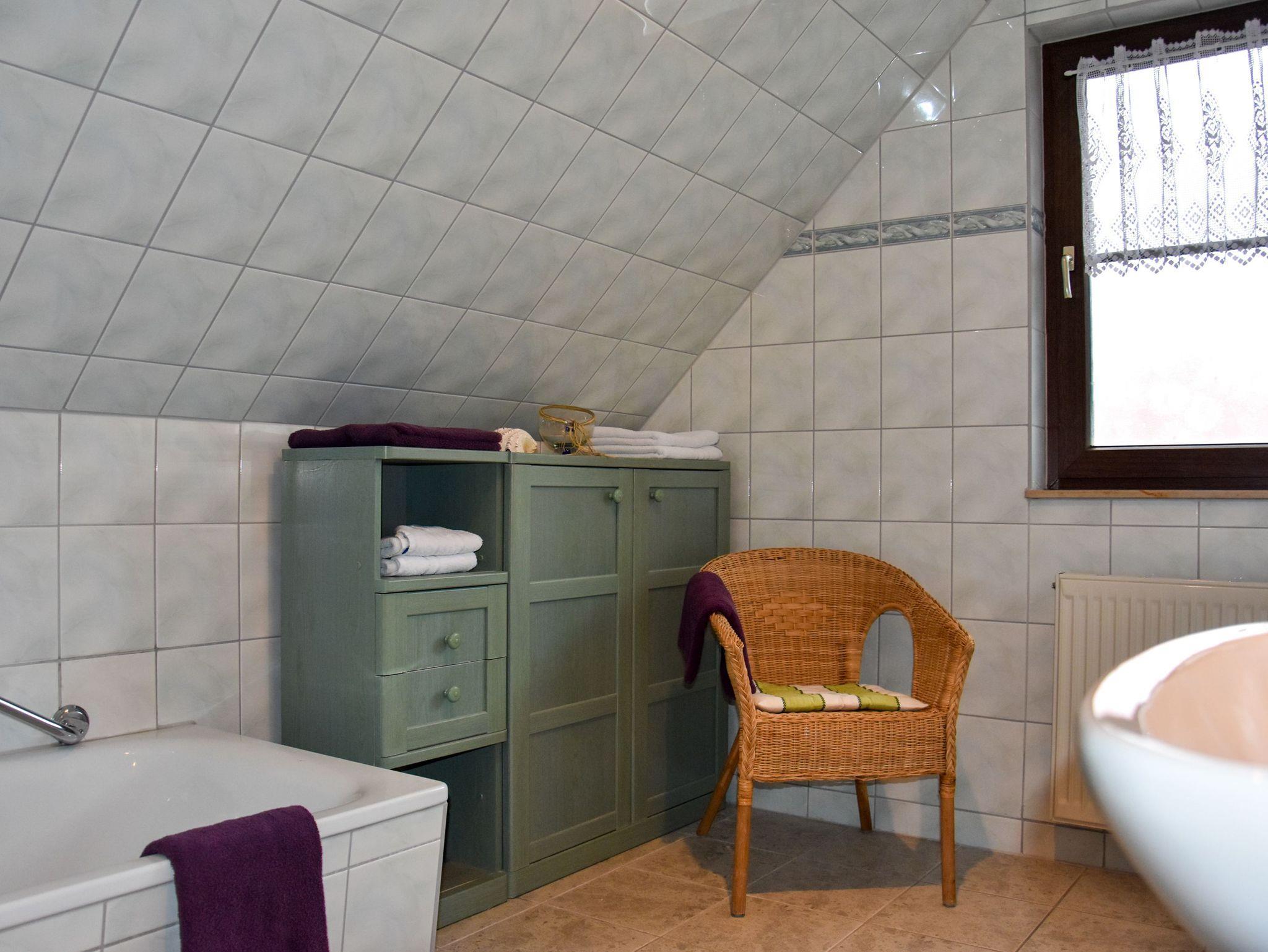 Insgesamt stehen Ihnen zwei Doppelzimmer und zwei Zweibettzimmer zur Verfügung, die alle liebevoll eingerichtet sind. Das Obergeschoss bietet außerdem ein weiteres Badezimmer mit Eckbadewanne und WC sowie eine separate Dusche mit WC.