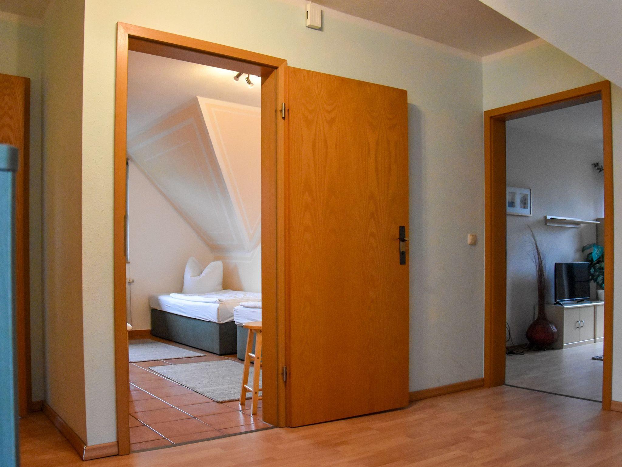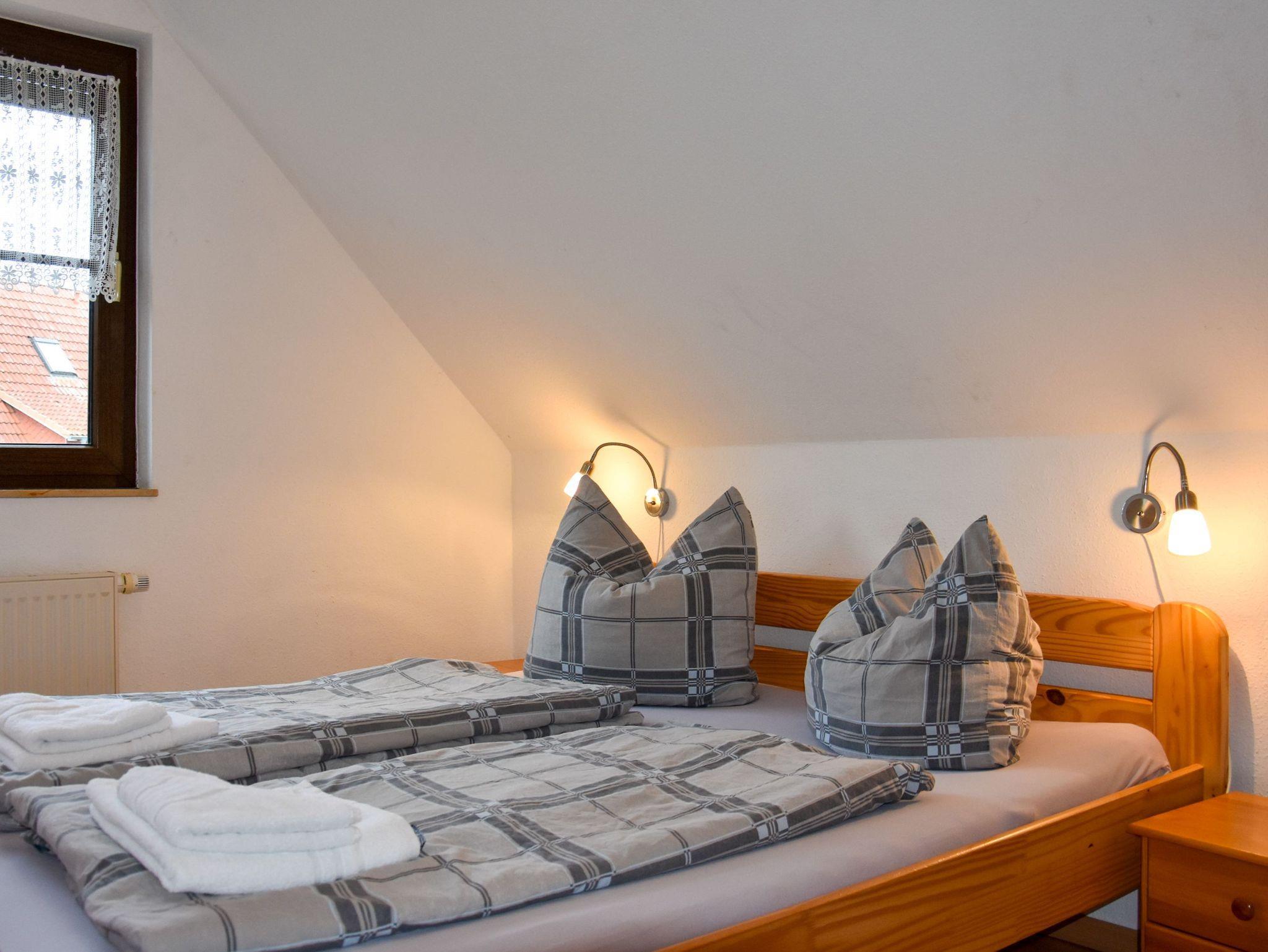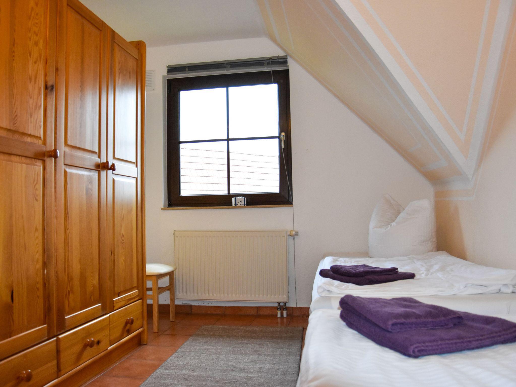 Insgesamt stehen Ihnen zwei Doppelzimmer und zwei Zweibettzimmer zur Verfügung, die alle liebevoll eingerichtet sind. Das Obergeschoss bietet außerdem ein weiteres Badezimmer mit Eckbadewanne und WC sowie eine separate Dusche mit WC.