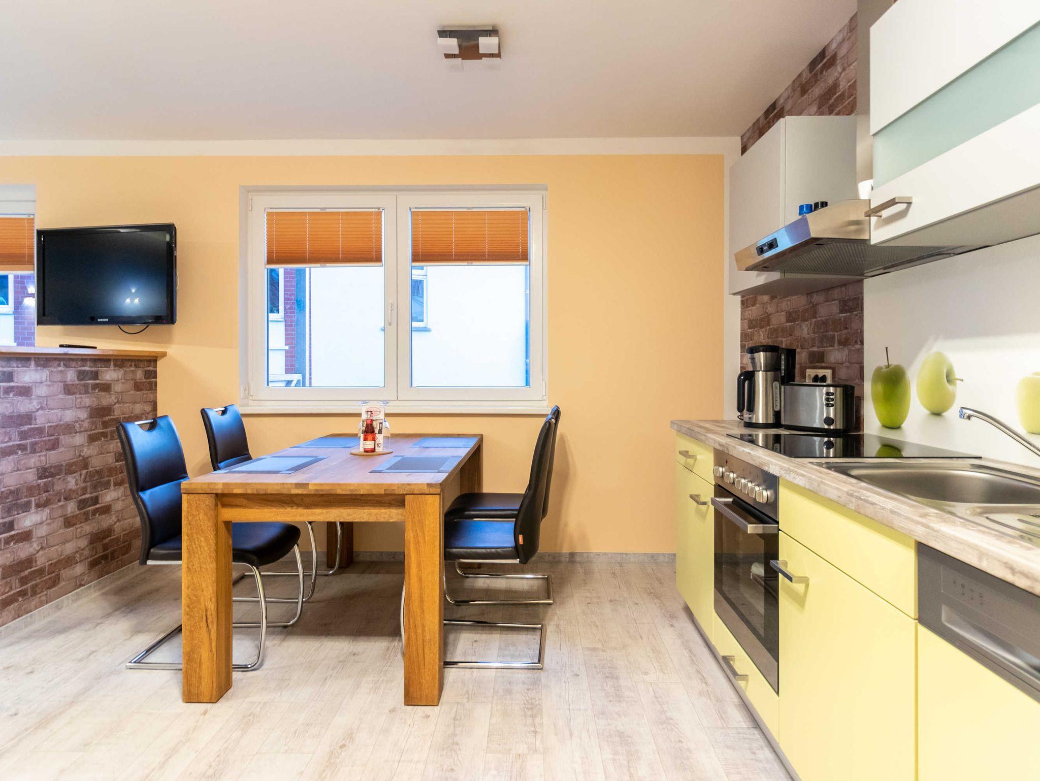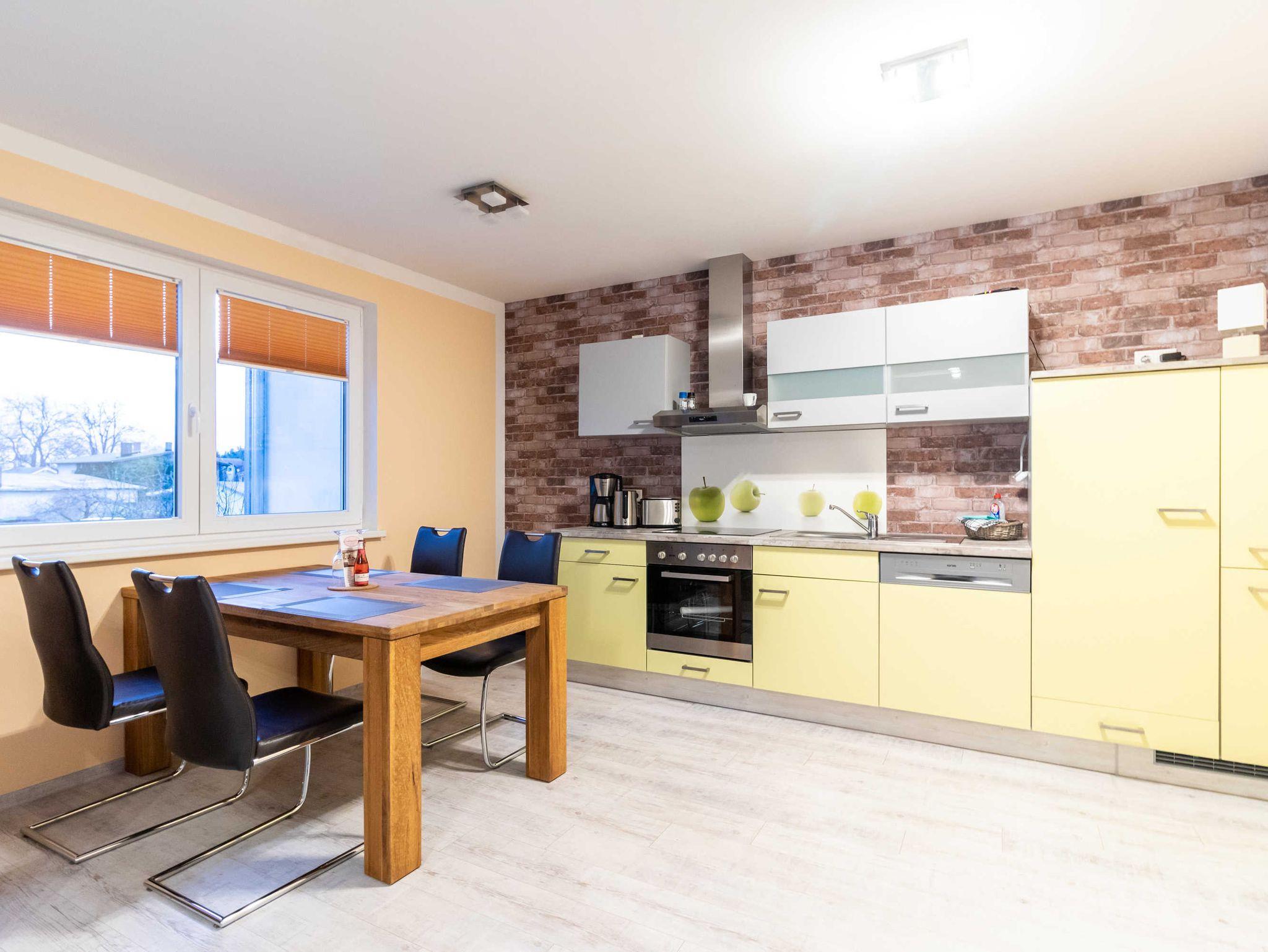 Neue Ferienwohung für 2 Personen, aufgeteilt in Wohn/Schlafzimmerzimmer mit Wohnküche, 1 Schlafzimmer, großem Bad mit Dusche und Flur. Bettwäsche ist im Preis inklusive. 1x Parkplatz kann genutzt werden.