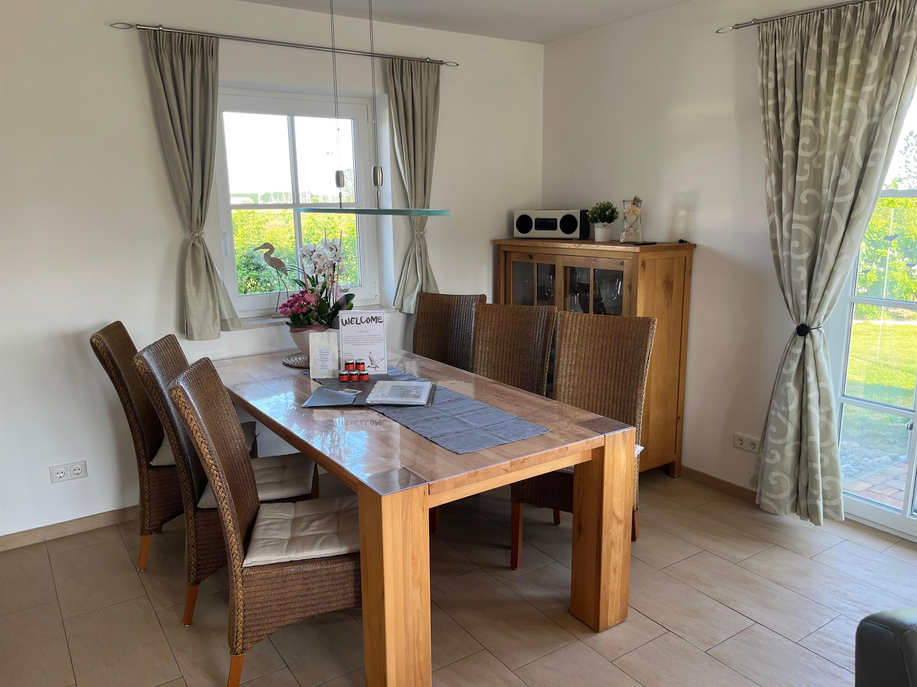 In einem kleinen Reetschuppen können Sie zum Beispiel Ihre Fahrräder unterstellen. Zwei PKW-Stellplätze am Haus sind ebenfalls kostenfrei zu nutzen. Auf der Terrasse können sie mit unserem Weber Elektrogrill schöne Abende verbringen .