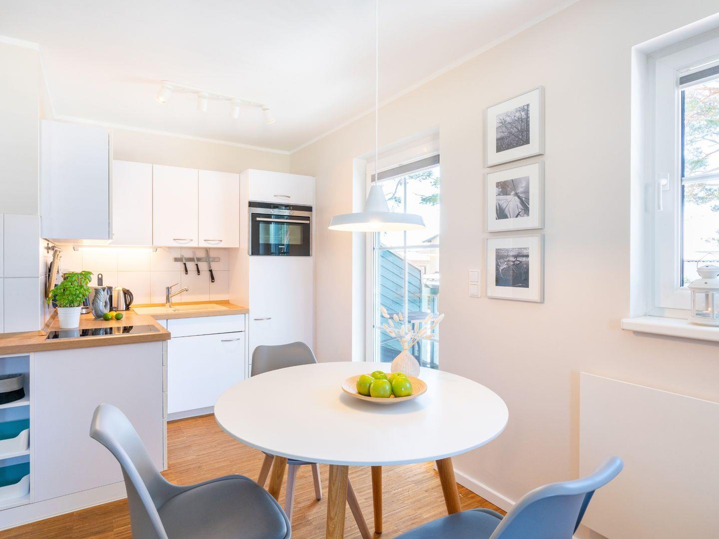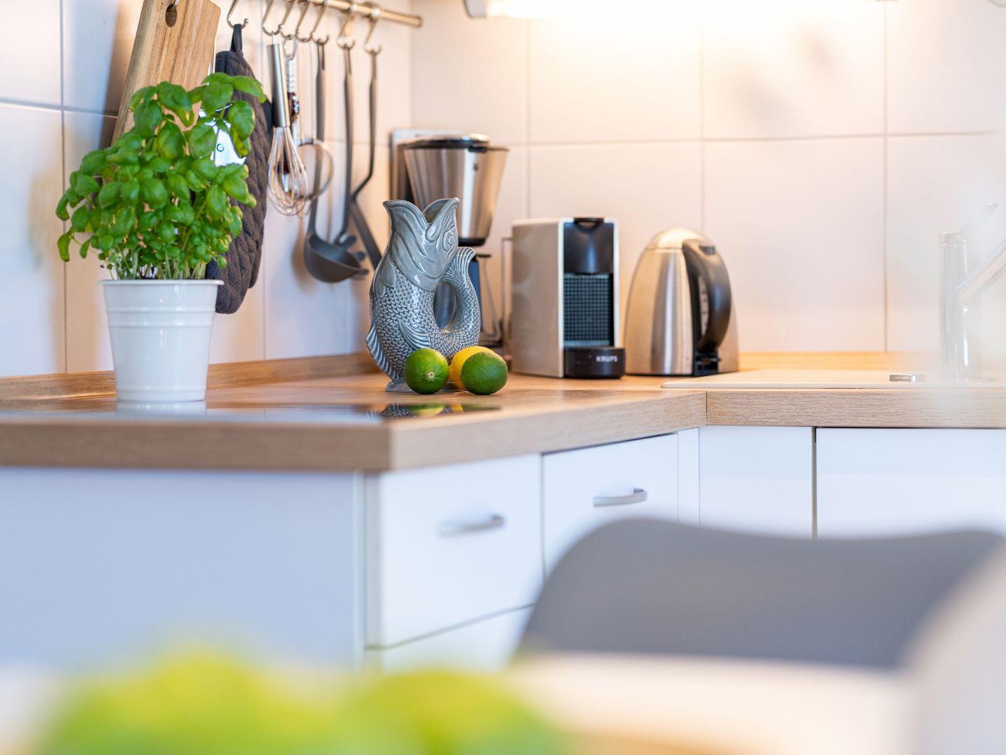Die sonnige und liebevoll im skandinavischen Stil eingerichtete Wohnung ist ideal für zwei Erwachsene. Sie verfügt über einen einladenden Wohnbereich mit offener Küche, die mit hochwertigen Geräten ausgestattet ist, darunter eine Nespressomaschine für den perfekten Kaffeegenuss. Entspannen Sie sich im hellen Wohnbereich oder genießen Sie die Sonne auf dem Südbalkon.