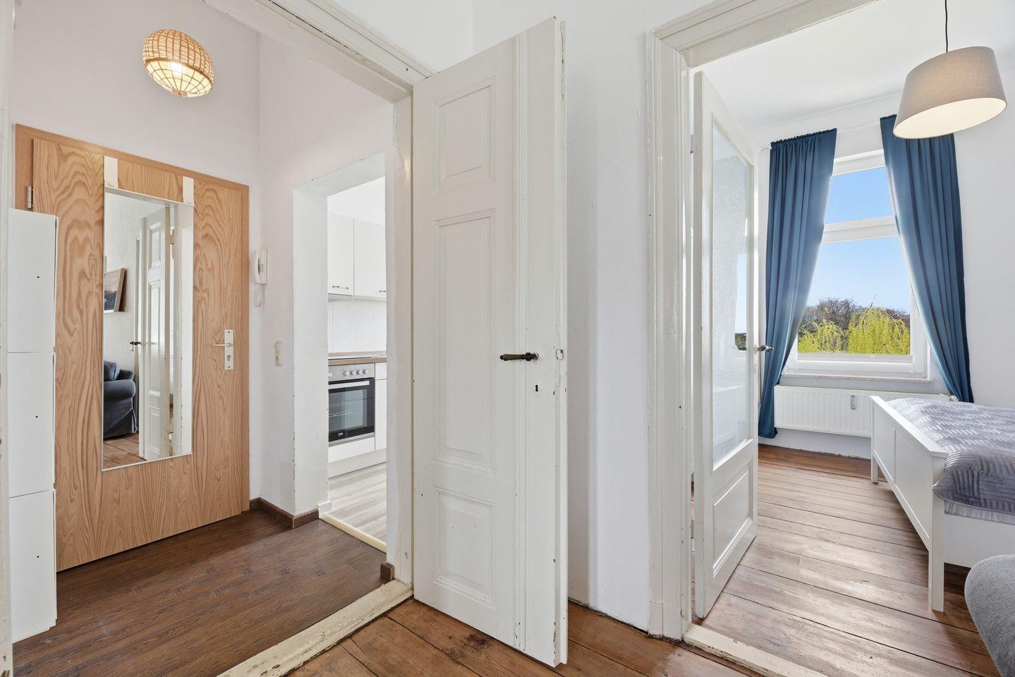 Diese komfortable Ferienwohnung in der 1. Etage erstreckt sich über großzügige 67 m² und bietet alles, was Sie für einen entspannten Urlaub benötigen. Mit einem einladenden Wohnzimmer, einem gemütlichen Schlafzimmer, einem separaten Zimmer mit zwei Einzelbetten, einer voll ausgestatteten Küche und einem modernen Badezimmer mit Dusche und WC ist die Ferienwohnung "Fregatte" der ideale Rückzugsort.