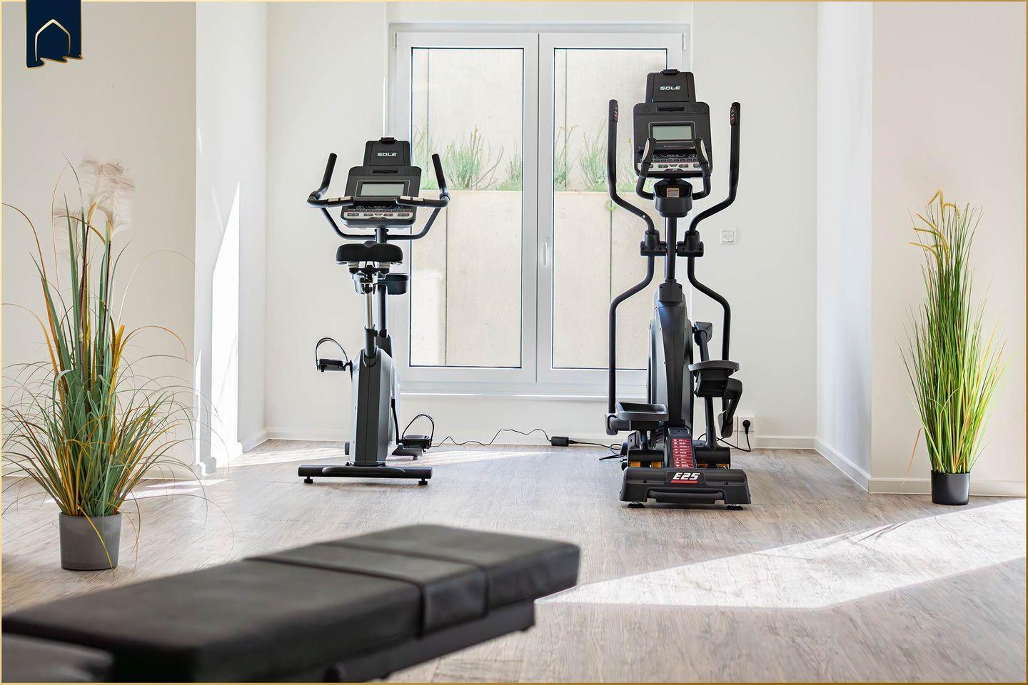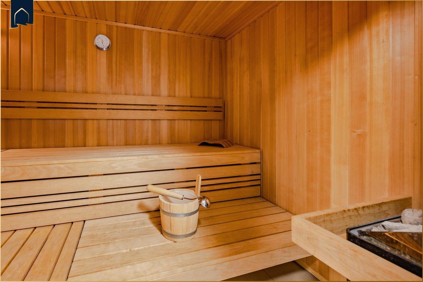 Die voll ausgestattete Küche verfügt über alles, was Sie für die Zubereitung Ihrer Lieblingsgerichte benötigen: Backofen, Herd, Mikrowelle, Kühlschrank mit Gefrierfach, Spülmaschine, Kaffeemaschine, Espressomaschine, Wasserkocher, Mixer und sogar einen Sandwich-Toaster. Der angrenzende Essbereich mit stilvollem Tisch lädt zu gemeinsamen Mahlzeiten ein. Für Wellnessfans steht eine Sauna zur Verfügung, die Sie nach einem aktiven Tag an der frischen Luft nutzen können. Auch Fitnessliebhaber kommen dank des hauseigenen Fitnessraums auf ihre Kosten.