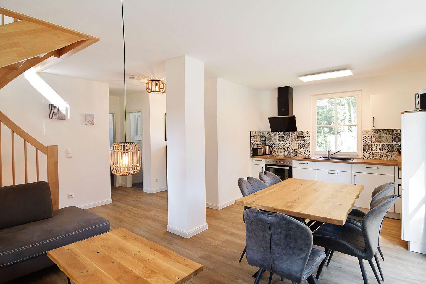 Der großzügig kombinierte Wohn- und Essbereich führt Sie direkt zur Terrasse mit Süd-/Westlage, auf der Sie die Sonnenstunden Usedoms genießen können.