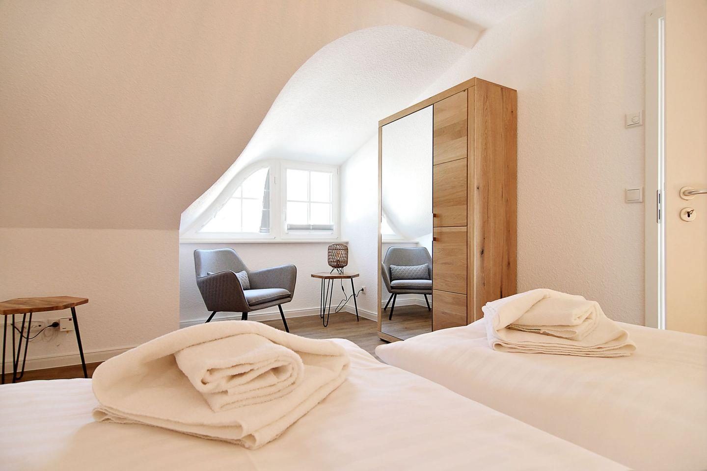 Die Doppelhaushälfte "Sandregenpfeifer" erstreckt sich über zwei Etagen. Es ist nicht nur modern und freundlich eingerichtet sondern bietet auch Schutz vor Mücken und das an allen Fenstern.
