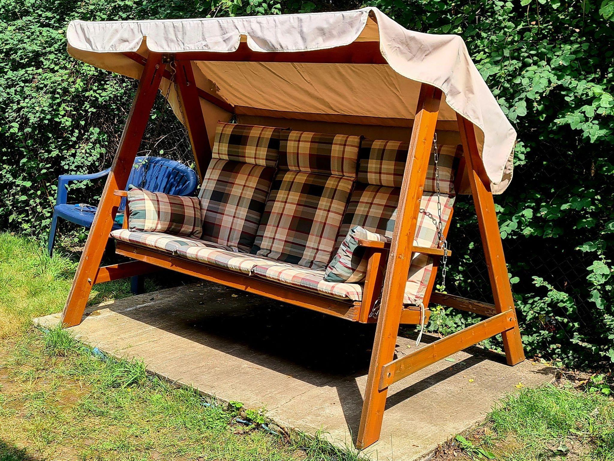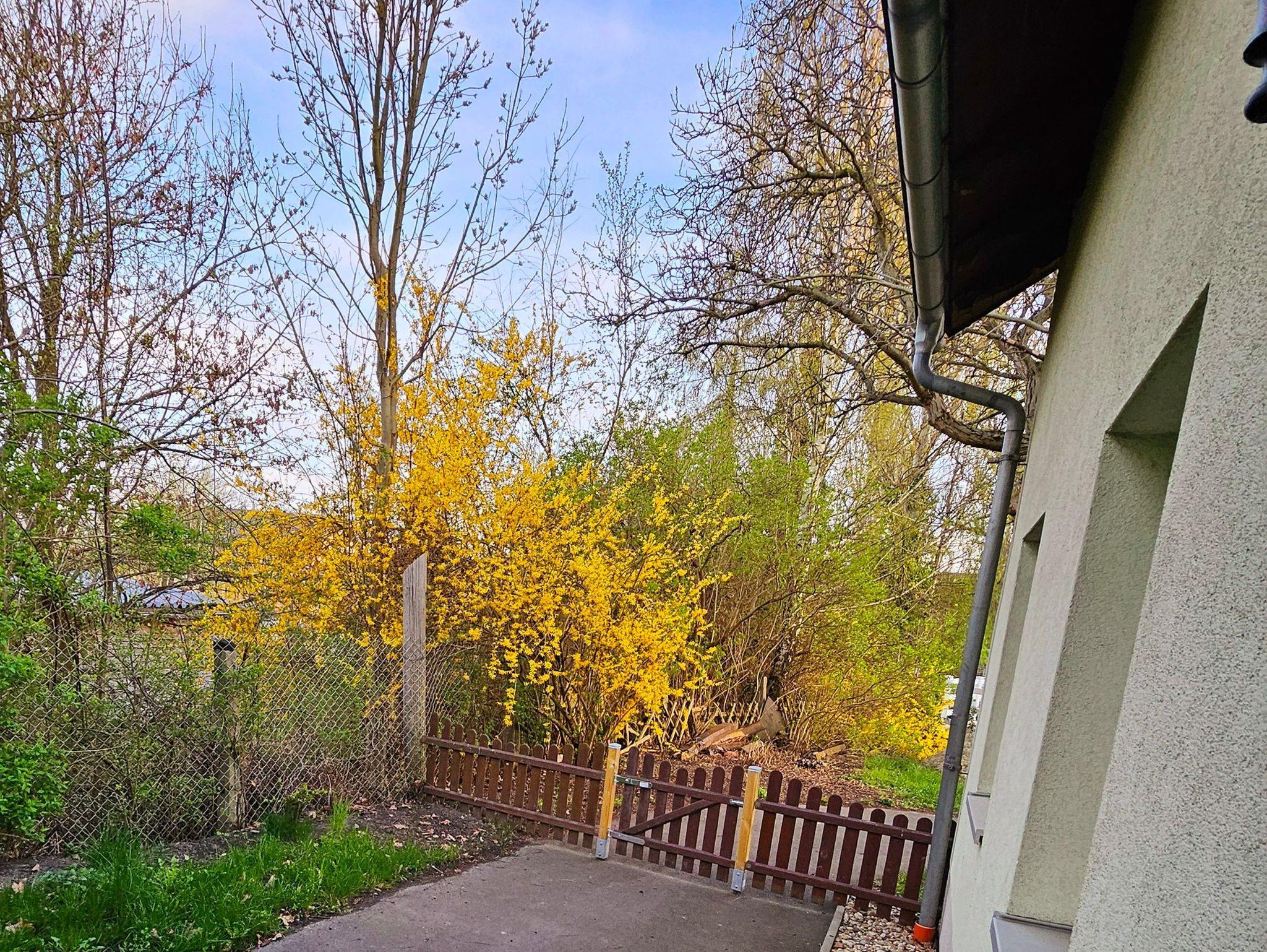Ein kleines Gärtchen mit Grill, Hollywoodschaukel, Sitzecke und Wäschespinne gehören ebenfalls dazu.
