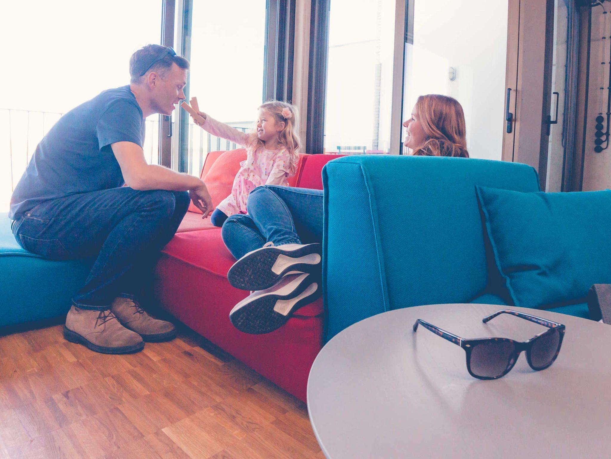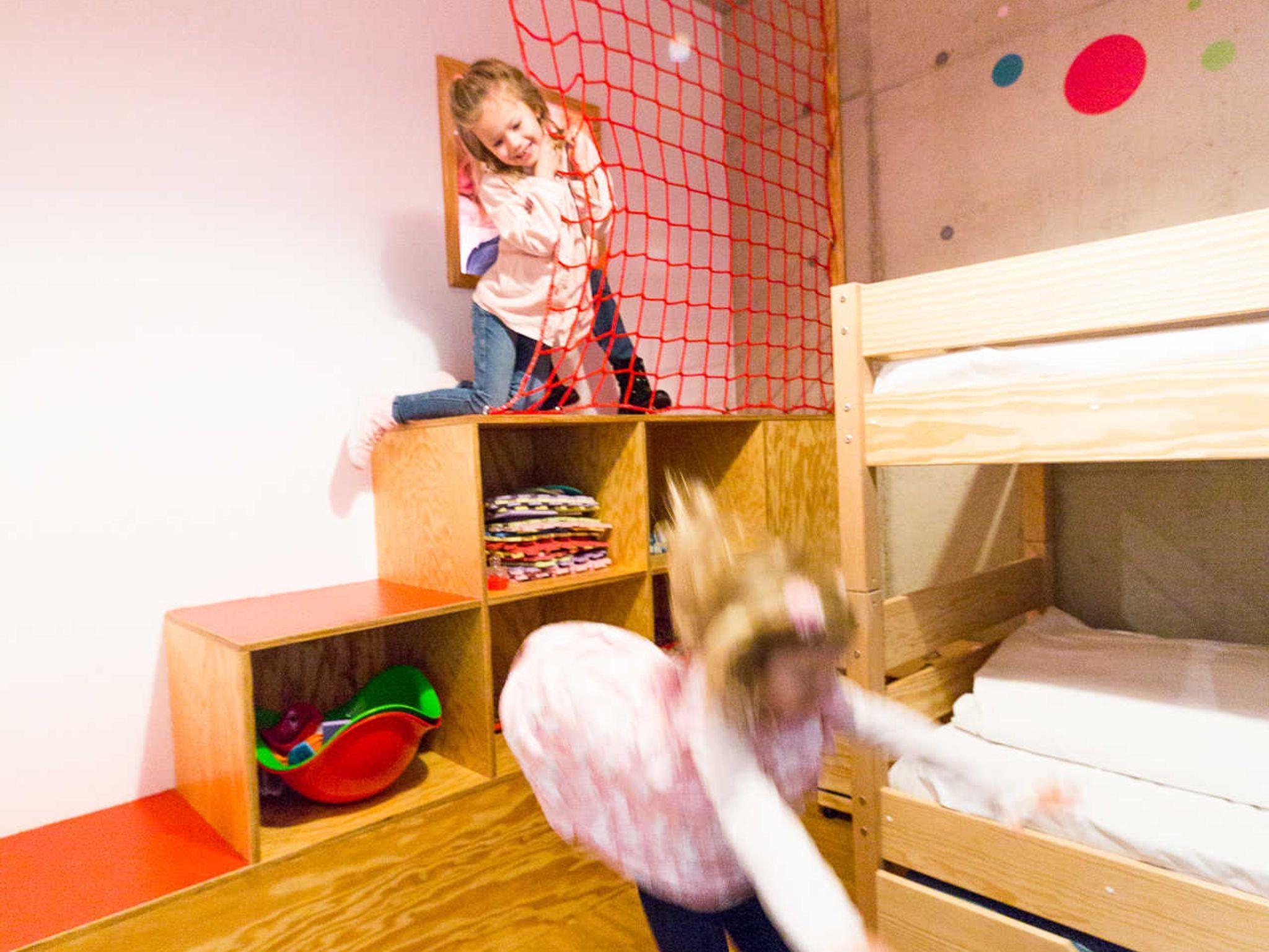 Knallige Farben, Geheimgang und Spielkammer machen die Spielerischen zum idealen Hafendomizil für Familien. Mit Blick auf Hafen und See lässt sich im offenen Wohnraum nicht nur Kochen und Essen, sondern auch Faulenzen und im Fall der Fälle kann hier für zwei weitere Personen aufgebettet werden (140er Wandklappbett). Im Elternzimmer schläft es sich komfortabel im 160er Doppelbett, während das Kinderzimmer mit einem Stockbett aufwartet – dank Auszug notfalls auch für drei! Selbstverständlich gibt es auch in den Spielerischen einen Balkon.