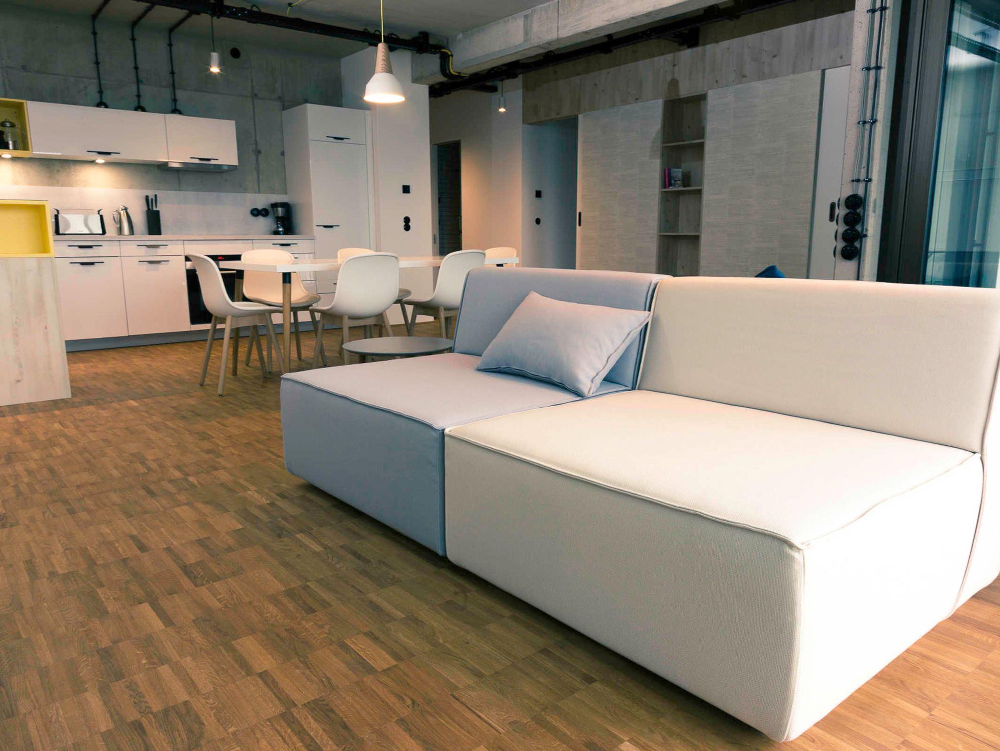 Sehr großzügige und saubere Räume, eine gut bestückte Küche(Gläser, Geschirr),Abtropfmöglichkeit neben der Spühle wäre nicht schlecht und das Sofa ist etwas unbequem. Wlan war sehr schlecht man konnte sich manchmal garnicht einloggen oder hatte Verbindungsabbruch.