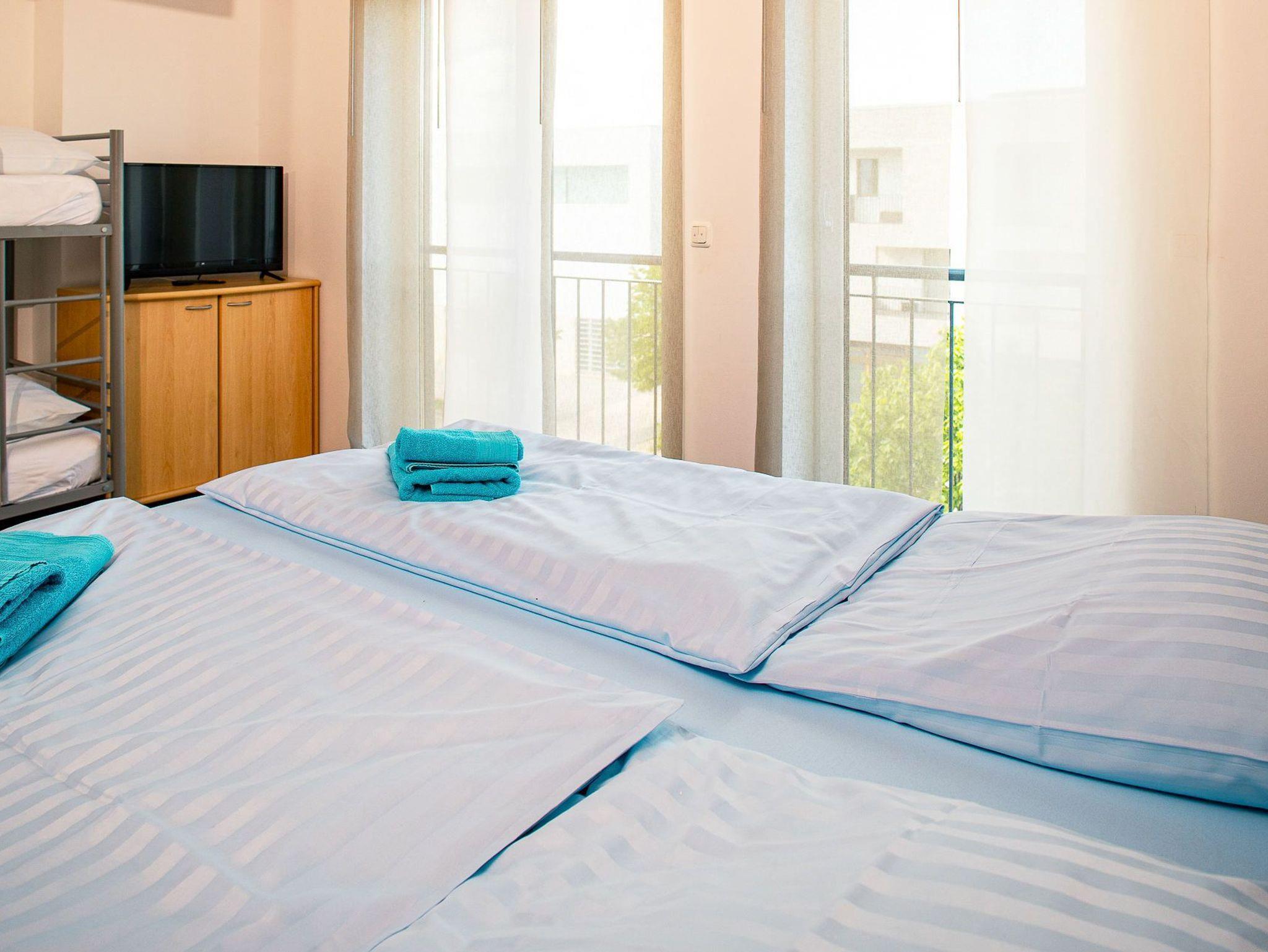 Wohneinheit ist mit 3 Doppelbetten ausgestattet. Eine Aufbettung auf max. 8 Personen ist gegen Aufpreis