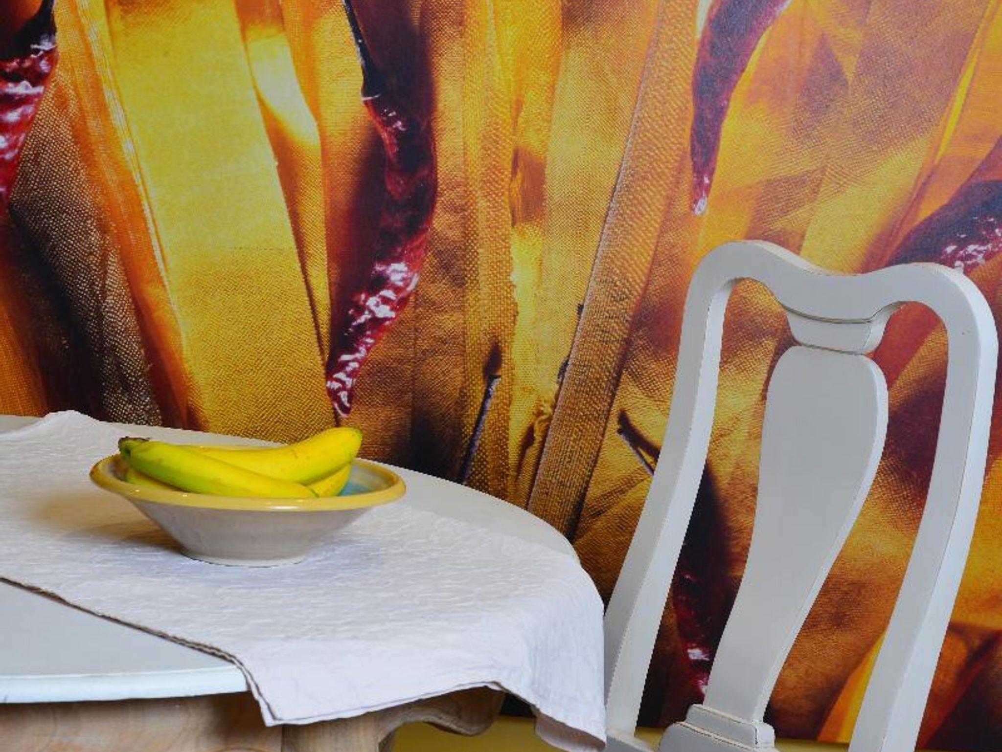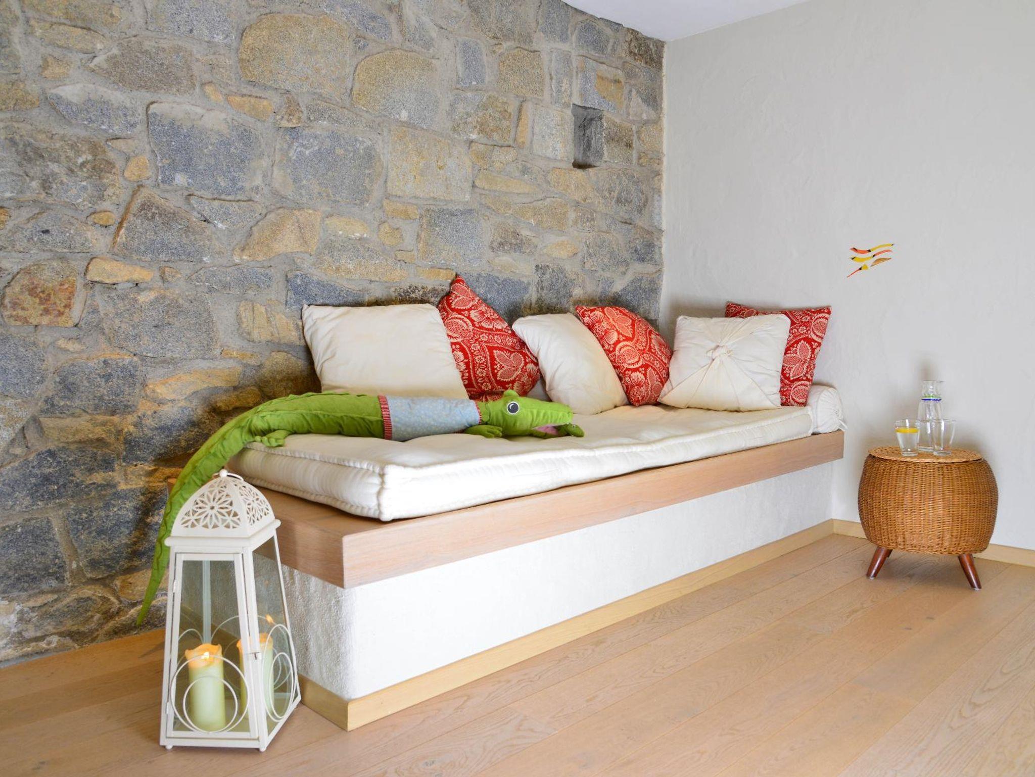 Wänden und hochwertigen Vollholzmöbeln. Die Ferienwohnung verfügt über