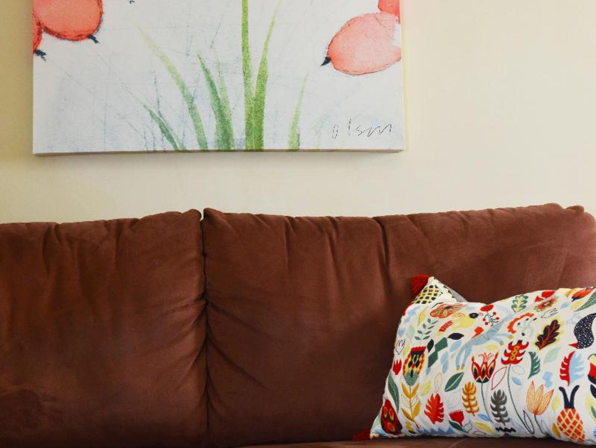 Wohnzimmer befindet sich eine gemütliche Sofaecke, Radio und ein