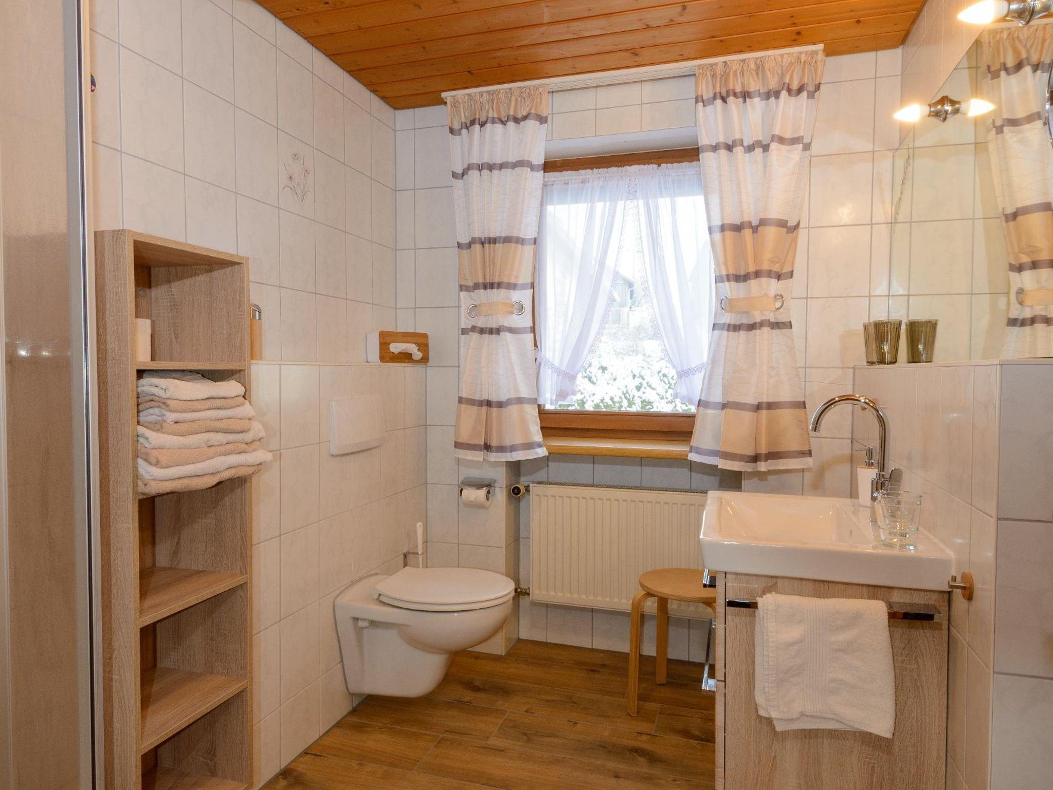 Das Badezimmer ist mit Rainshower-Dusche und WC ausgestattet. Hand- und Badetücher stellen wir Ihnen selbstverständlich zur Verfügung.