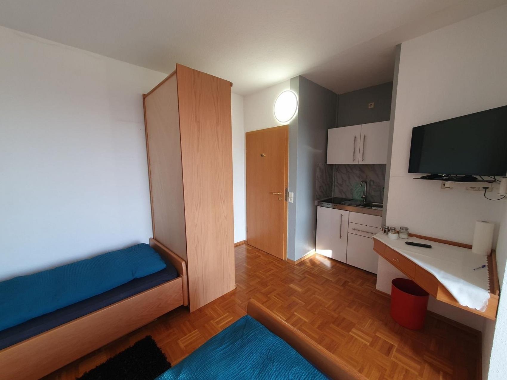 Bis zu 44 Personen buchbar! Exklusives eigenes Premium-Apartment mit Balkon und schöner Aussicht auf die Berge und Burg; zwei Einzelbetten, voll möbliert mit eigenem Bad, eigener Miniküche (Kühlschrank, Doppelherd, Spüle, Besteck, Teller, Tassen, Wasserkoscher...) und TV.Kontaktloser Zugang (ohne Personen) über zwei Codes: Sie erhalten je ein Code für den Hauseingang und einen Code für den Zugang zum Apartment.Sie können auch mehrere Apartments anmieten... bis zu 42 Personen.Zwingenberg hohe Lebensqualität, starke Betriebe und ideale Voraussetzungen spricht für unternehmerisches Wachstum in der Wirtschaftsregion Bergstraße: Die älteste südhessische Bergstraßen-Kommune profitiert von ihrer zentralen Lage inmitten der Metropolregionen Frankfurt/Rhein-Main und Rhein-Neckar. Von Zwingenberg aus gelangt man schnell an sein Ziel! An die Autobahn A5 besteht eine direkte Anbindung, aber auch die A67 und die Bundesstraßen B3, B47 und B460 sind schnell erreichbar. Besonders die Nähe zum Flughafen Frankfurt ist ein unschlagbarer Standortvorteil.Auch leben lässt es sich hier ganz ausgezeichnet: Die historische Altstadt mit zahlreichen Fachwerkhäusern und malerischen Ausblicken macht die Zwingenberg zu einem sehr beliebten Wohnstandort.Der Standort Zwingenberg ist von folgenden Orten entfernt:vom Hauptbahnhof Darmstadt nur 18 Min. (22 km)vom Frankfurter Flughafen ca. 29 Min. (44 km)von Heidelberg knappe 32 Min; (42 km) vom Mannheim 39 km (41 km)