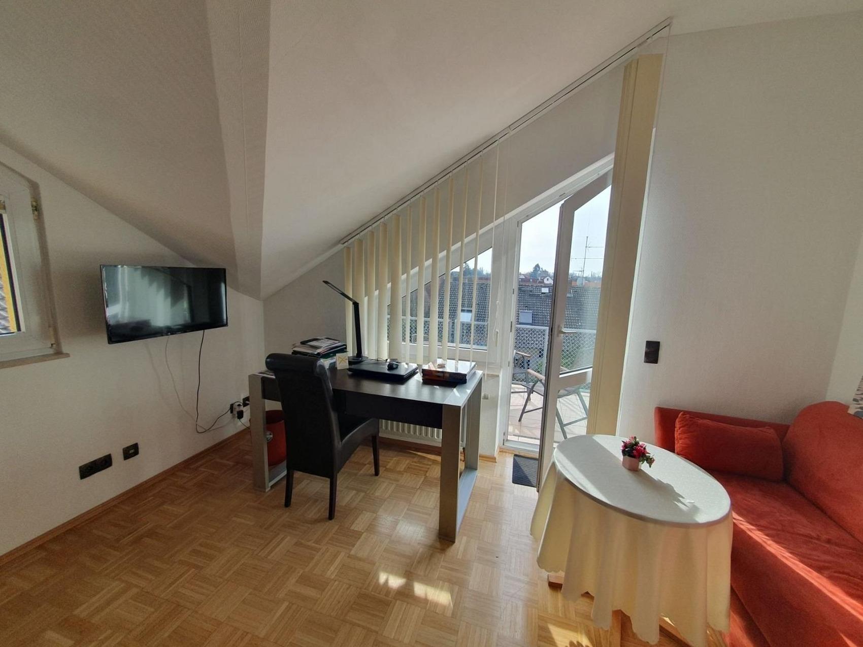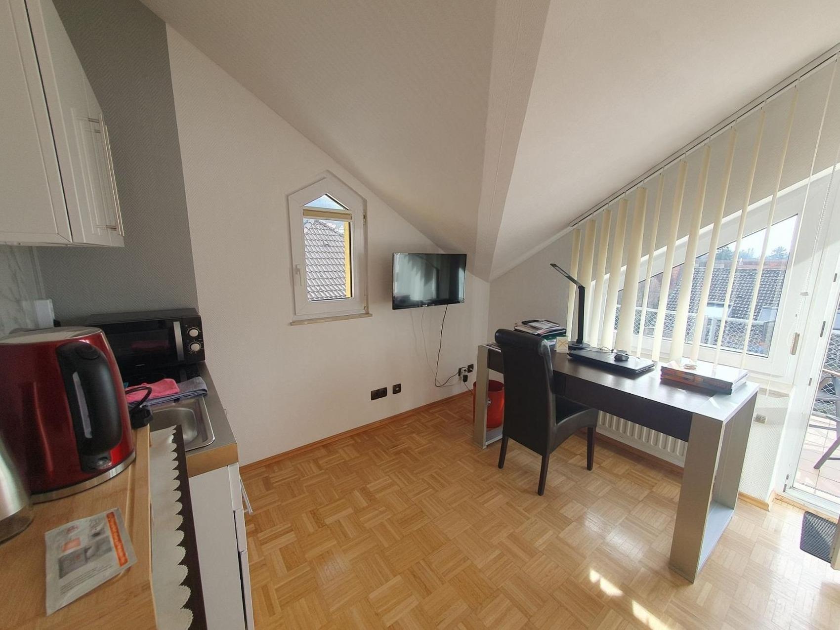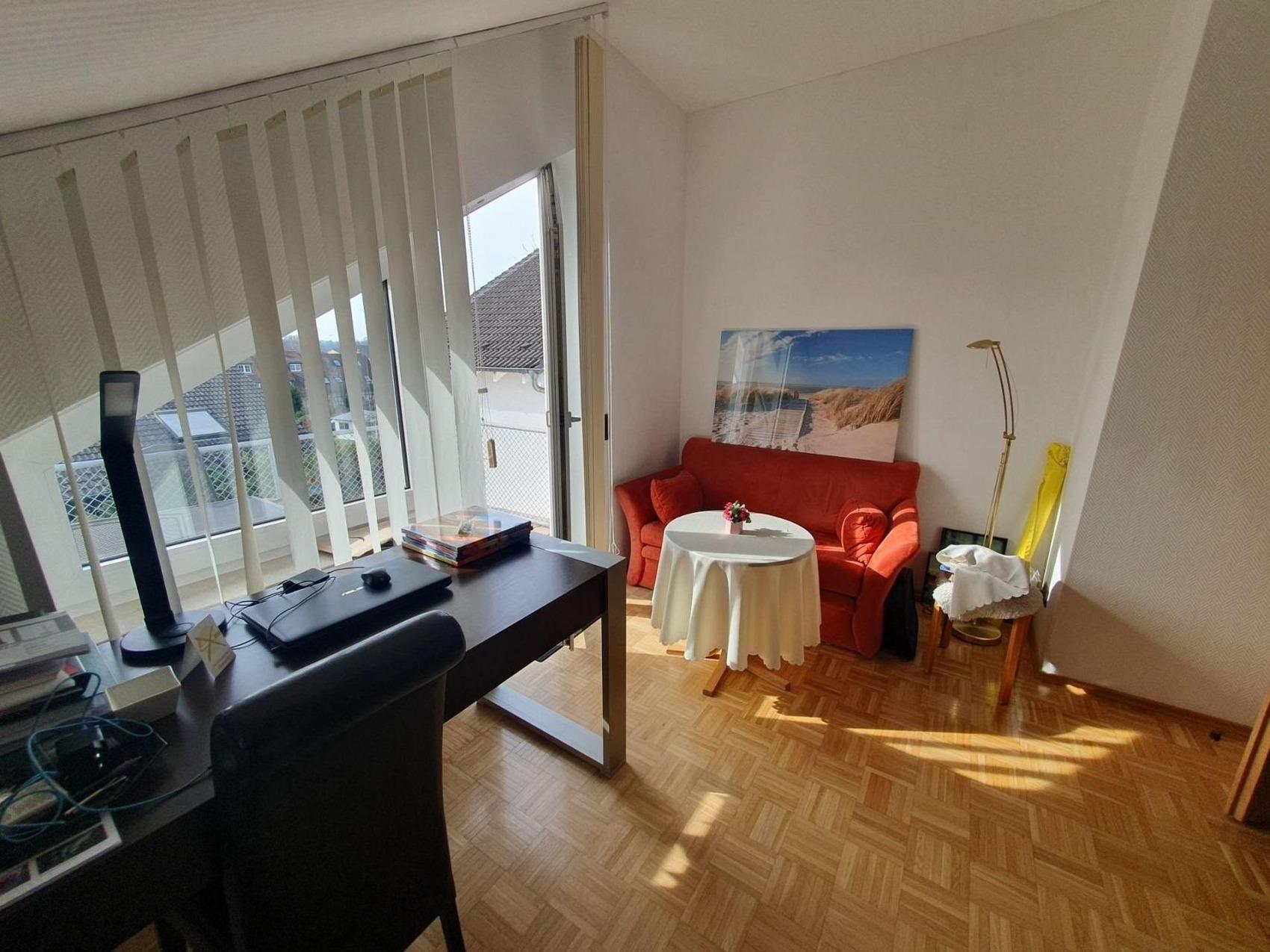 Bis zu 44 Personen buchbar! Sonnige, exklusive, eigene premium-2-Zimmer-Wohnung mit einer eigenen schönen Süd-Terrasse mit schönem Ausblich auf das Schloss und die Bergstraße (schönste Wohnung im Haus!) einem Doppelbett und einer Schlafcouch im 2. Zimmer, voll möbliert mit eigenem Bad, eigener Miniküche (Kühlschrank, Doppelherd, Spüle, Besteck, Teller, Tassen, Wasserkoscher...) und TV.Kontaktloser Zugang (ohne Personen) über zwei Codes: Sie erhalten je ein Code für den Hauseingang und einen Code für den Zugang zum Apartment.Sie können auch mehrere Apartments anmieten... bis zu 42 PersonenZwingenberg hohe Lebensqualität, starke Betriebe und ideale Voraussetzungen spricht für unternehmerisches Wachstum in der Wirtschaftsregion Bergstraße: Die älteste südhessische Bergstraßen-Kommune profitiert von ihrer zentralen Lage inmitten der Metropolregionen Frankfurt/Rhein-Main und Rhein-Neckar. Von Zwingenberg aus gelangt man schnell an sein Ziel! An die Autobahn A5 besteht eine direkte Anbindung, aber auch die A67 und die Bundesstraßen B3, B47 und B460 sind schnell erreichbar. Besonders die Nähe zum Flughafen Frankfurt ist ein unschlagbarer Standortvorteil.Auch leben lässt es sich hier ganz ausgezeichnet: Die historische Altstadt mit zahlreichen Fachwerkhäusern und malerischen Ausblicken macht die Zwingenberg zu einem sehr beliebten Wohnstandort.Der Standort Zwingenberg ist von folgenden Orten entfernt:vom Hauptbahnhof Darmstadt nur 18 Min. (22 km)vom Frankfurter Flughafen ca. 29 Min. (44 km)von Heidelberg knappe 32 Min; (42 km) vom Mannheim 39 km (41 km)