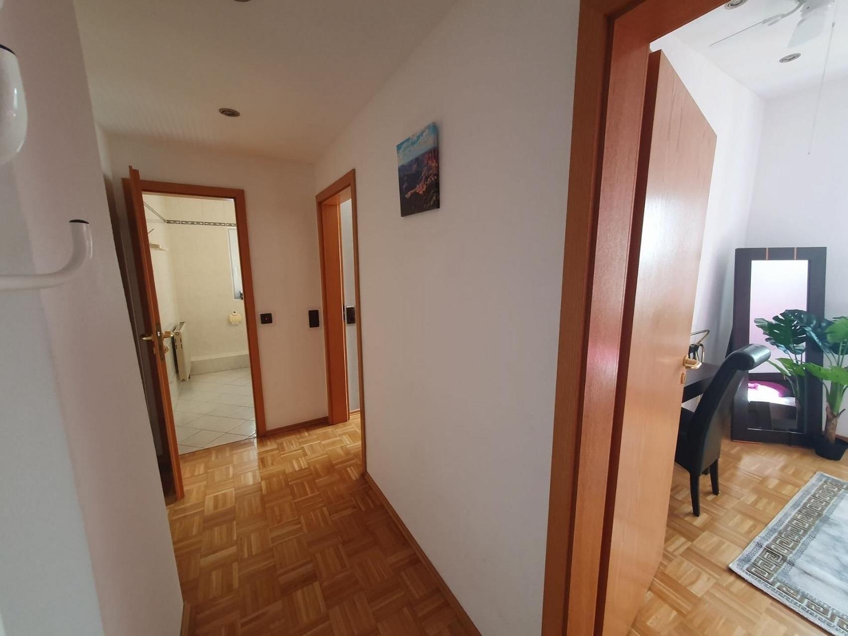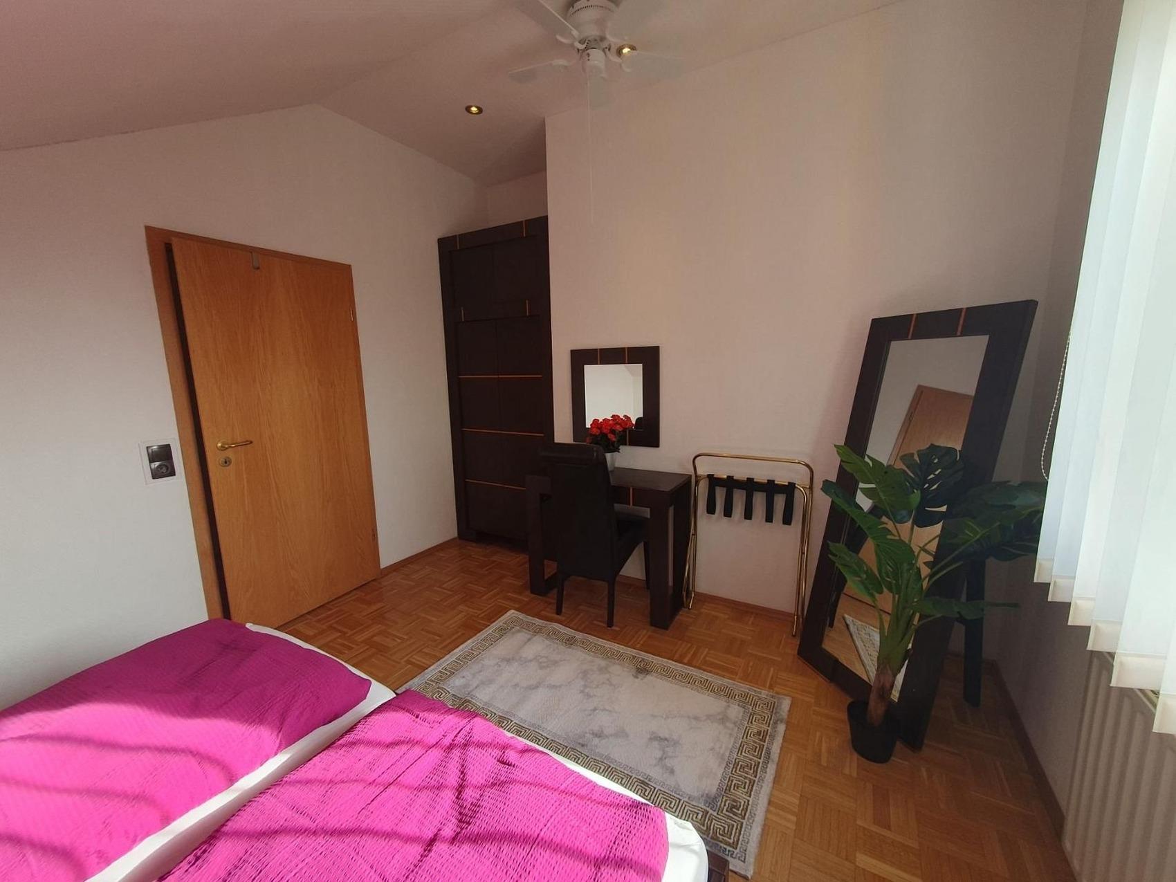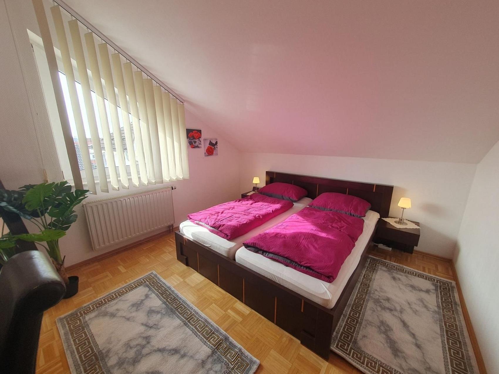 Bis zu 44 Personen buchbar! Sonnige, exklusive, eigene premium-2-Zimmer-Wohnung mit einer eigenen schönen Süd-Terrasse mit schönem Ausblich auf das Schloss und die Bergstraße (schönste Wohnung im Haus!) einem Doppelbett und einer Schlafcouch im 2. Zimmer, voll möbliert mit eigenem Bad, eigener Miniküche (Kühlschrank, Doppelherd, Spüle, Besteck, Teller, Tassen, Wasserkoscher...) und TV.Kontaktloser Zugang (ohne Personen) über zwei Codes: Sie erhalten je ein Code für den Hauseingang und einen Code für den Zugang zum Apartment.Sie können auch mehrere Apartments anmieten... bis zu 42 PersonenZwingenberg hohe Lebensqualität, starke Betriebe und ideale Voraussetzungen spricht für unternehmerisches Wachstum in der Wirtschaftsregion Bergstraße: Die älteste südhessische Bergstraßen-Kommune profitiert von ihrer zentralen Lage inmitten der Metropolregionen Frankfurt/Rhein-Main und Rhein-Neckar. Von Zwingenberg aus gelangt man schnell an sein Ziel! An die Autobahn A5 besteht eine direkte Anbindung, aber auch die A67 und die Bundesstraßen B3, B47 und B460 sind schnell erreichbar. Besonders die Nähe zum Flughafen Frankfurt ist ein unschlagbarer Standortvorteil.Auch leben lässt es sich hier ganz ausgezeichnet: Die historische Altstadt mit zahlreichen Fachwerkhäusern und malerischen Ausblicken macht die Zwingenberg zu einem sehr beliebten Wohnstandort.Der Standort Zwingenberg ist von folgenden Orten entfernt:vom Hauptbahnhof Darmstadt nur 18 Min. (22 km)vom Frankfurter Flughafen ca. 29 Min. (44 km)von Heidelberg knappe 32 Min; (42 km) vom Mannheim 39 km (41 km)