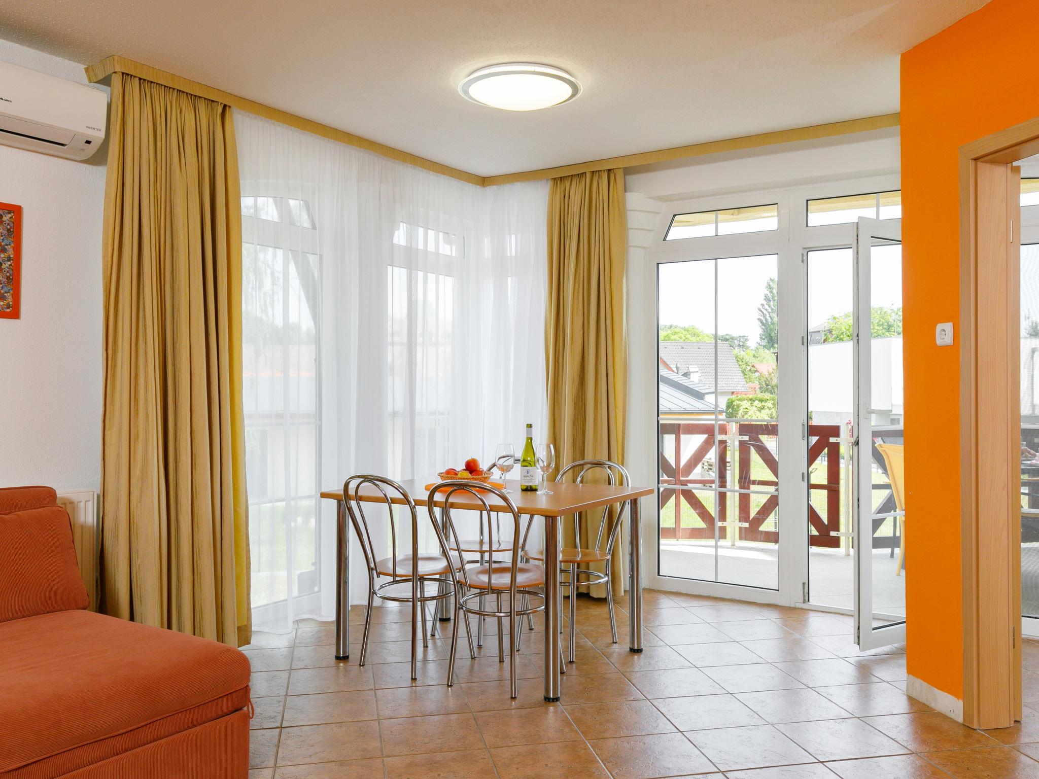 Balatonlelle 39 km from Siófok: Comfortable residence. In the resort, 200 m from the lake, 150 m from the beach, direct access to the beach. For shared use: property (fenced). In the house: WiFi, central heating system, air conditioning. Parking on the premises. Supermarket 250 m, restaurant 190 m, bakery 230 m, café 400 m, bicycle rental 500 m, thermal baths "Igal" 44 km. Marina 900 m, tennis 4 km, riding stable 3 km, cycle lane 50 m, children's playground 700 m. Nearby attractions: Kis-Balaton Visitor Centre 47 km, Aquapark Siófok 41 km, Adventure Park Zamárdi 30 km, Bella Zoo Siófok 43 km, Hévíz Thermal Bath 55 km, Ferry Szántód 21 km. Please note: baby equipment on request (extra). Residence with electric gates.