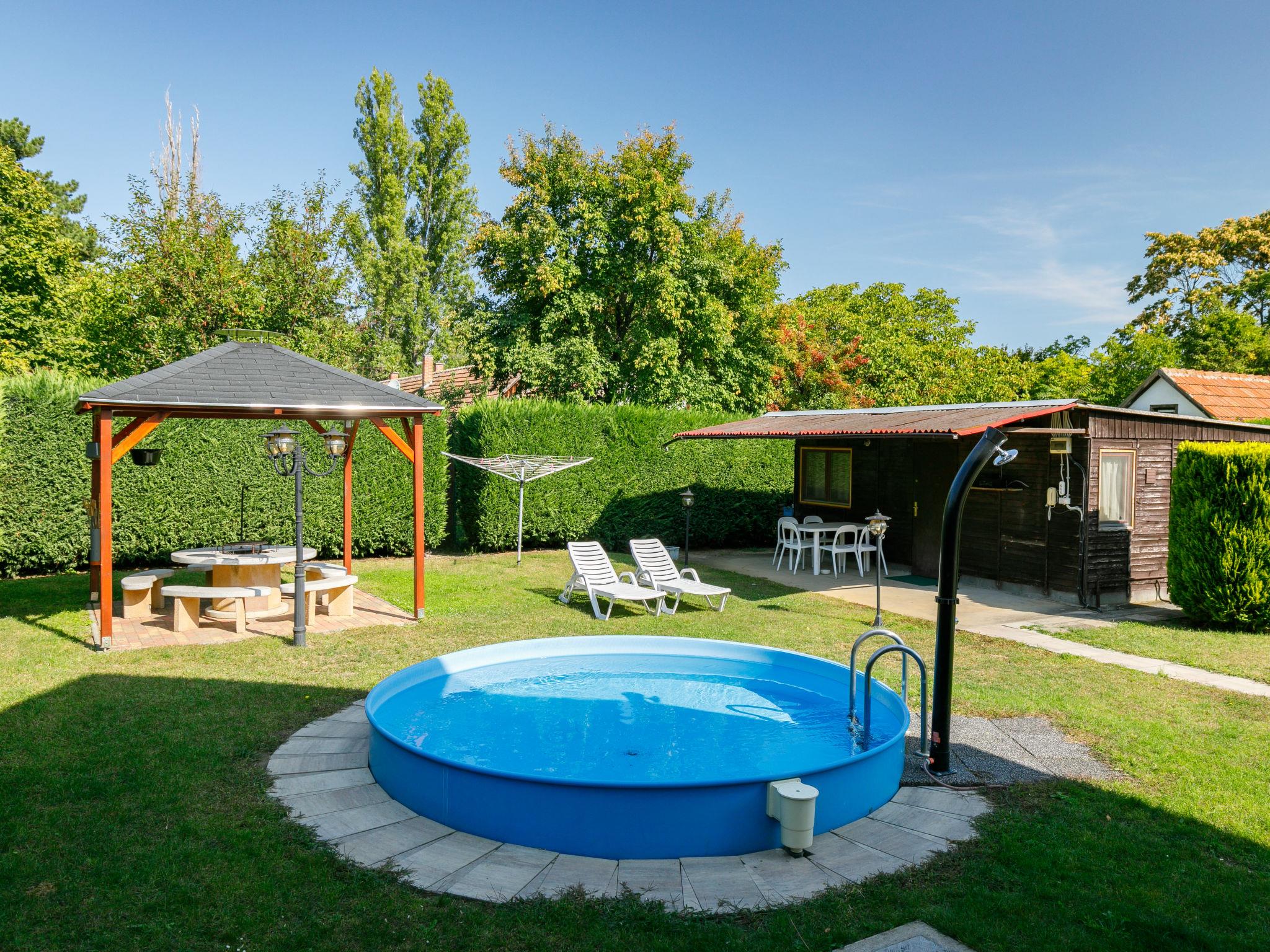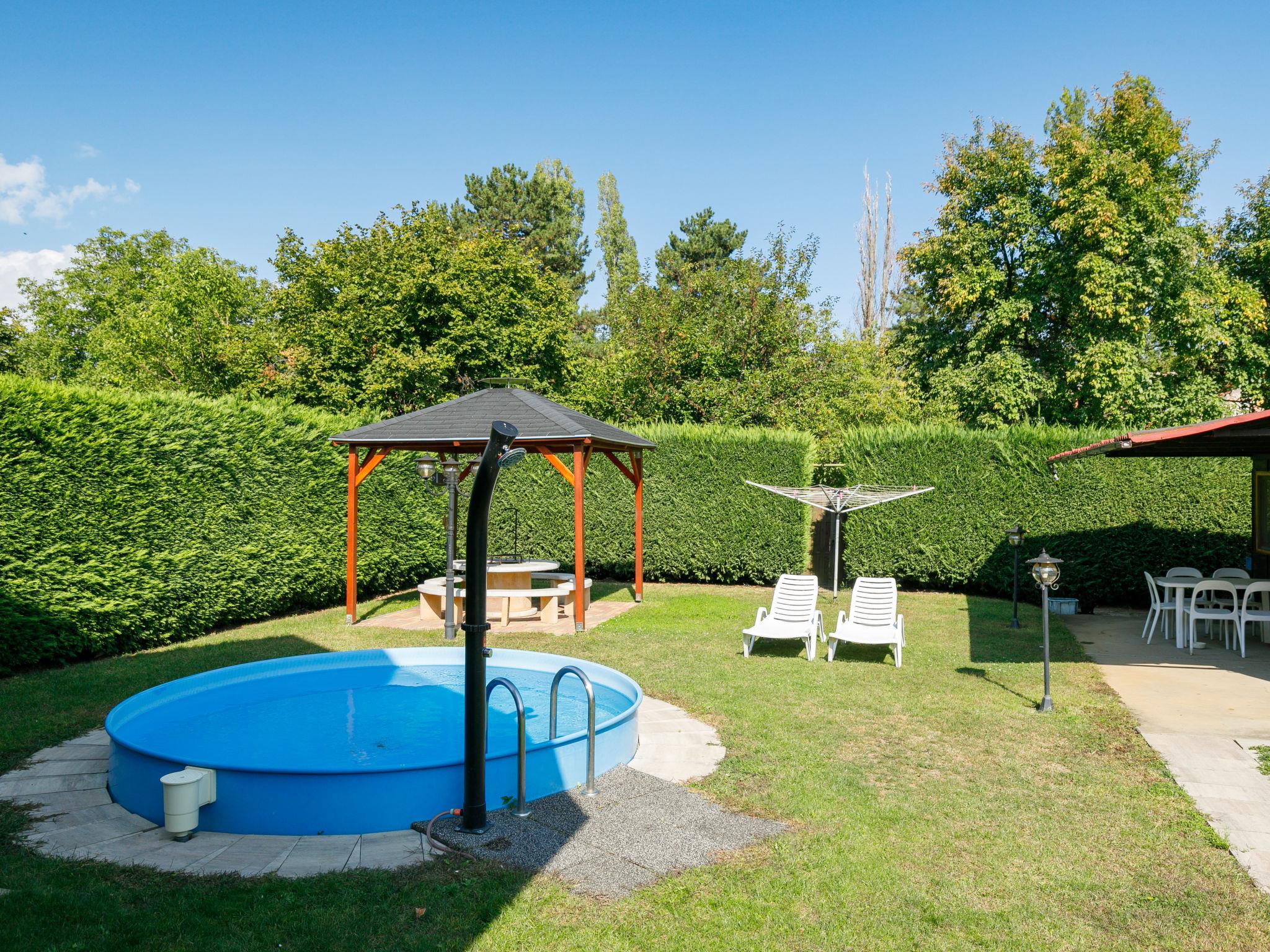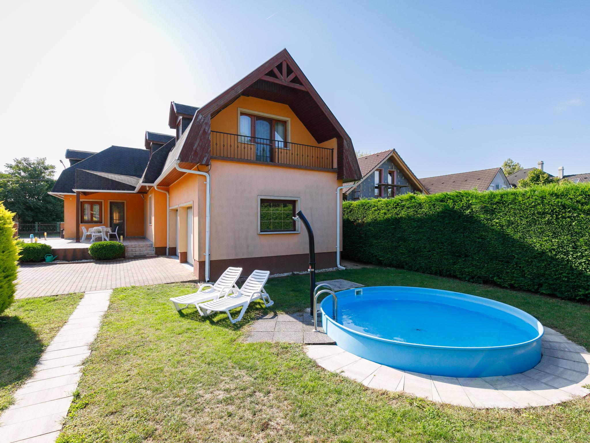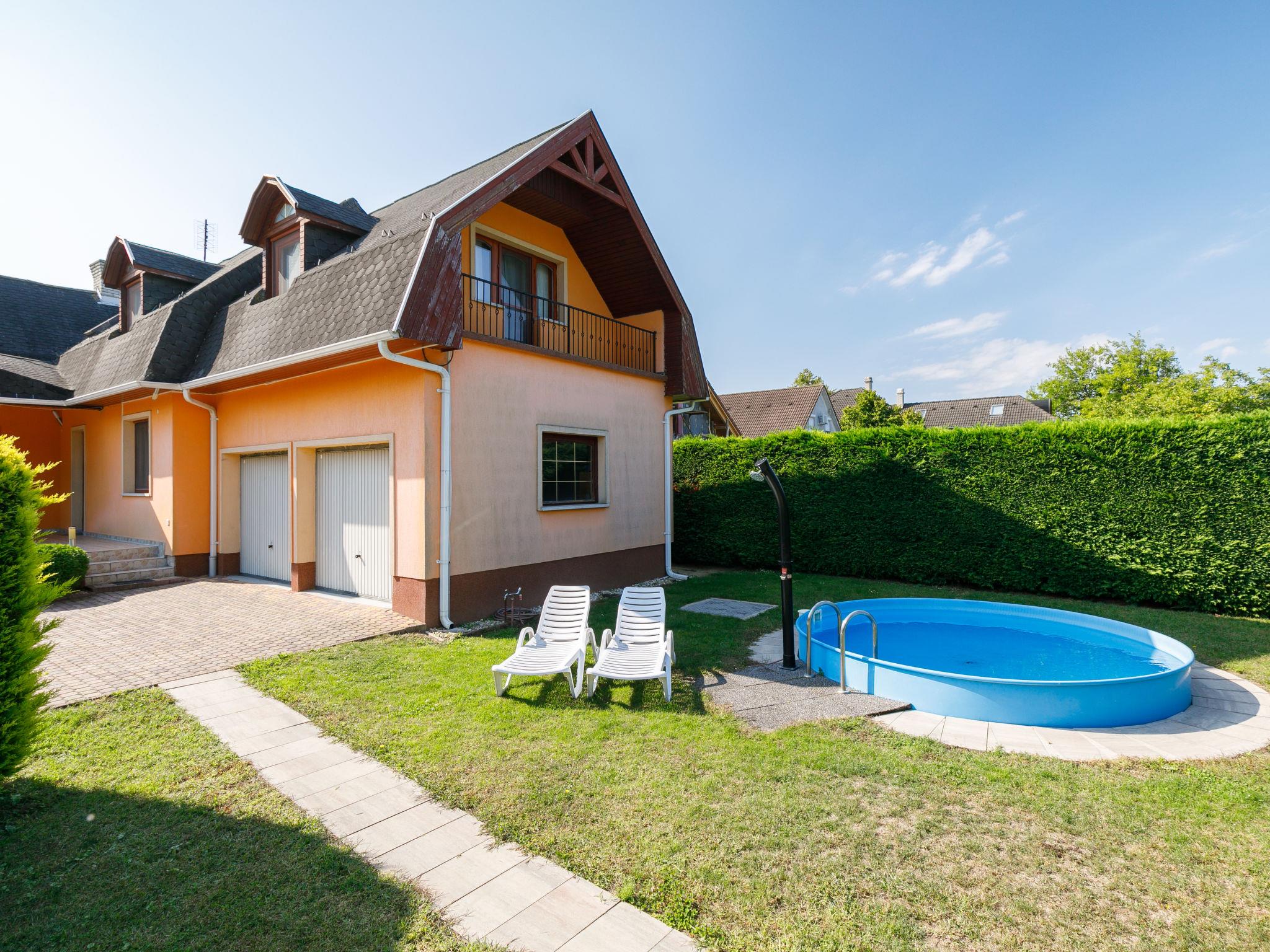 Balatonszárszó 20 km from Siófok: Single-family house "Narcisse". 750 m from the centre of Balatonszarszo, 25 km from the centre of Siofok, 62 km from the centre of Keszthely, in a sunny position in the residential district, 300 m from the lake, 650 m from the beach. Private: property 800 m2 (fenced) with lawn and trees, swimming pool round (3,60 m diameter, depth 90 cm, seasonal availability: 15.May. - 15.Sep.). Fireplace. In the house: WiFi, table tennis, billiard table, table football. Parking (for 2 cars) on the premises, single garage. Shop 750 m, supermarket 12 km, restaurant 2 km, bicycle rental 1.2 km, grass beach 300 m, thermal baths "Igal" 43 km. Tennis 1.6 km, riding stable 16 km, cycle lane 650 m, children's playground 1 km. Nearby attractions: Siófok Giant Wheels 19 km, Aquapark Siófok 21 km, Adventure Park Zamárdi 11 km, Bella Zoo Siófok 23 km, Hévíz Thermal Bath 62 km, Ferry Szántód 7 km.