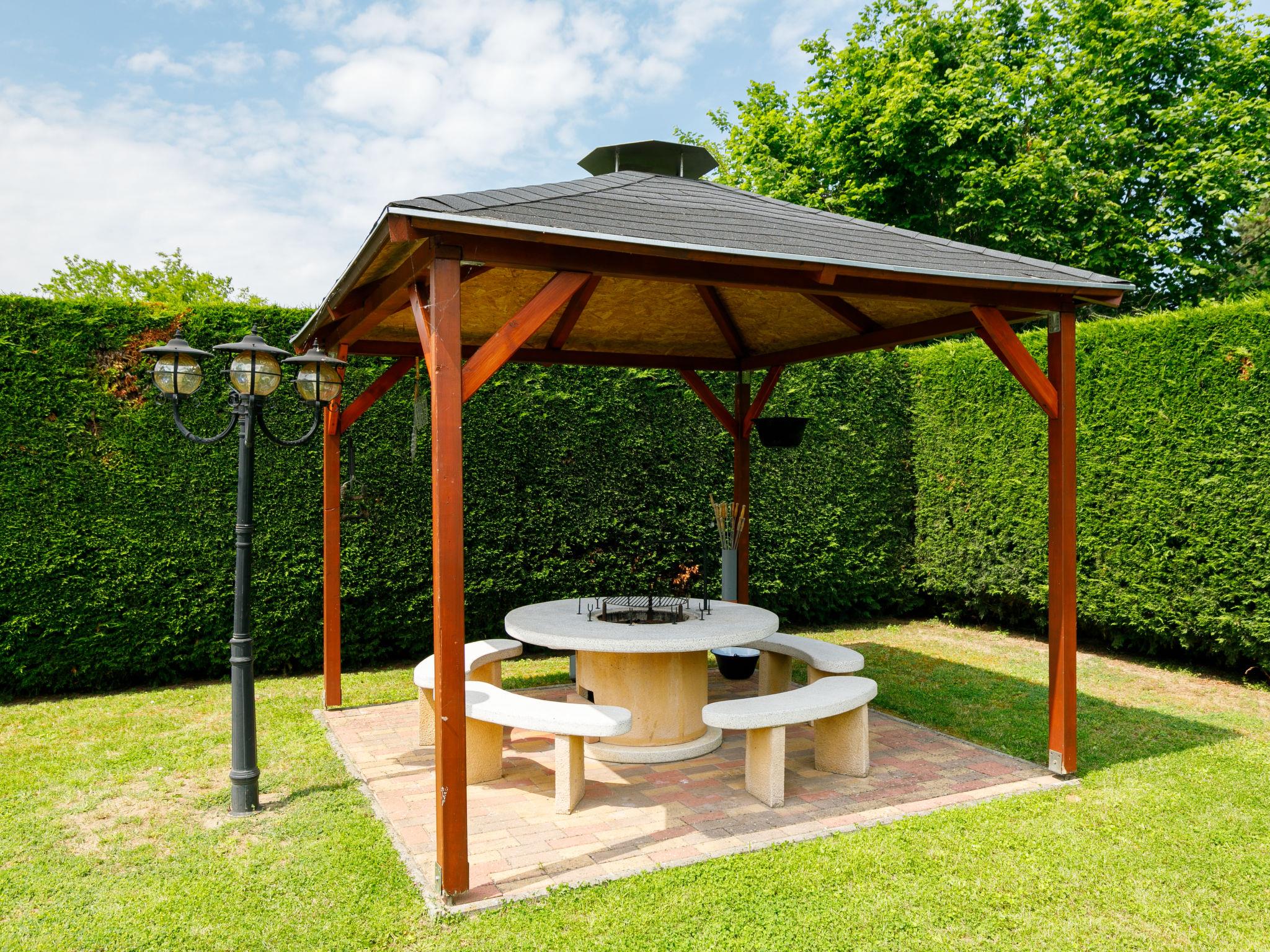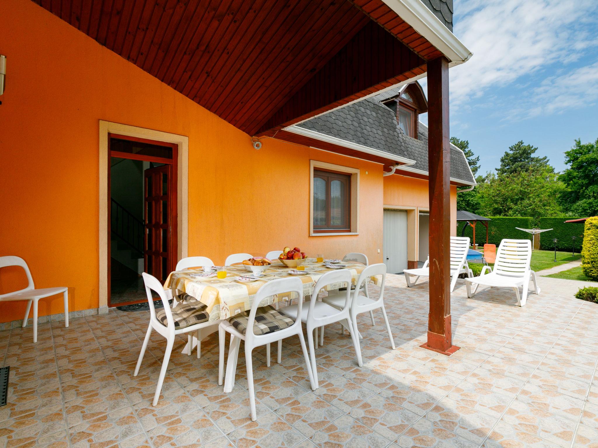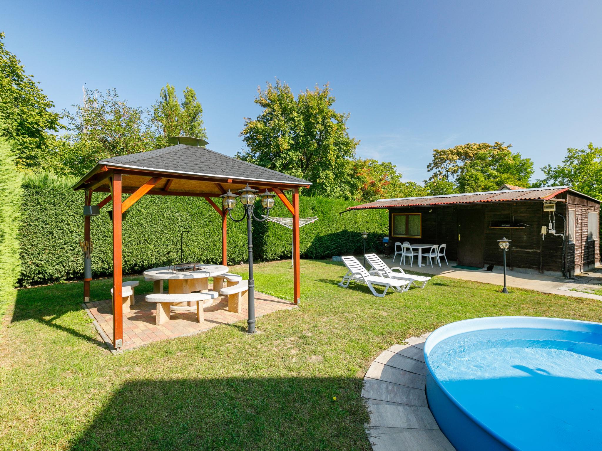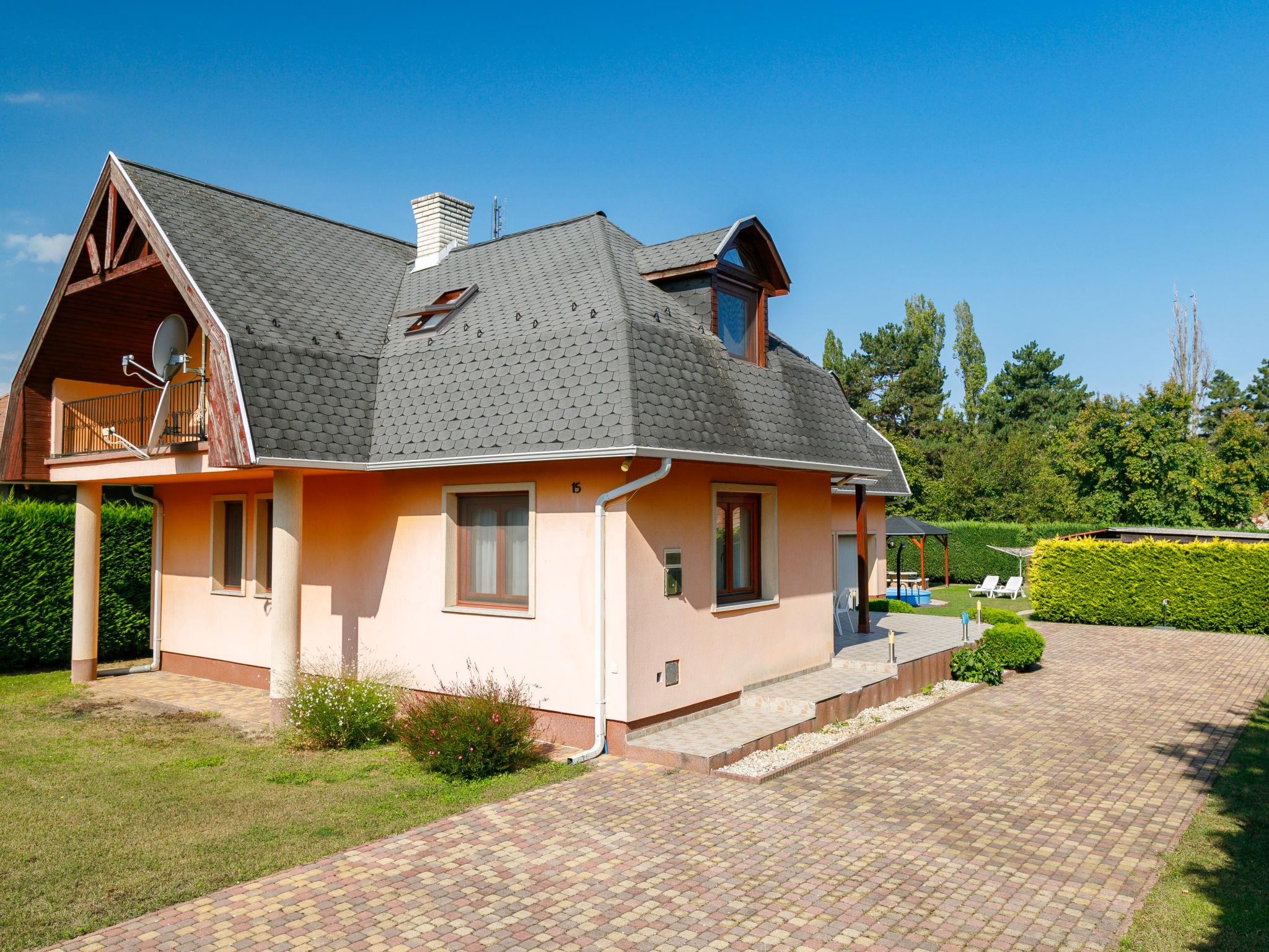 Balatonszárszó 20 km from Siófok: Single-family house "Narcisse". 750 m from the centre of Balatonszarszo, 25 km from the centre of Siofok, 62 km from the centre of Keszthely, in a sunny position in the residential district, 300 m from the lake, 650 m from the beach. Private: property 800 m2 (fenced) with lawn and trees, swimming pool round (3,60 m diameter, depth 90 cm, seasonal availability: 15.May. - 15.Sep.). Fireplace. In the house: WiFi, table tennis, billiard table, table football. Parking (for 2 cars) on the premises, single garage. Shop 750 m, supermarket 12 km, restaurant 2 km, bicycle rental 1.2 km, grass beach 300 m, thermal baths "Igal" 43 km. Tennis 1.6 km, riding stable 16 km, cycle lane 650 m, children's playground 1 km. Nearby attractions: Siófok Giant Wheels 19 km, Aquapark Siófok 21 km, Adventure Park Zamárdi 11 km, Bella Zoo Siófok 23 km, Hévíz Thermal Bath 62 km, Ferry Szántód 7 km.