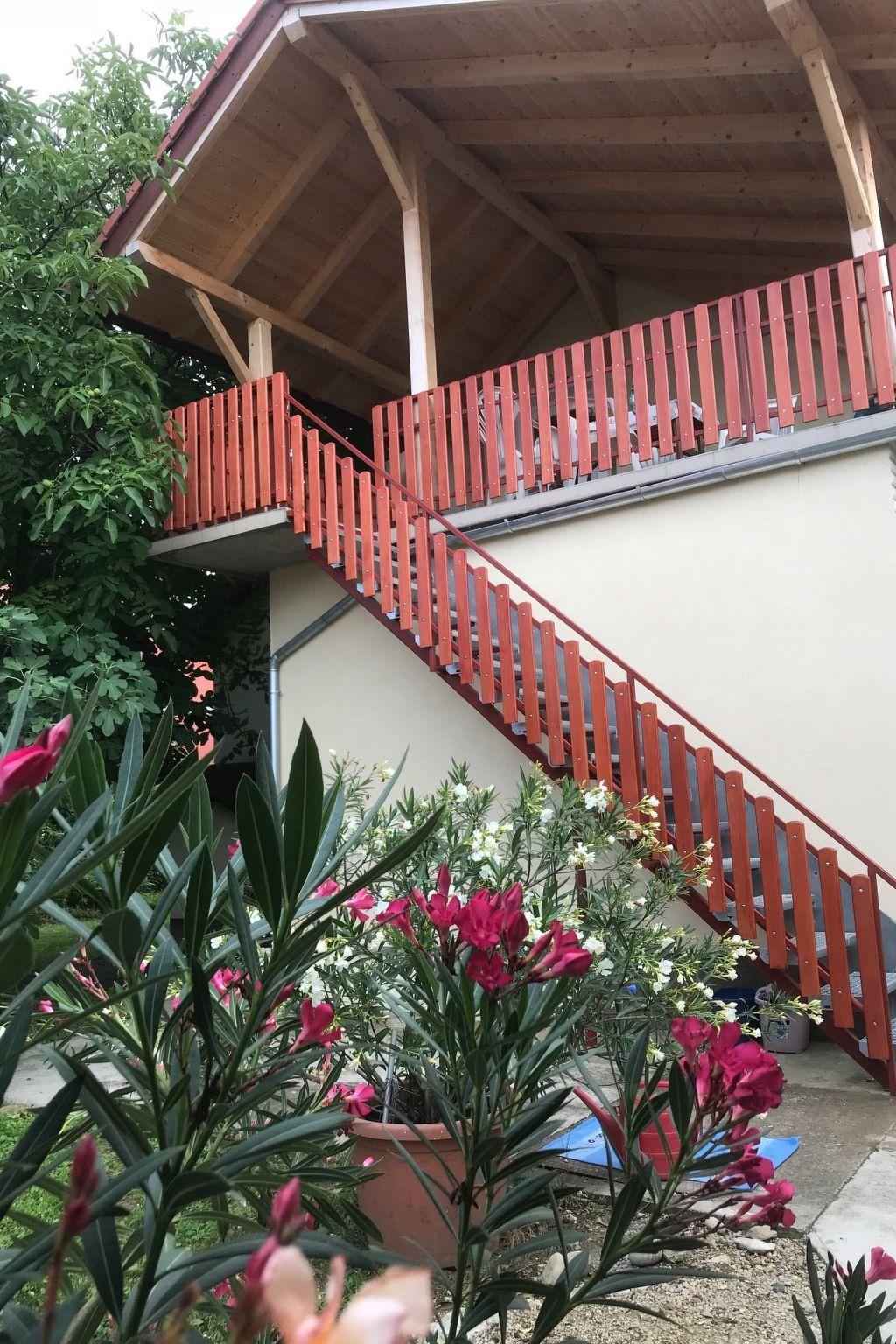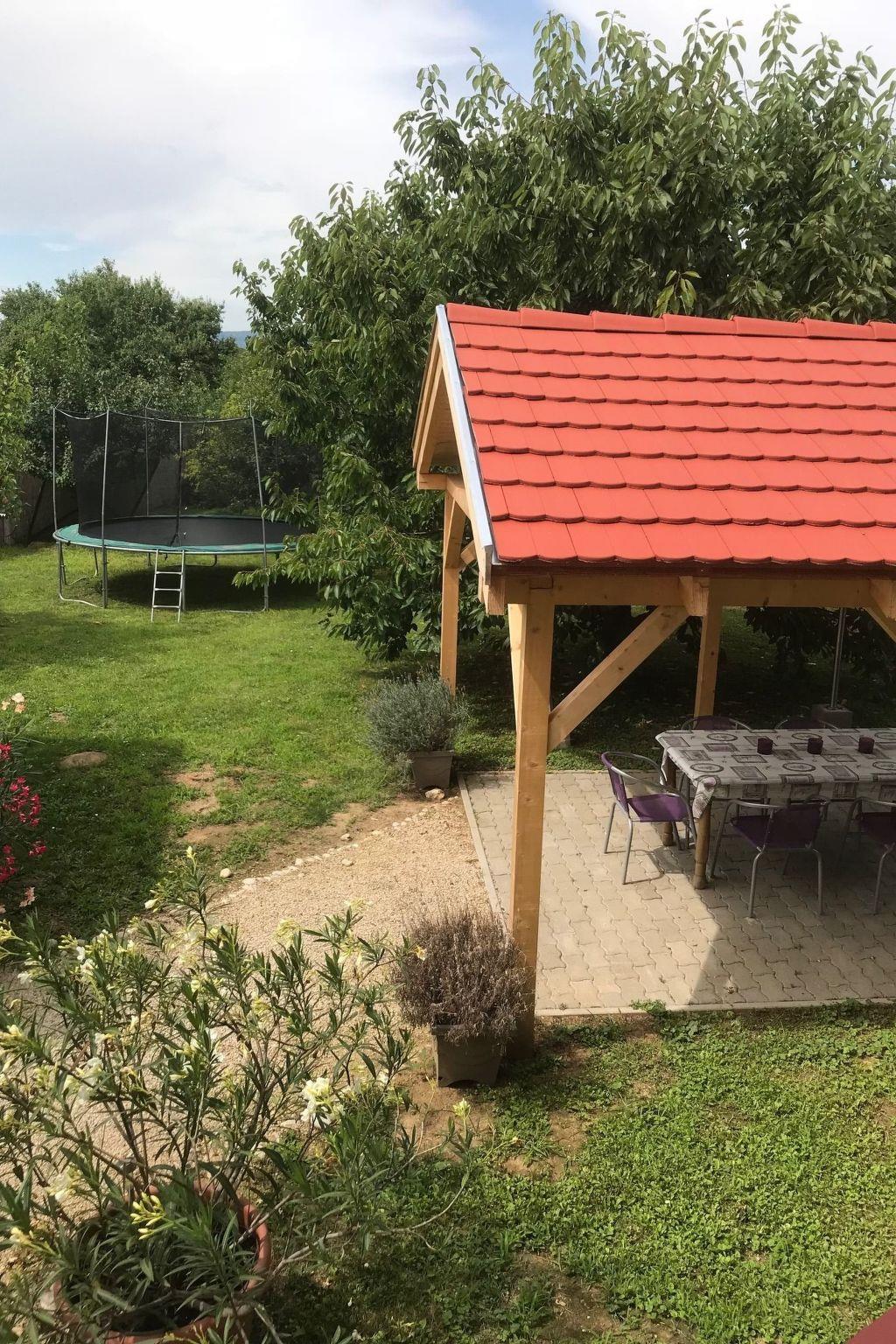 The nearest shops are approx. 200 metres away, the nearest restaurant approx. 400 metres. The free sandy beach with free parking directly in front of the entrance is approx. 900 metres from the holiday flat. The southern shore of Lake Balaton is equally suitable for families and young people to spend a relaxing and exciting holiday. Even active holidays on Lake Balaton have a long tradition, as activities have been a top priority here for years: Tennis, horse riding, sailing and water sports, fishing, cycling and hiking are just some of the activities on offer on the southern shore. The beaches are particularly suitable for families with small children. The lake here is sandy and shallow, so even the youngest children can have fun in the water without any worries. The sandy beach in Balatonszarszo is not only great for swimming, but also for relaxing. There are plenty of sunbathing areas and play facilities for young and old on the well-kept lawn. After a long day of swimming, various activities await you: a round trip on the bell railway, concerts and events at the Süsü children's theatre, supervised handicraft lessons, street parties or a lovely evening at a traditional family riding stables with a carriage ride and delicious Hungarian food - grandma still bakes the strudel for you here. The fully developed infrastructure of the settlement, the 250 commercial and catering businesses offer sophisticated services for visitors. Balatonszarszó offers fun for the whole family.
